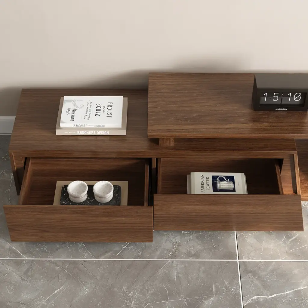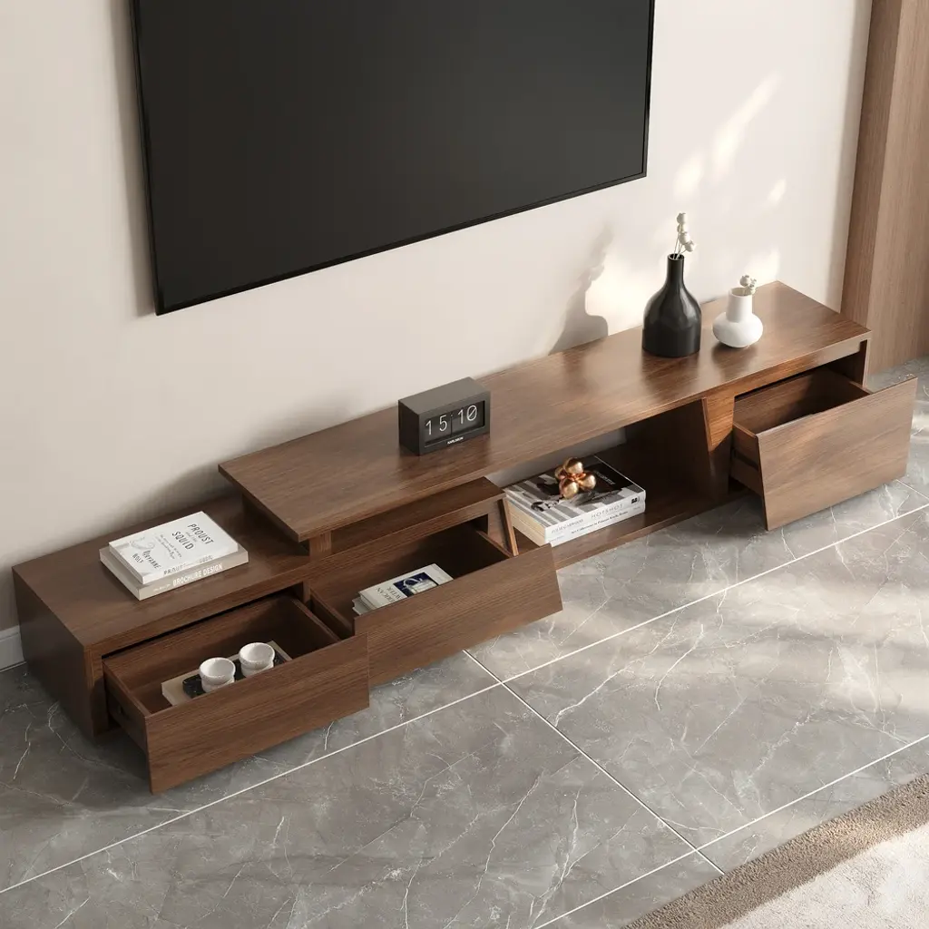 Fero Walnut Reversible Extendable Tv Stand With 3 Drawers(71"-120")
