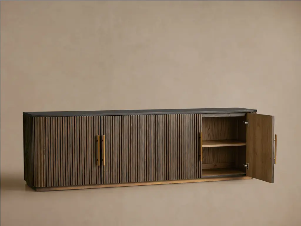 Our Finnley Collection showcases a stunning mixed-material design, inviting elevated style into any space. Hand-finished oak wood is luxuriously accented by reeded oak detailing complemented by stone tops. The result is an eclectic-yet-chic accent piece that adds a touch of nature’s alchemy to any room.
