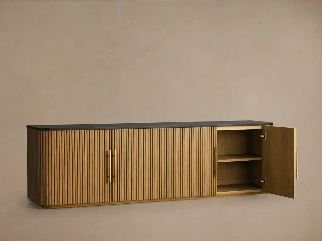 Our Finnley Collection showcases a stunning mixed-material design, inviting elevated style into any space. Hand-finished oak wood is luxuriously accented by reeded oak detailing complemented by stone tops. The result is an eclectic-yet-chic accent piece that adds a touch of nature’s alchemy to any room.