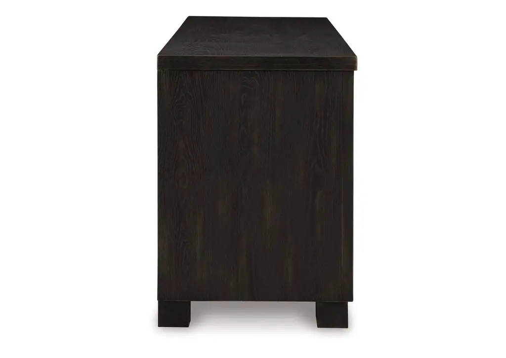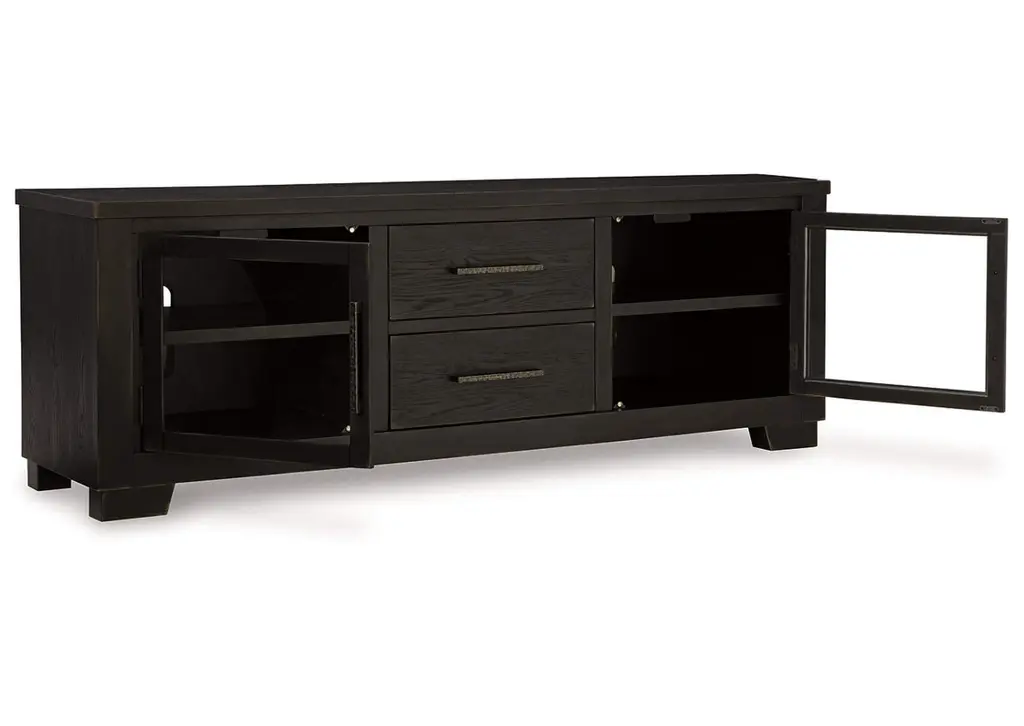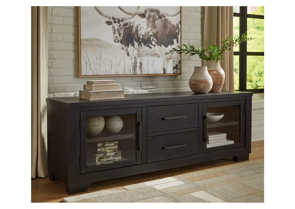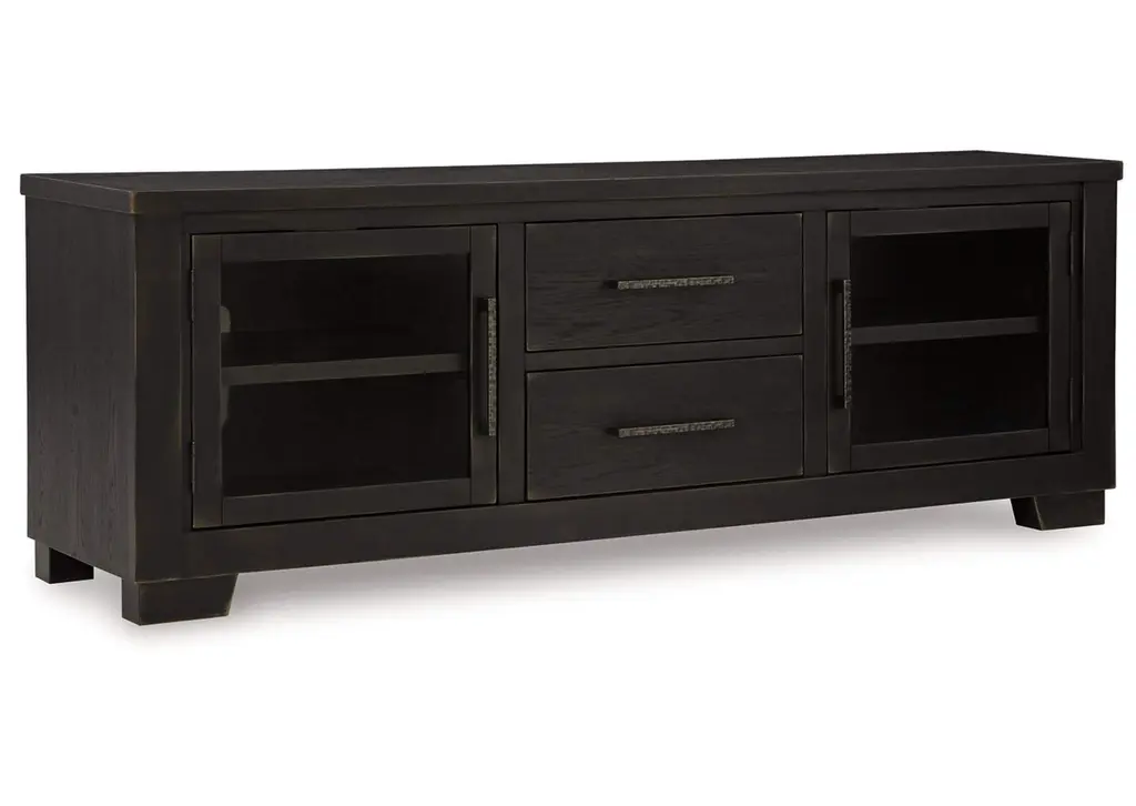 The Galliden TV stand brings a rustic vibe to urban contemporary design. It’s a modern approach to natural beauty, with the worn black finish giving your living room a gently aged charm. Console and media storage is made easy with cabinets and drawers. And the stunning simplicity of its color palette allows you to seamlessly coordinate this TV stand with your existing decor. Weight 207.000 lbs. (93.15kgs.)
