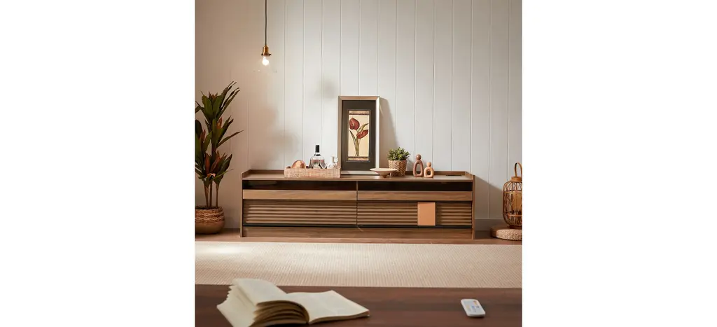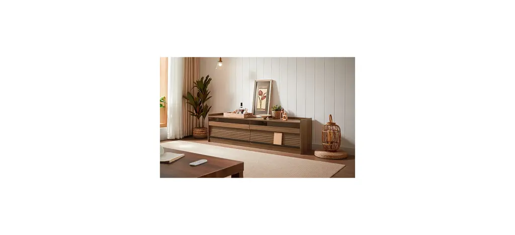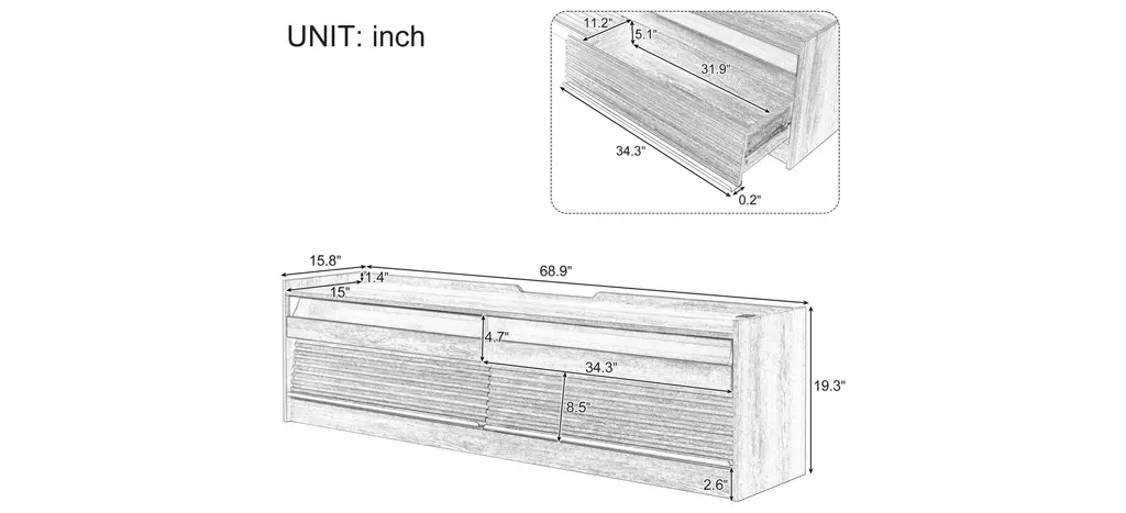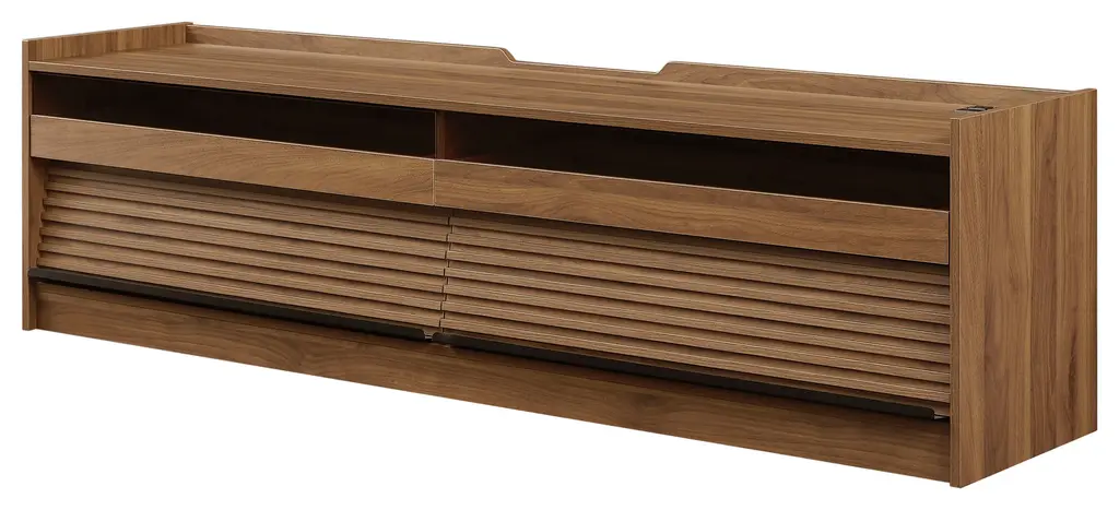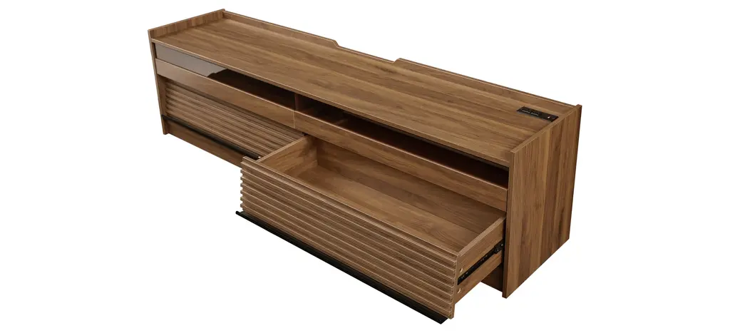 [Spacious Storage] Featuring four large drawers with tempered glass fronts and sleek horizontal stripes, this TV stand offers ample storage while adding a touch of modern sophistication.[Built-in Charging Ports] Equipped with integrated Type-C, USB ports, and standard outlets, keeping your devices powered while enjoying your entertainment setup.[Ambient LED Lighting] Enhance your viewing experience with built-in LED lighting that creates a cozy and cinematic atmosphere in your living space.[Functional Magazine & Book Storage] Designed with a top surface on the drawer fronts, offering a stylish and convenient space for magazines and books within arm's reach.[Sleek & Versatile Appeal] With its smooth lines and minimalist structure, this TV stand seamlessly blends with contemporary, modern, or traditional decor styles.Includes: One (1) TV StandMaterial: Tempered Glass + MDF + MetalColor: Multiple Color Options AvailableAssembly: RequiredDimensions: 68.90 inches W x 15.80 inches D x 19.30 inches H