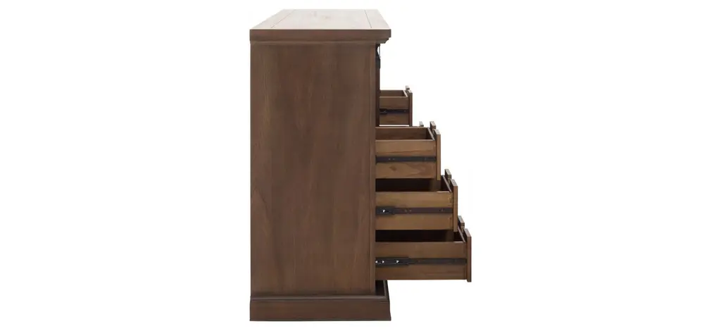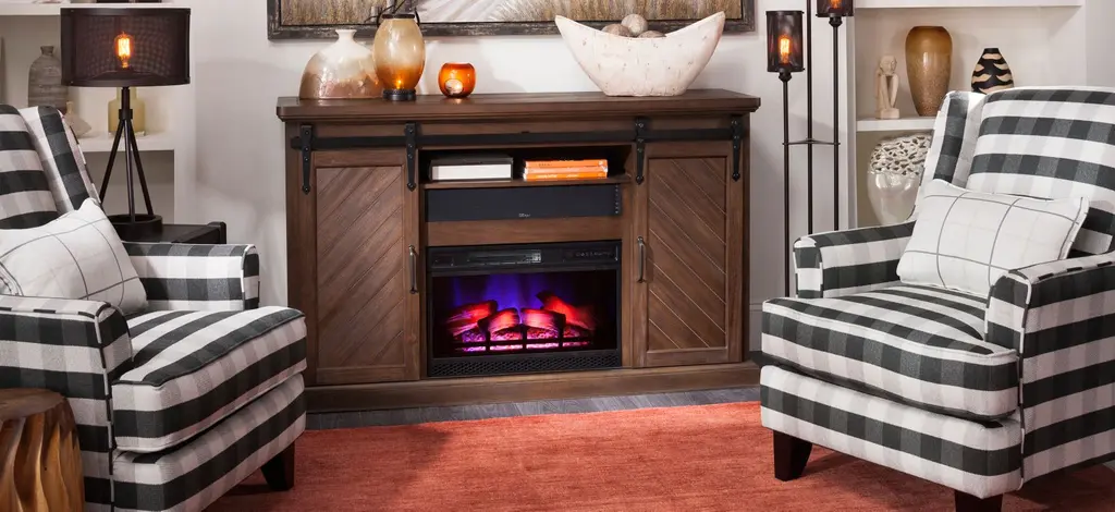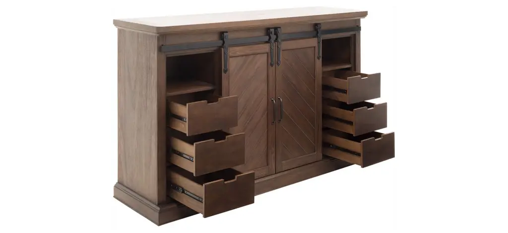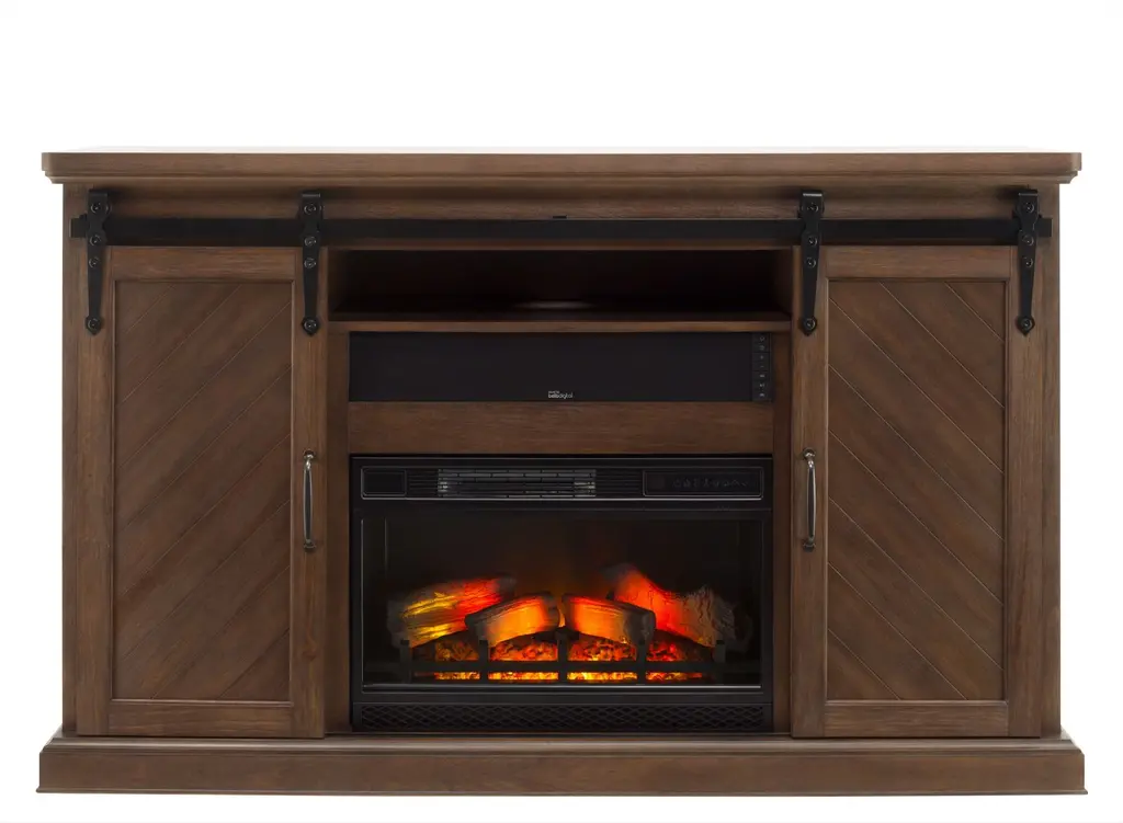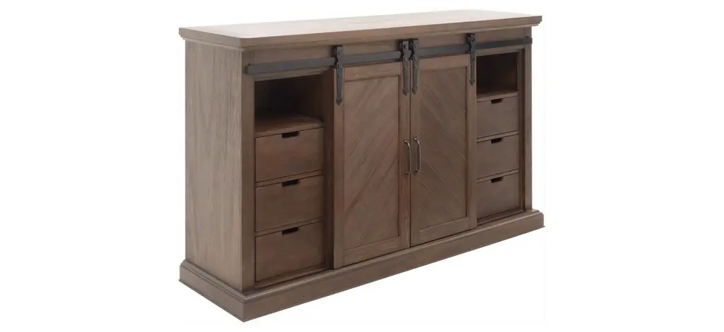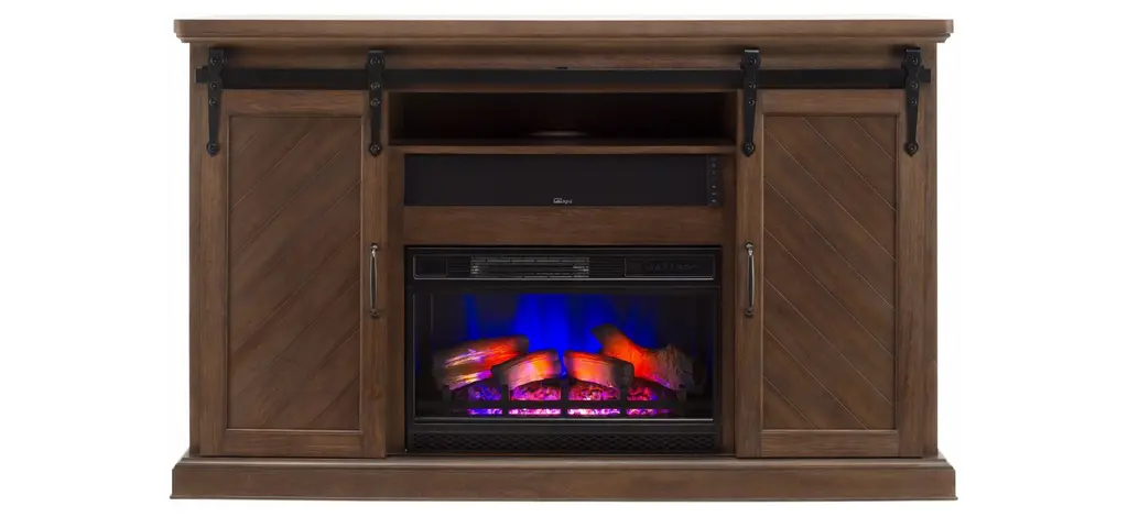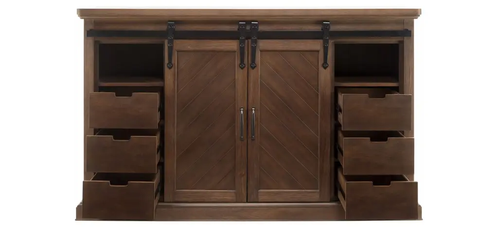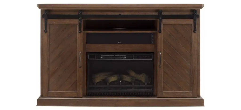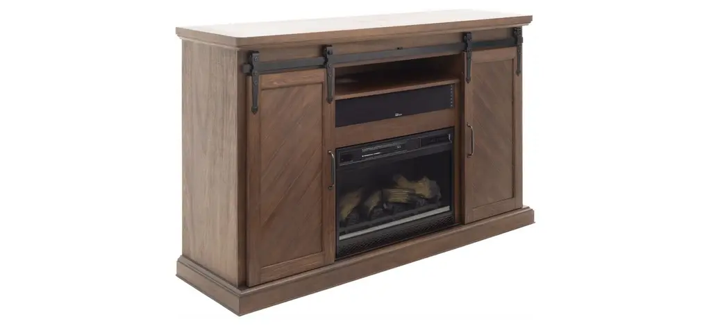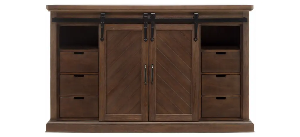 Let the Georgia 64" TV console with firebox set the mood in your living room space. Sliding barn style doors open to reveal a fireplace and speaker; both great for a relaxing night in or entertaining guests. Georgia also has plenty of storage, with three drawers and an open shelf on each side, so all of your favorite movies, remotes and other items will be stowed away out of sight.