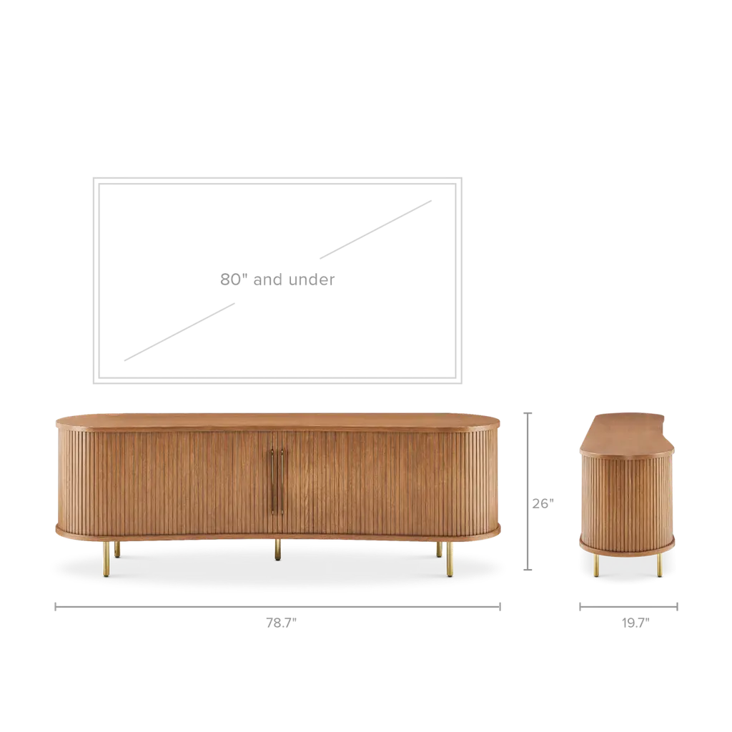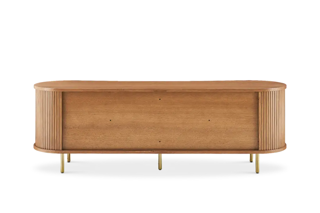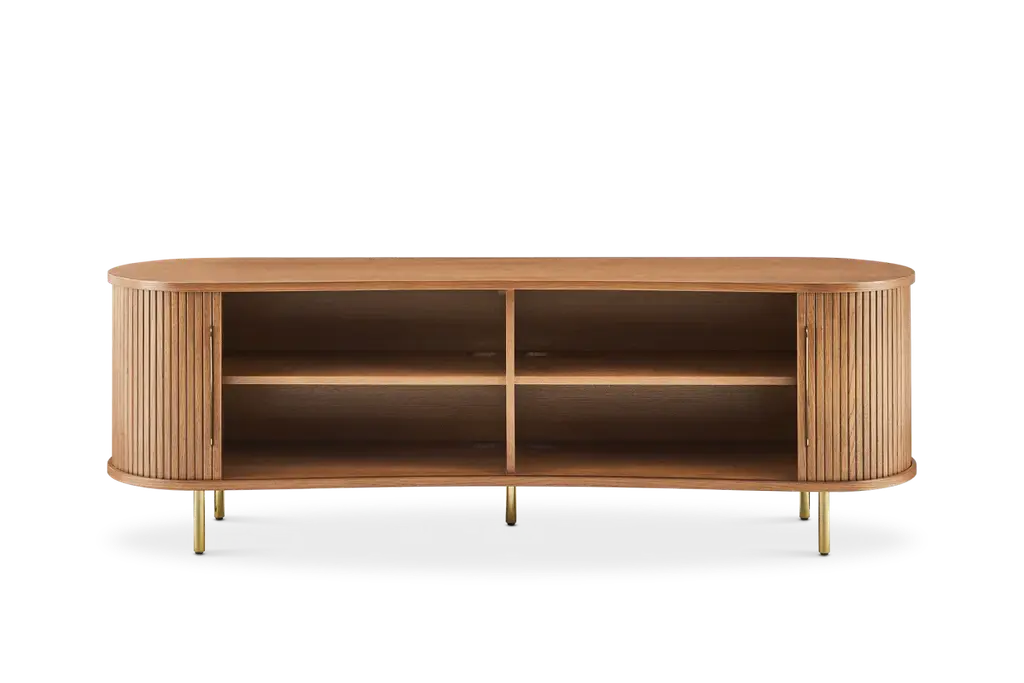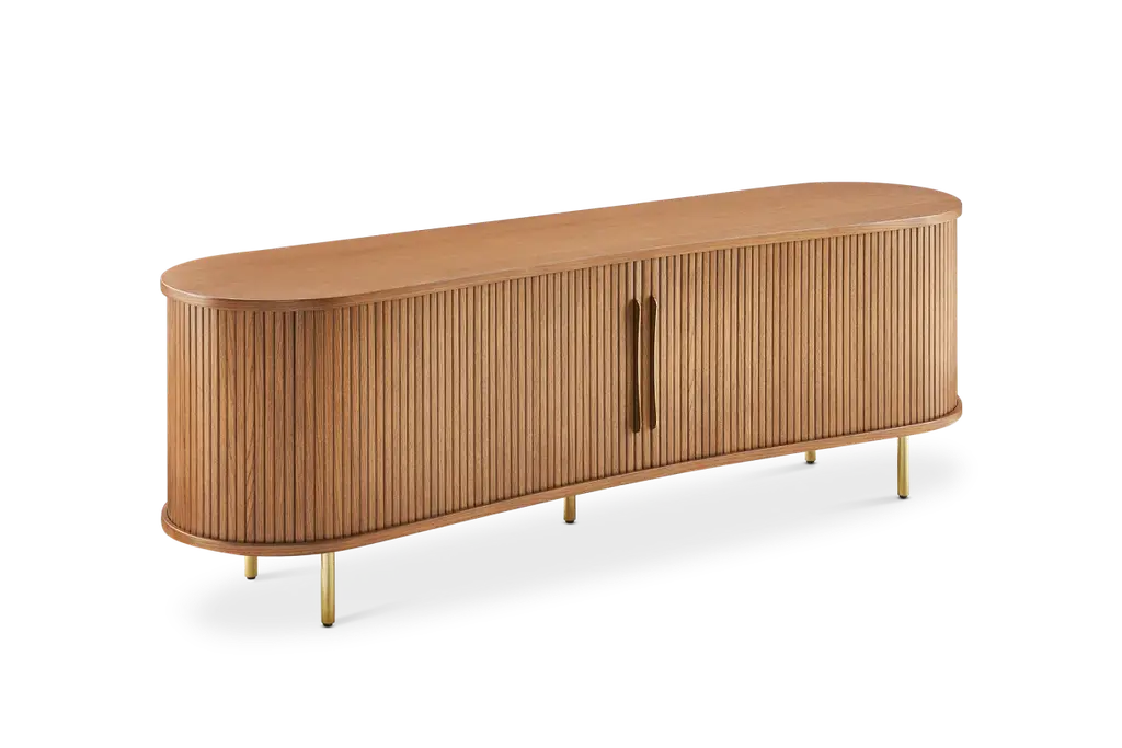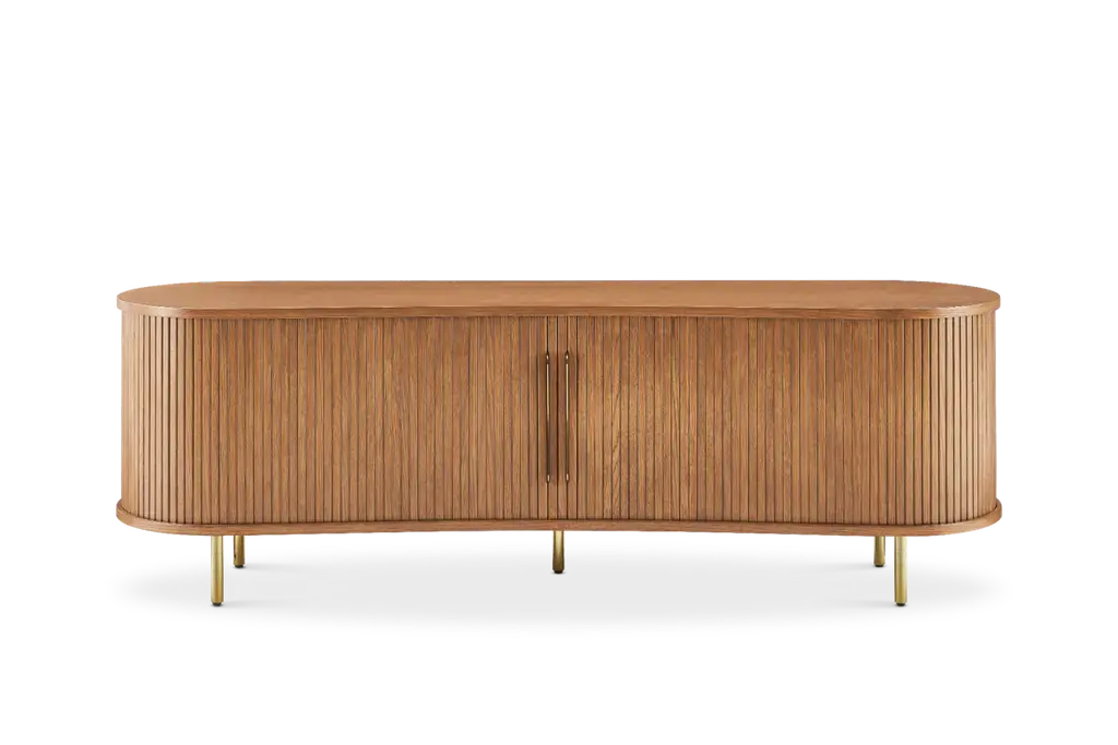 A TV console as captivating as your shows. Harper's tamboured doors hide ample storage for remotes and everyday extras, with a design that stands out while feeling right at home.