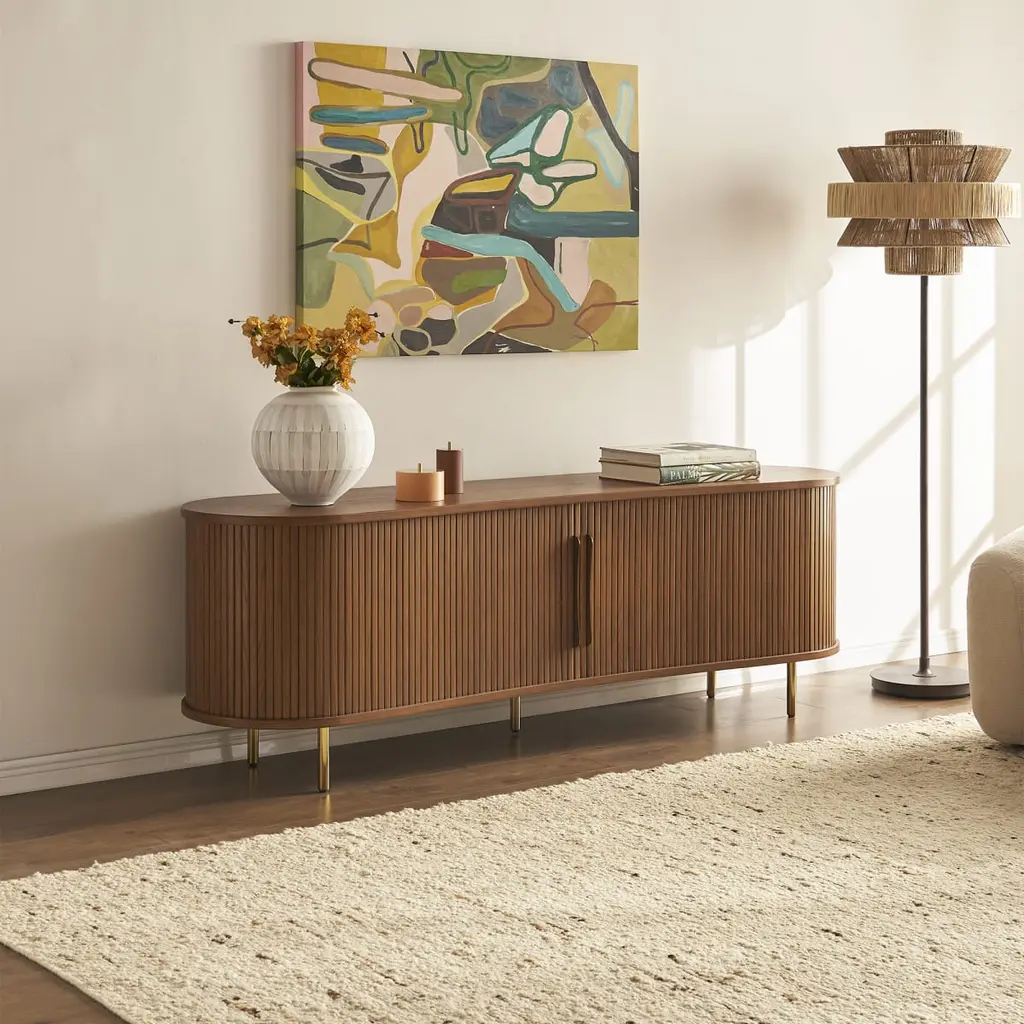 A mid-century stunner, Harper's oval silhouette and tamboured doors make this collection a must-have for design addicts.