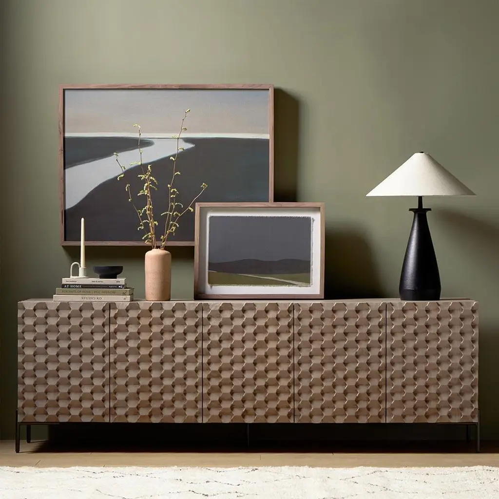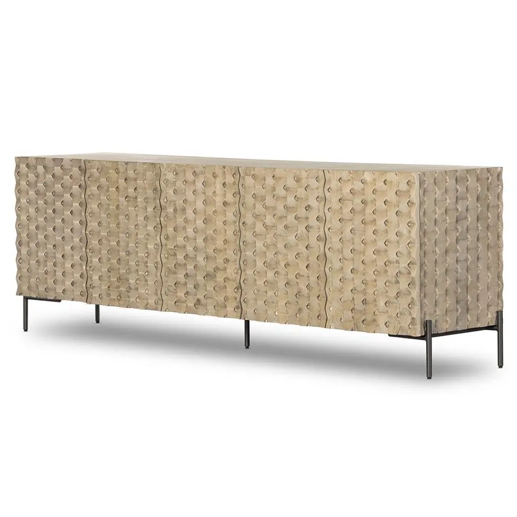 Harrison Global Bazaar Grey Mango Wood 5 Door Iron Legs Media Console - 82"w - Large