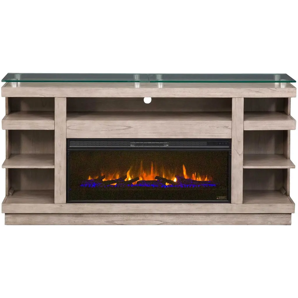 Maximum coziness is at the push of a button with the Henty 74" TV console with fireplace. Three adjustable shelves offer handy storage while the fireplace creates a comfortable ambiance you deserve. The included remote adjusts power, flame color and temperature, and the timer. So kick back, heat up, and enjoy yourself!