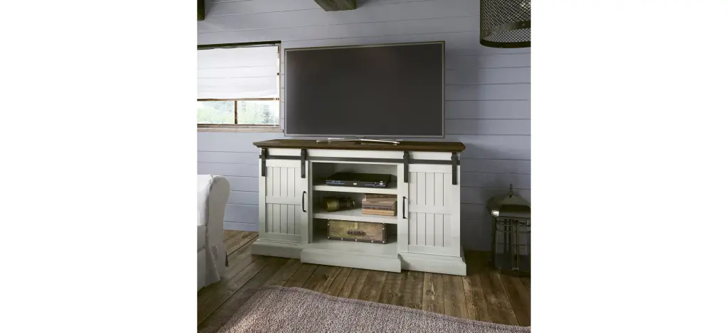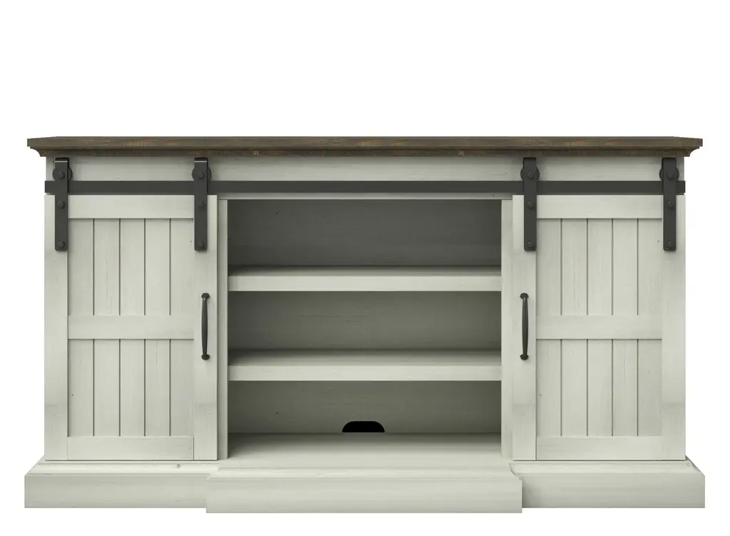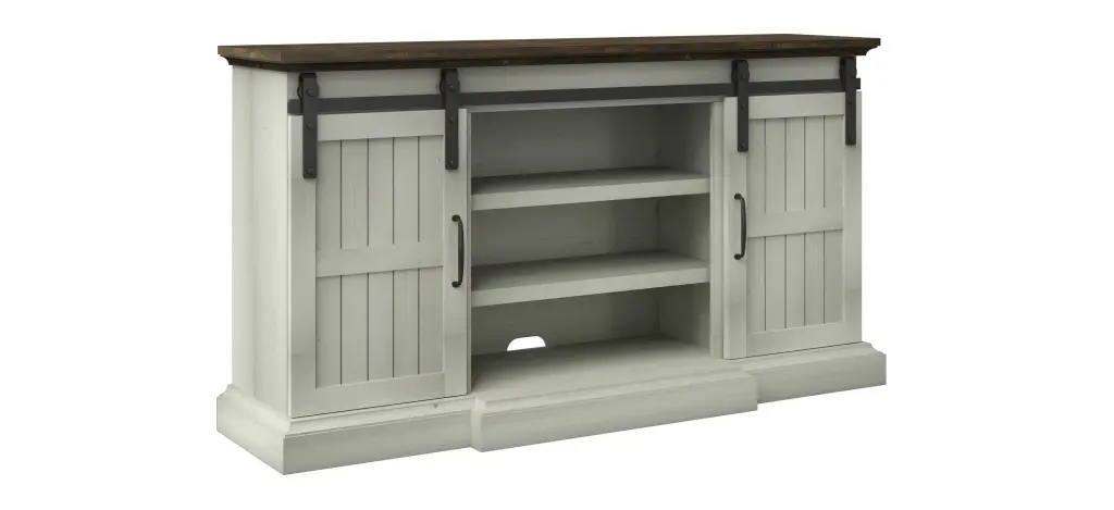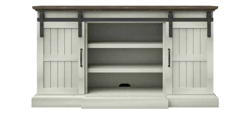 This Heywood TV stand is just as functional for supporting your TV as it is for giving your home that stylish, rustic cottage look. There's more than enough room to store gaming consoles, a DVR, other AV components, and even a few of your favorite decorative accents. But the true sliding barn doors that glide on metal railing are what your friends will really be noticing during weekend dinner parties. Complete your living room with the matching end table to hold lighting and drinks next to the couch or the matching console table for a sofa back that is beautiful and functional for entertaining.