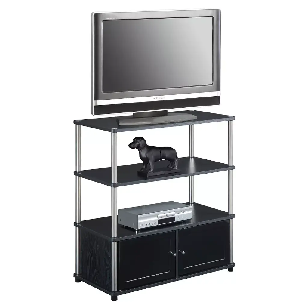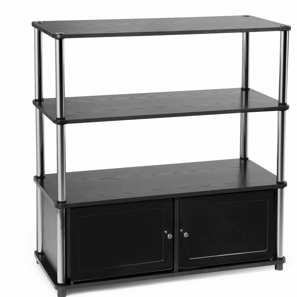 The Designs2Go Highboy TV Stand with Storage Cabinets and Shelves by Breighton Home is what your entertainment space is missing. Available in multiple finishes, this large TV stand features 3 tiers of open spacious shelving. Whether you are a gaming or a movie enthusiast, you will have plenty of space for all your media needs with this highboy TV center. Also featuring two cabinet doors that reveal plenty of storage space for any unsightly entertainment or media accessories. The sturdy stainless-steel tubes will never rust and add plenty of durability, which also makes assembly easy. This unit has been engineered from particleboard and finished with a smooth melamine for long-term use and easy maintenance. Add more to your home furnishing collection from Breighton Home, each sold separately.
