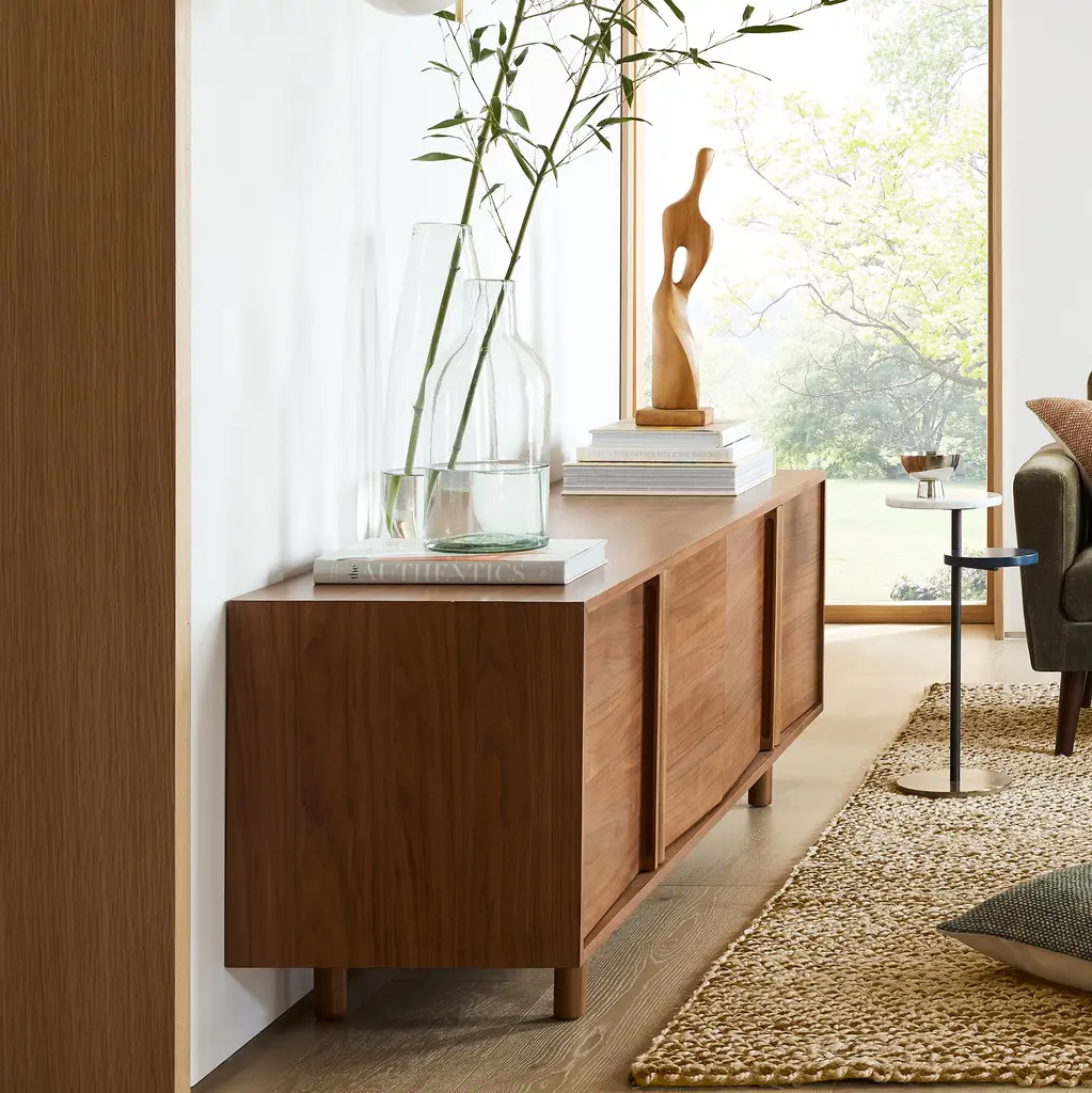 Do-anything piece that anchors the room with strong lines. Keeps media, linens & dinnerware organized and tucked away. Made from kiln-dried, sustainably sourced wood. Crafted in a Fair Trade Certified™ facility.