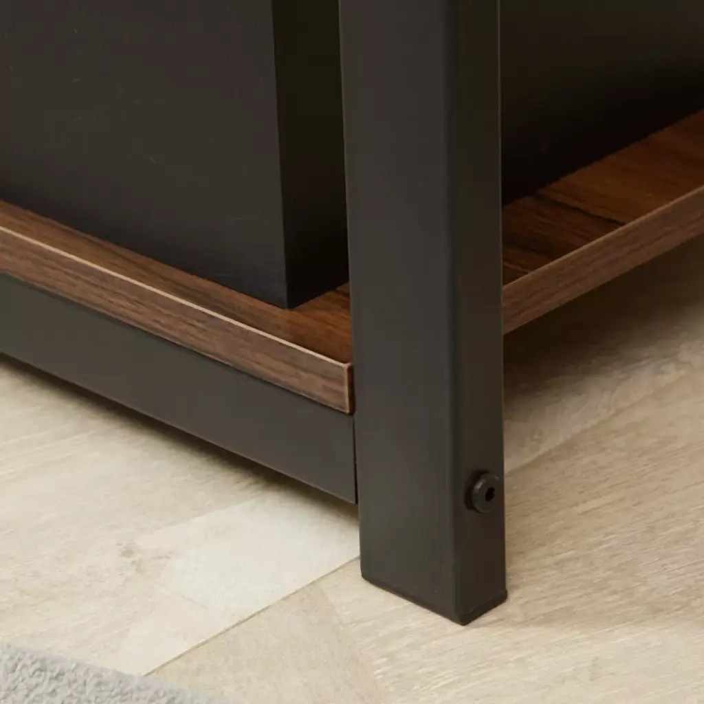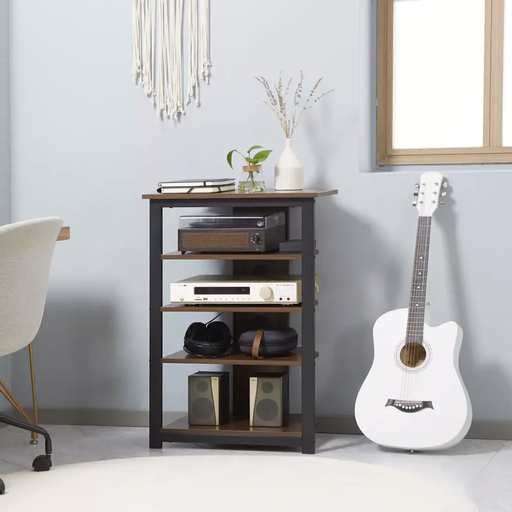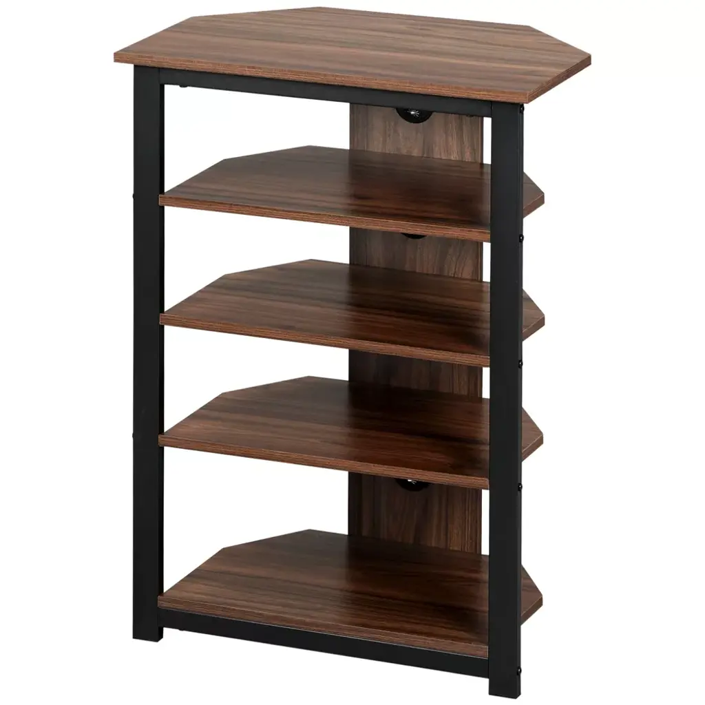 This HOMCOM TV stand with storage for days will save space in your living room. The corner shelf does more than hold your TV, it has four tiers to provide ample room for your favorite movies, a collection of video games, or books you love to read. There are four cable holes for organizing wires without the mess. The easy fit and sleek modern design will make it a perfect companion for your relaxing moments.