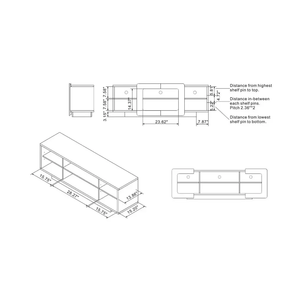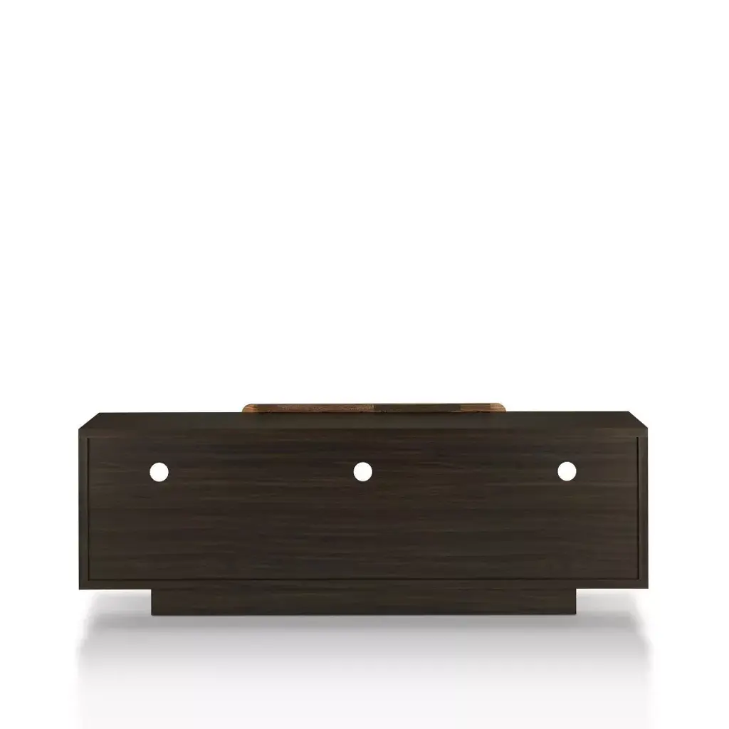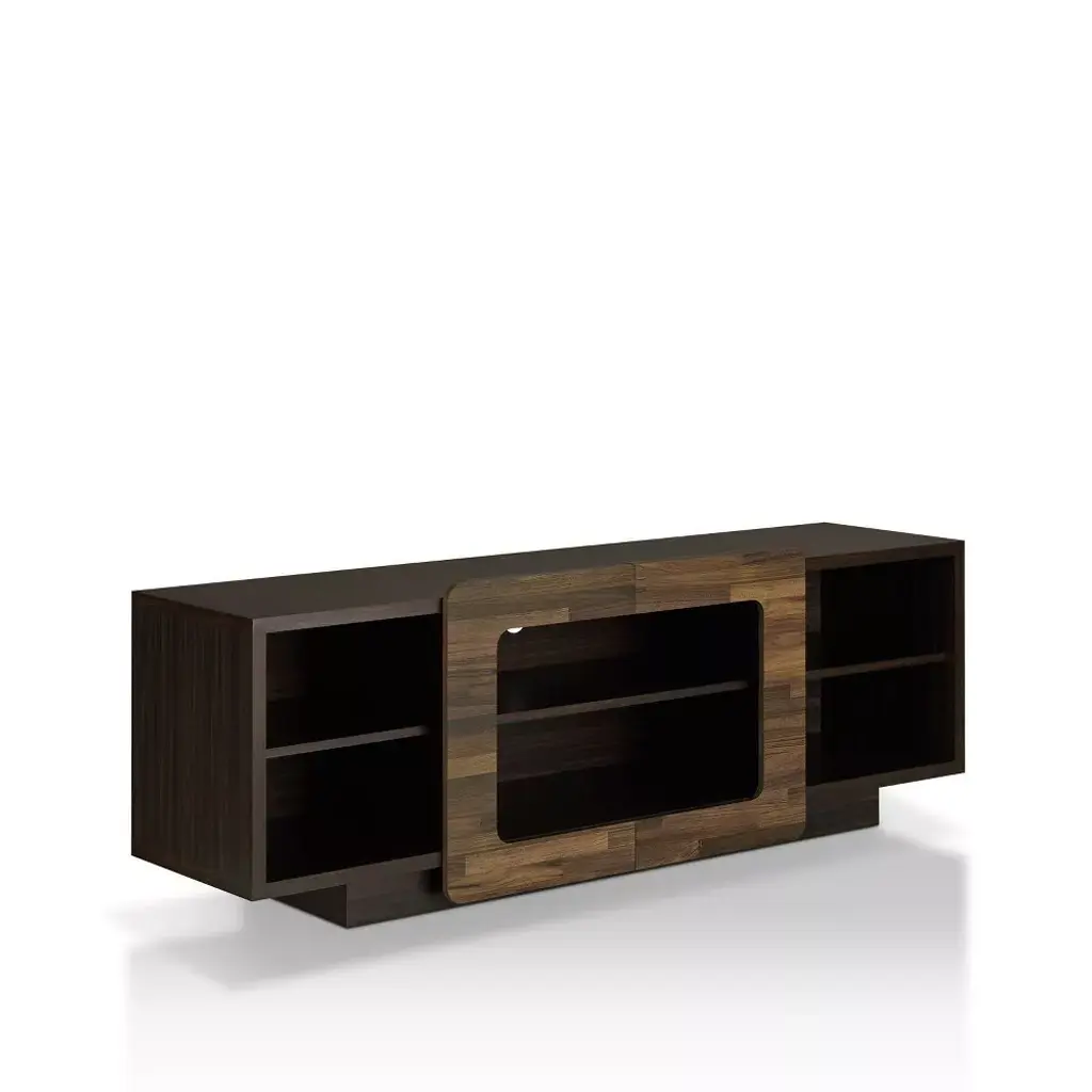 Don't limit your entertainment center to simply serving as a storage space for all your electronics. This TV stand offers accommodation for consoles and a room enhancer. Three of the six open shelves feature rear holes for wire organization. But its the unique wood trim slides that decorate a room with natural warmth. The central panels open to the edges whenever you feel you need a change in the room.