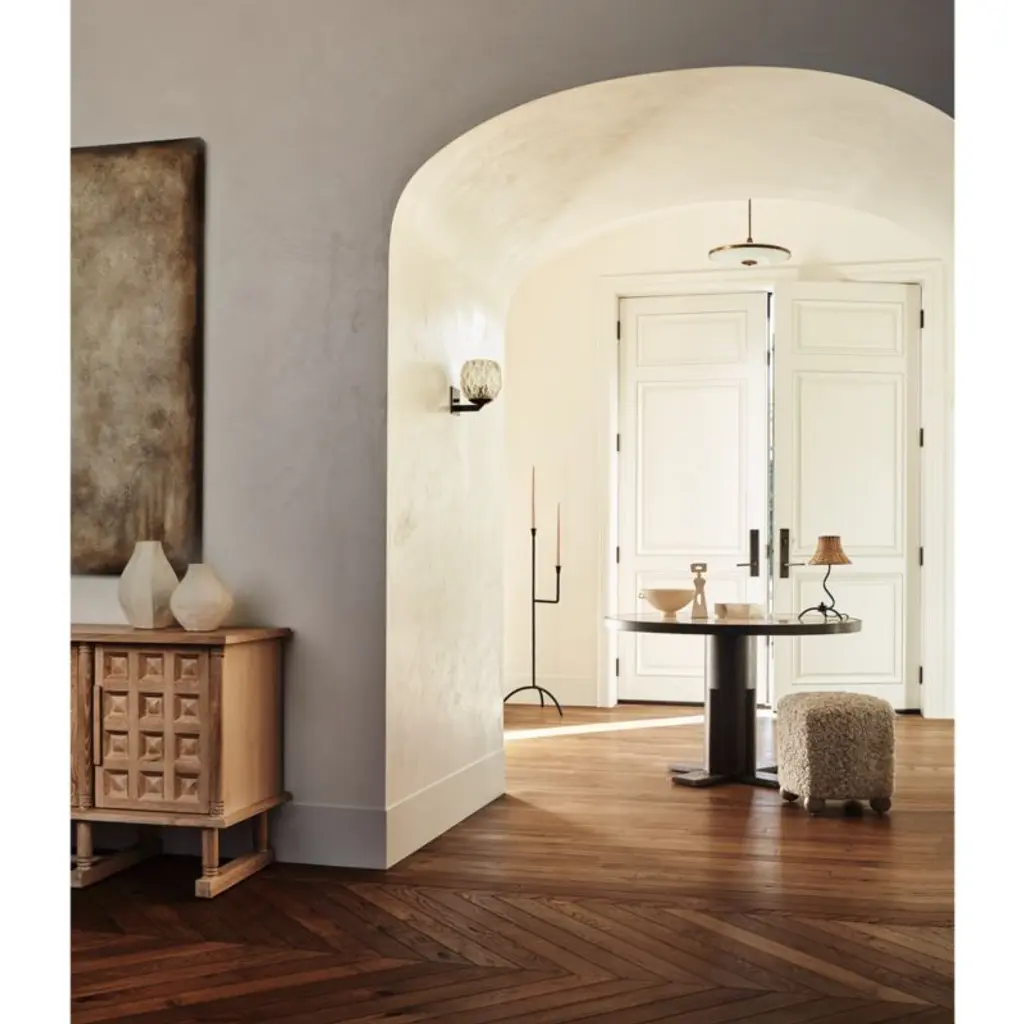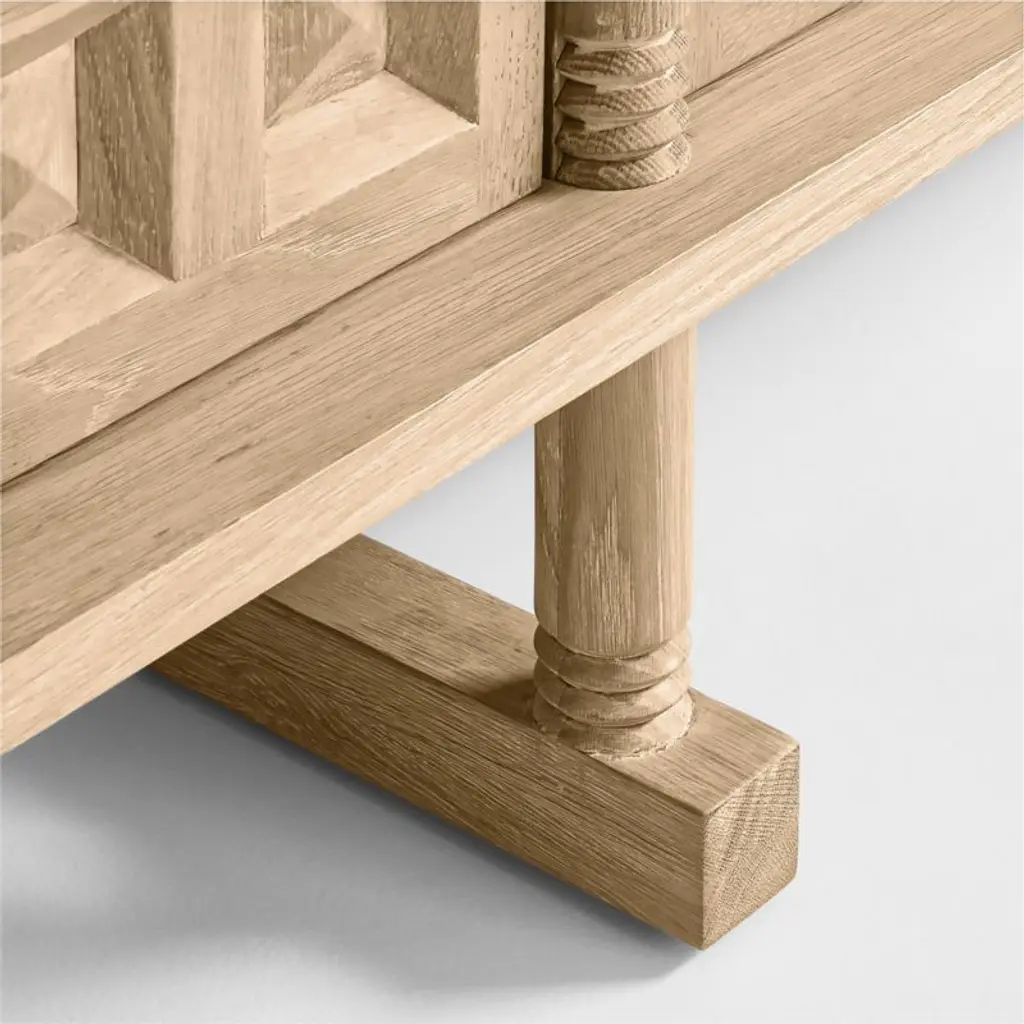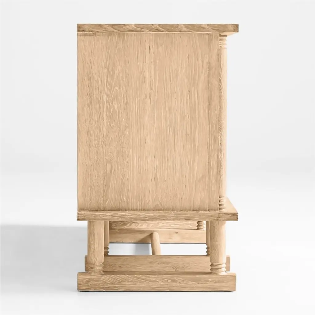 Based on a vintage piece bought at auction, our Honore media console celebrates traditional furniture in a modern way. A light ceruse finish brings the design up to date, along with downscaled proportions and refined coffer detailing on the door fronts. Subtle ridge detailing and stretcher bar supports on the base add to the console's linear look. A double-door cabinet flanked by single-door compartments open via long horizontal wood pulls to generous interiors, each with an adjustable shelf. Equipped with cord cutouts, the oak console houses media components as well as books, games and other living room essentials.We've partnered with bestselling author, interior designer and EyeSwoon founder Athena Calderone to bring you a collection of designs for meaningful, beautiful modern living. Inspired by ancient forms and European finds, Crate x Athena fine-tunes scale, materials and comfort to fit seamlessly into your home.