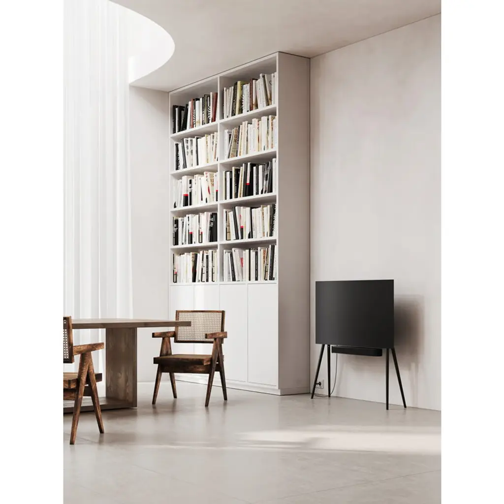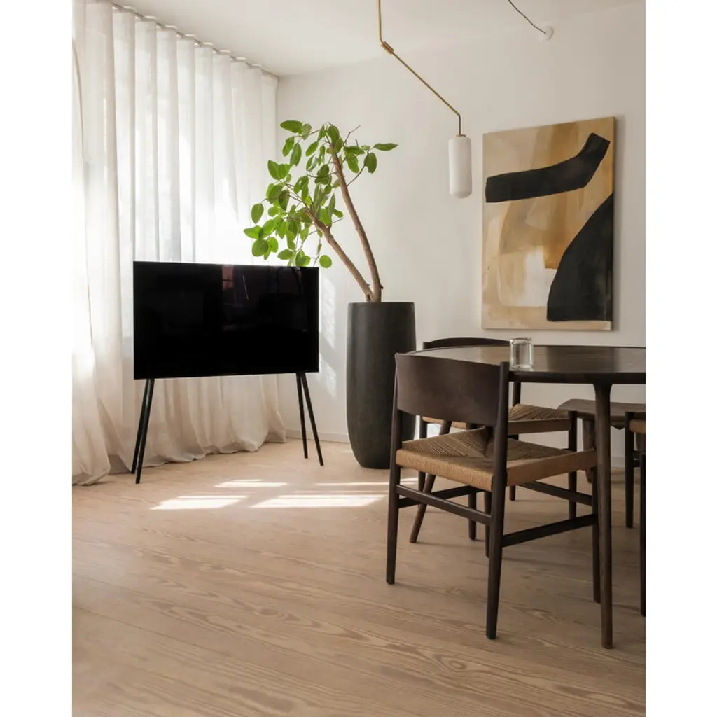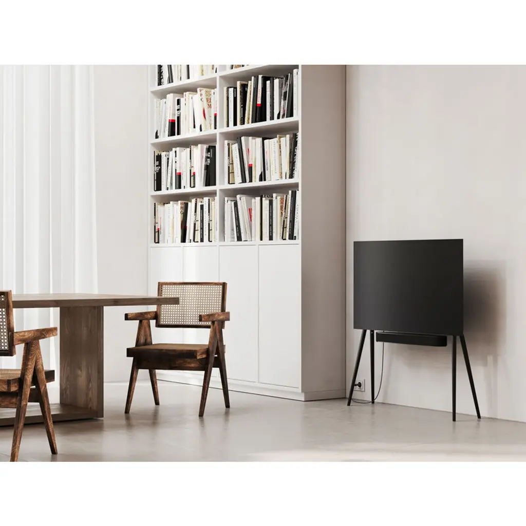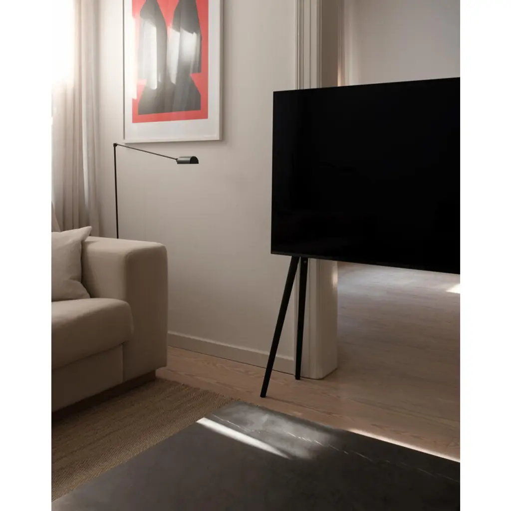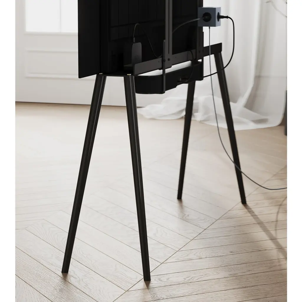JALG TV stand elevates your television on slender yet sturdy wooden legs. Designed by the Estonian duo behind JALG, this wooden TV stand combines the organic warmth of Scandinavian design with the sleek, balanced lines of mid-century modern esthetics. Its streamlined silhouette doesn’t just please the eye – the minimalist TV stand also keeps cables cleverly hidden behind the screen for a clean, uncluttered look. Made from sustainably sourced wood and premium-grade carbon steel, the JALG TV stand is built for flat-screen TVs ranging from 42 to 55 inches, supporting up to 66.14 lbs (30 kg) in weight. It includes brackets for attaching a soundbar or a separately available JALG shelf. The stand is VESA compatible, making it suitable for most television models.