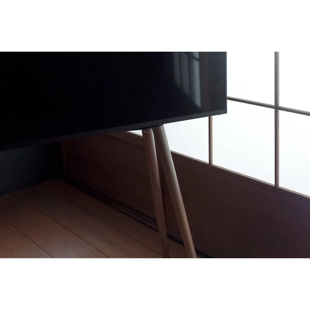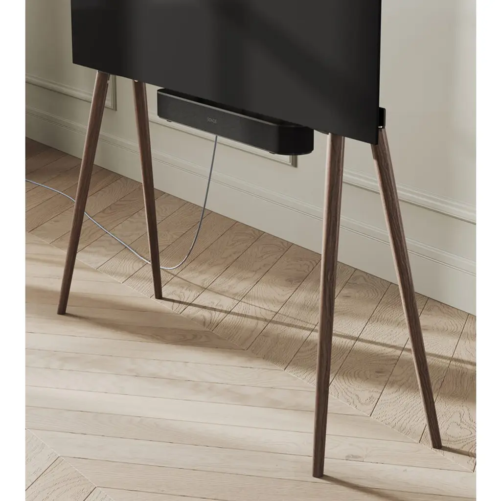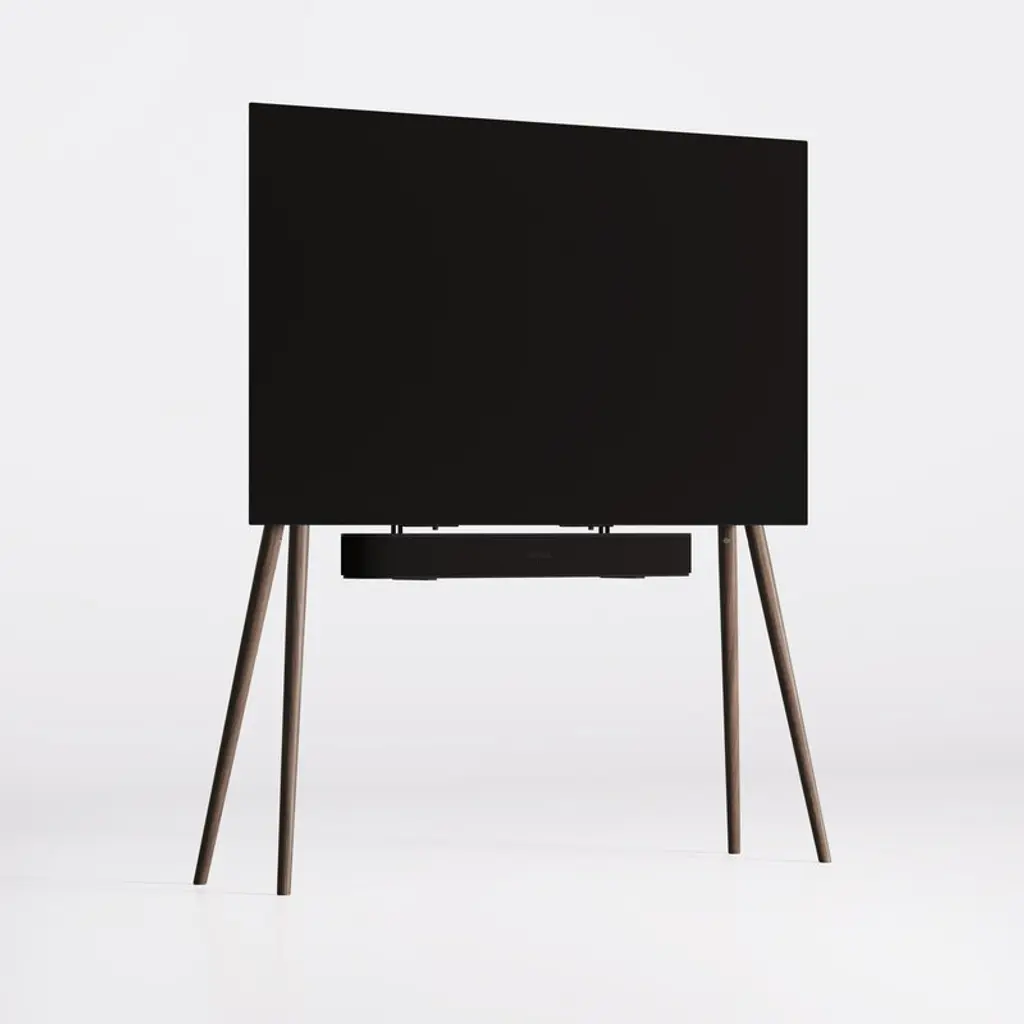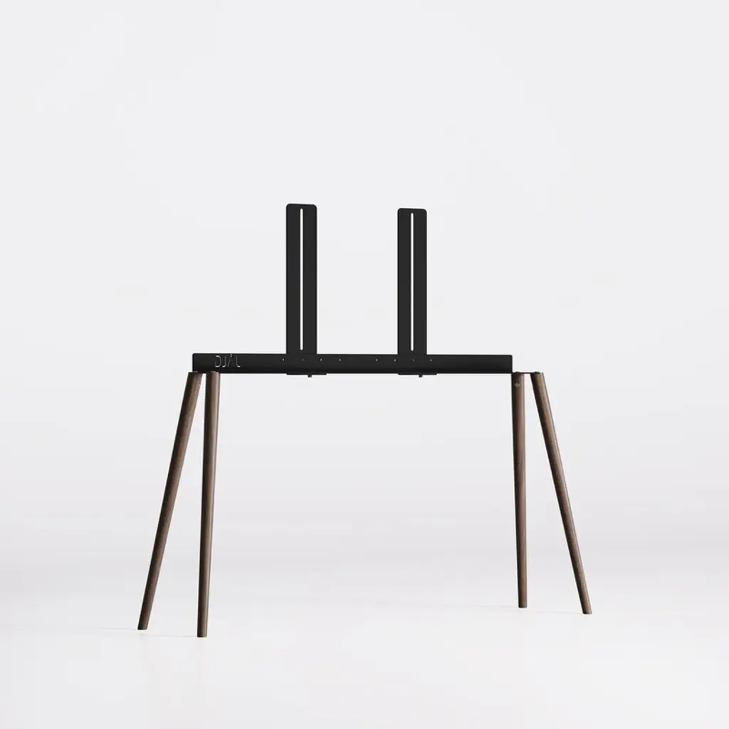 JALG TV stand elevates your television on slender yet sturdy wooden legs. Designed by the Estonian duo behind JALG, this wooden TV stand combines the organic warmth of Scandinavian design with the sleek, balanced lines of mid-century modern esthetics. Its streamlined silhouette doesn’t just please the eye – the minimalist TV stand also keeps cables cleverly hidden behind the screen for a clean, uncluttered look. Made from sustainably sourced wood and premium-grade carbon steel, the JALG TV stand is built for flat-screen TVs ranging from 42 to 55 inches, supporting up to 66.14 lbs (30 kg) in weight. It includes brackets for attaching a soundbar or a separately available JALG shelf. The stand is VESA compatible, making it suitable for most television models.