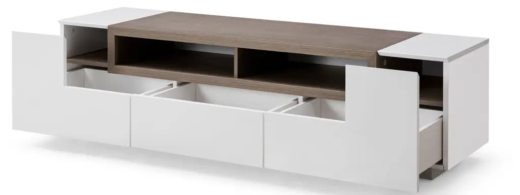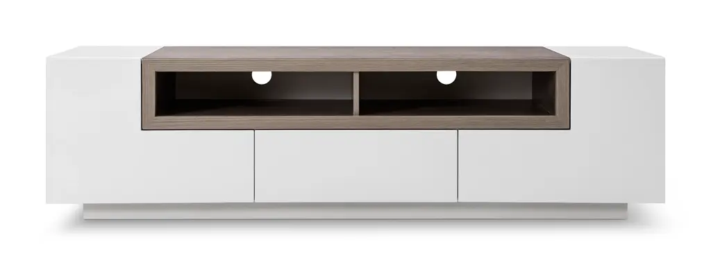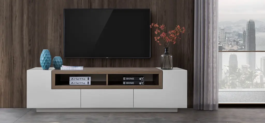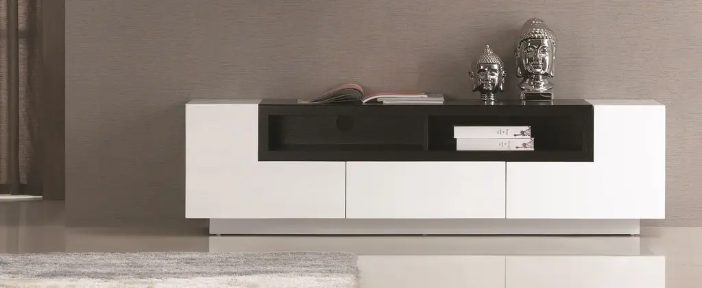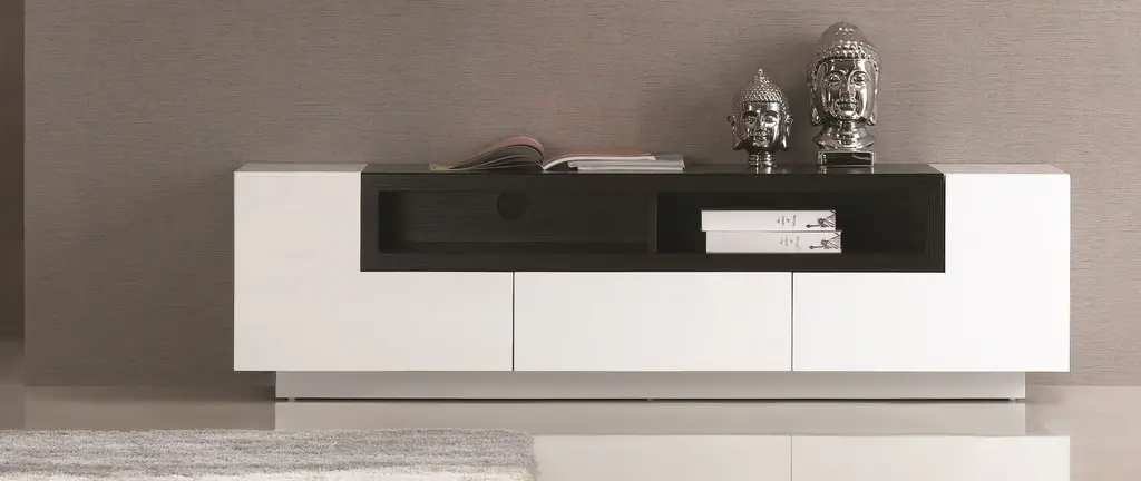 Contemporary TV stand with a beautiful combination. Perfect for any kind of room setting.