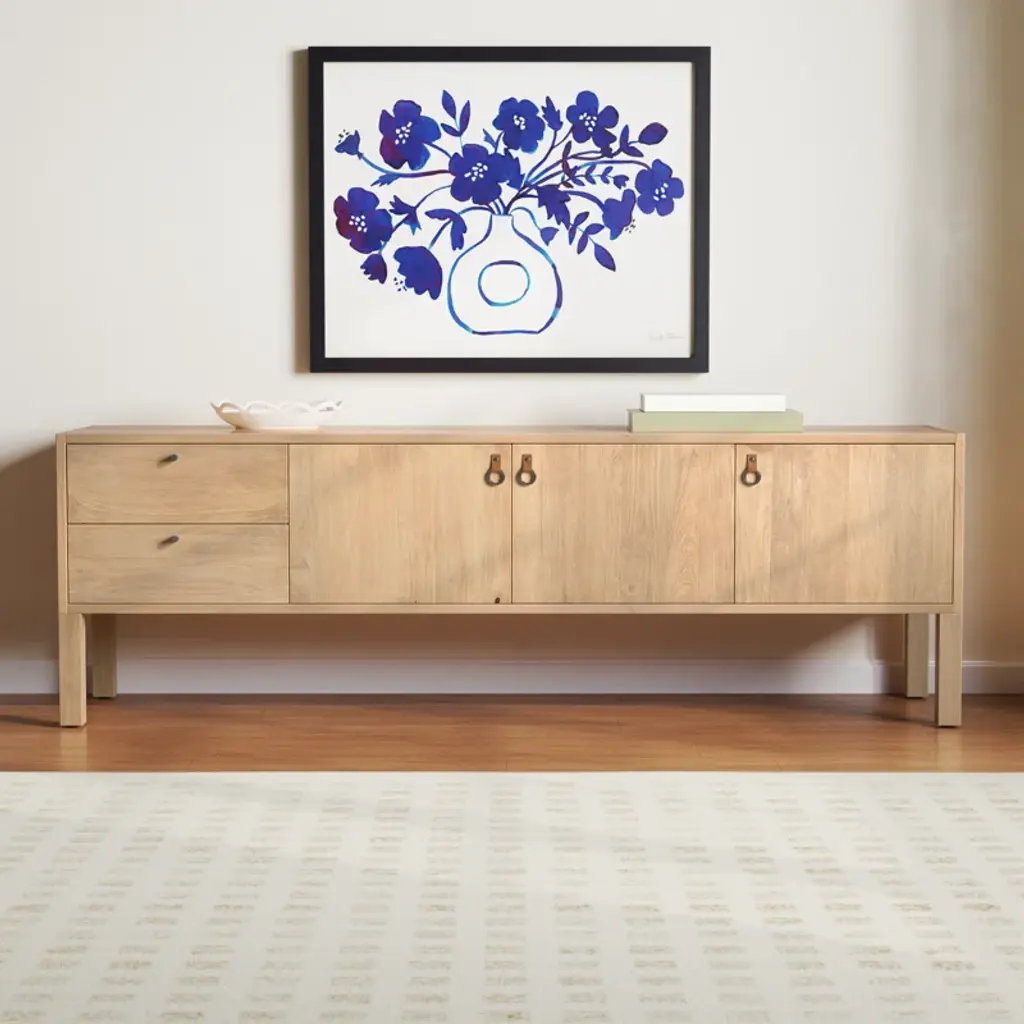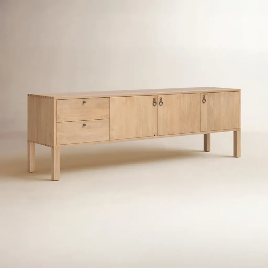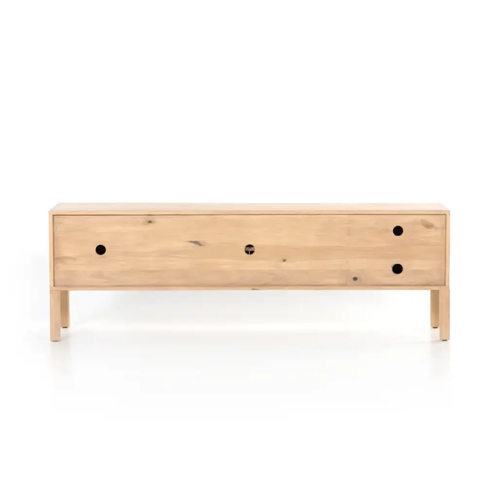 Beautifully simple in spirit. It forms a clean-lined TV stand with dovetail joinery for a fresh, material-driven update to Shaker-inspired styling. Rear cutouts for cord management.