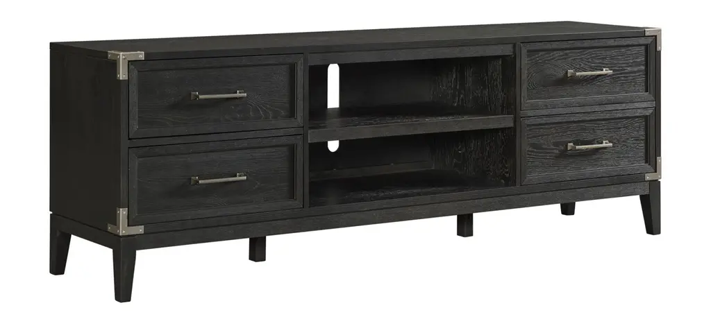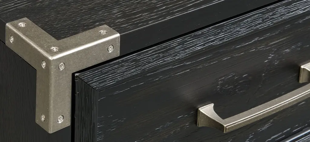 The Laguna Living Room Collection is offered in a wire-brushed multi-step glazed finish, in a complimenting Weathered Steel color. Special features include hardware with an antiqued pewter finish, and decorative metal corner brackets on all items.