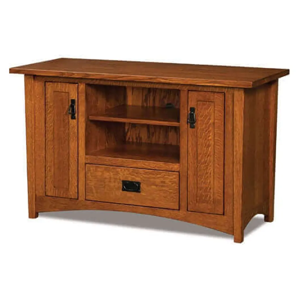 The Landmark open TV Stand features simple mission styling with two open shelves to hold your components. Also available in closed cabinet style in a variety of sizes.