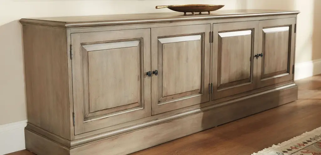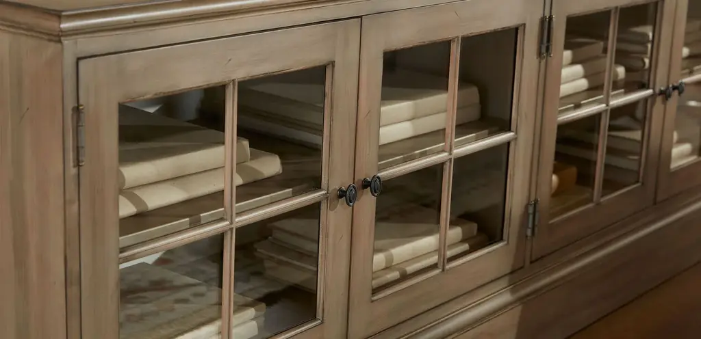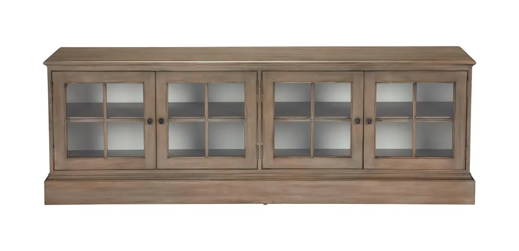 Turn your unused wall into your personal home theatre with the expansive storage capacity of our large Villa media cabinet. Select wood or glass door panels and personalize in the hand-applied finish of your choice.