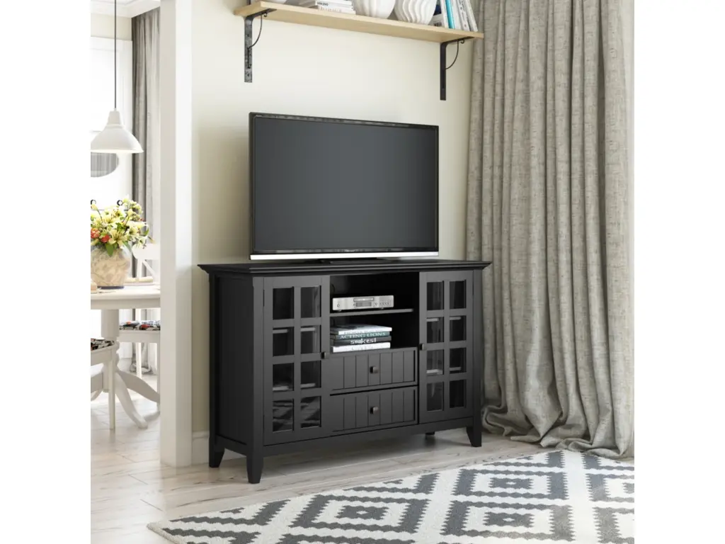 This Light Brown 48" Shallow Wall Mounted Floating TV Stand is a modern addition to any living room, offering storage and shelving in a sleek, floating design. Crafted from natural wood, its light brown color adds a warm touch to your space.