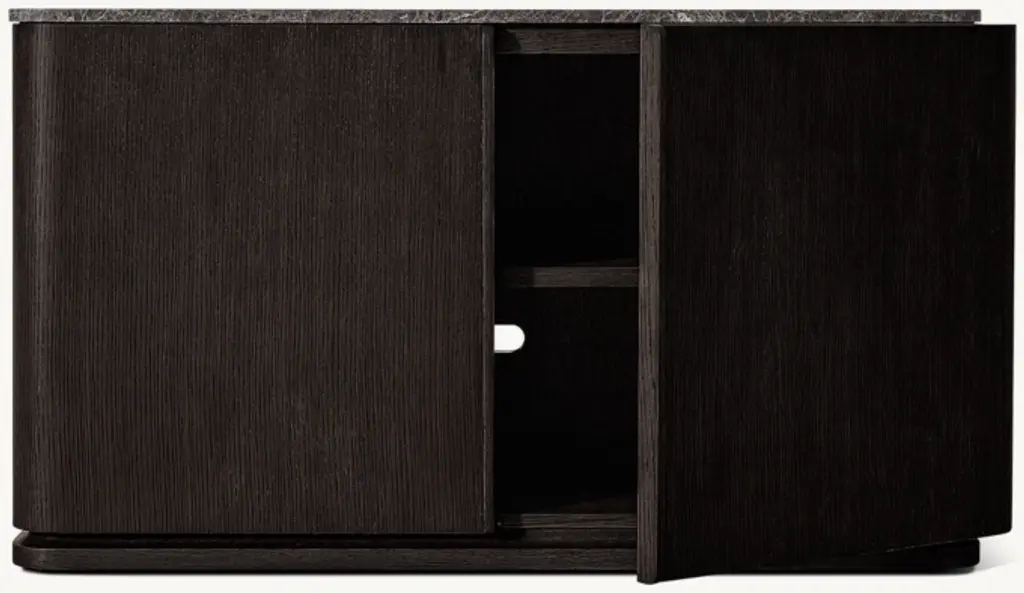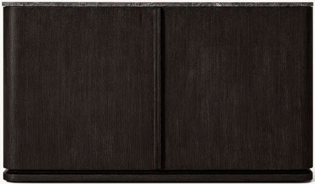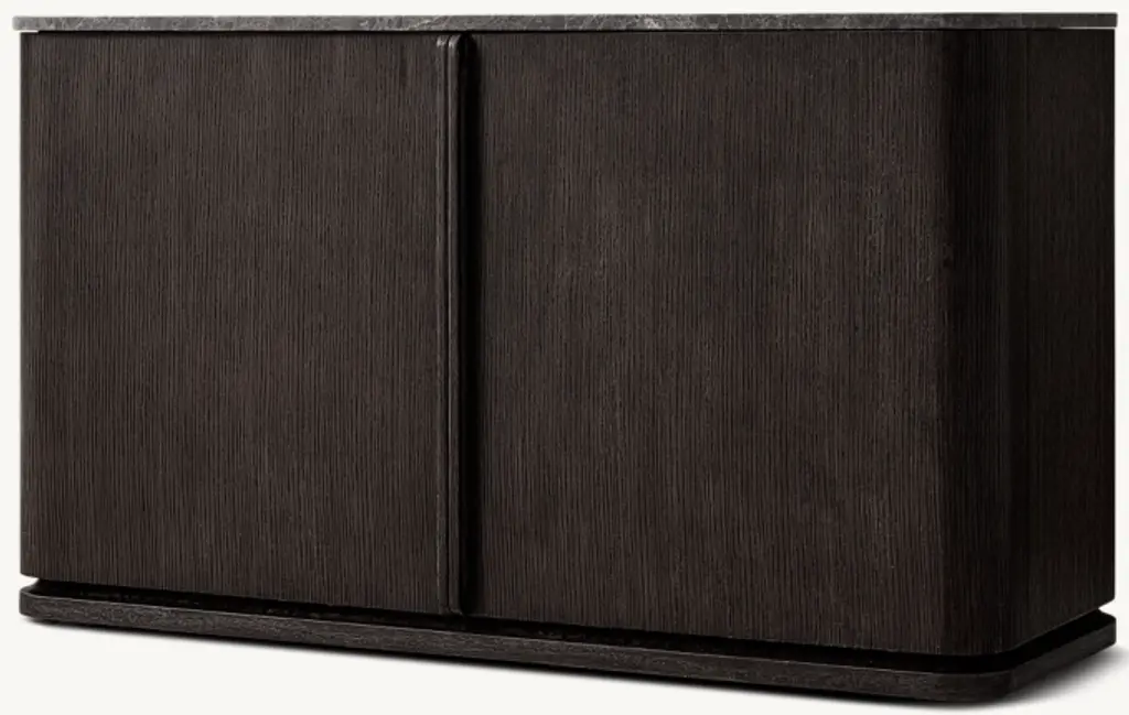 Designed by Julie Lawrence of Roanoke, Virginia, Ligné is handcrafted of American white oak and richly veined marble, each corner wrapped with elegant radius curves. A wire-brushed finish highlights the wood's natural grain, while a slender plinth and integrated oak hardware enhance the understated architectural profile. SHOP THE ENTIRE COLLECTION