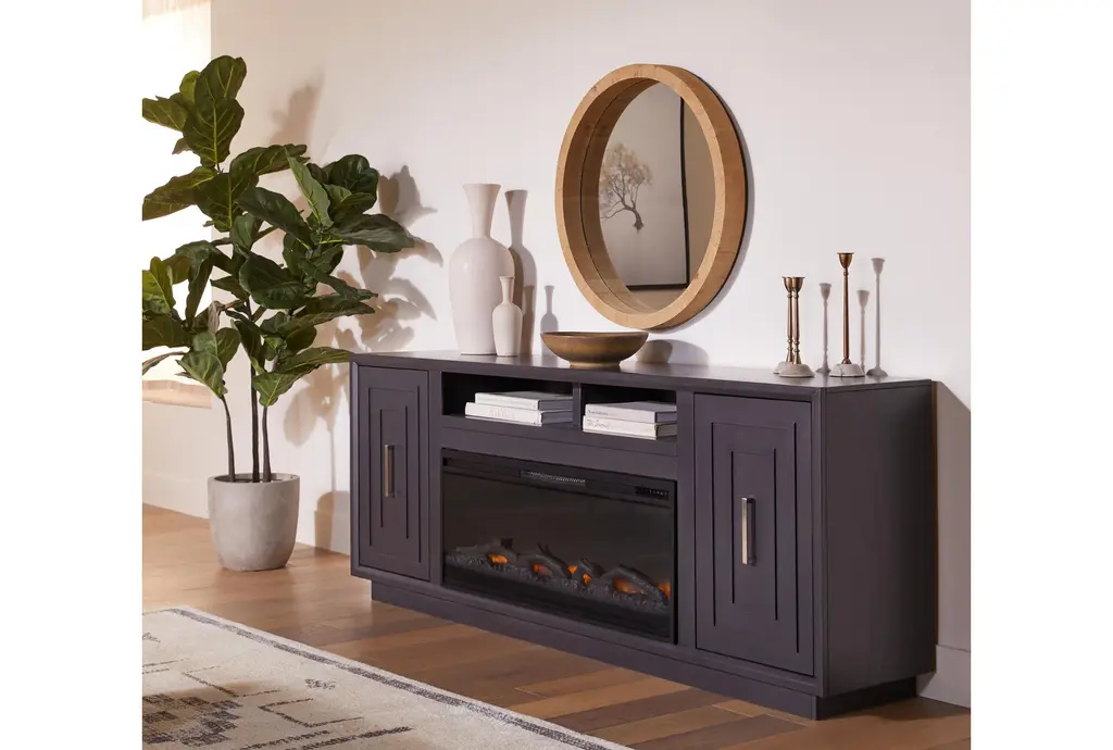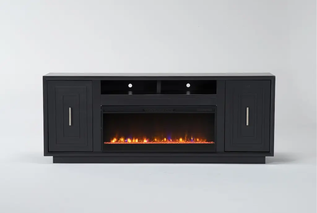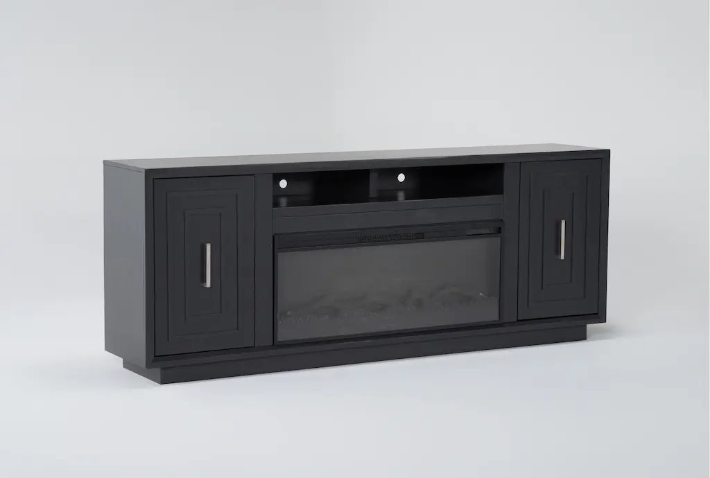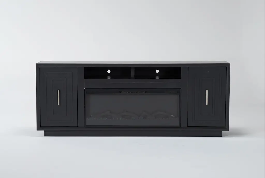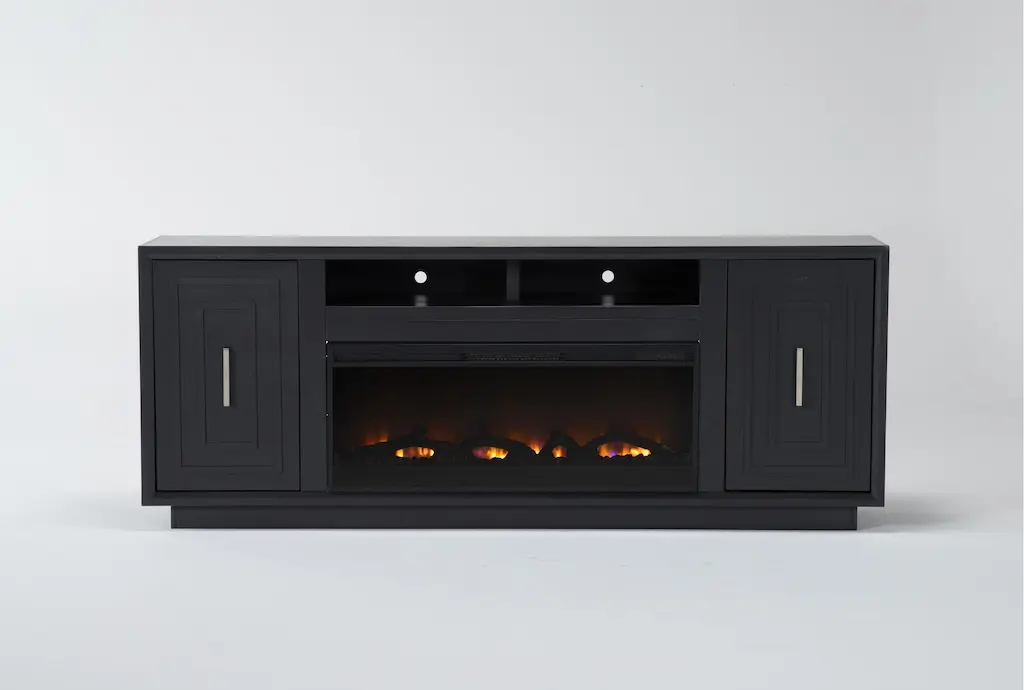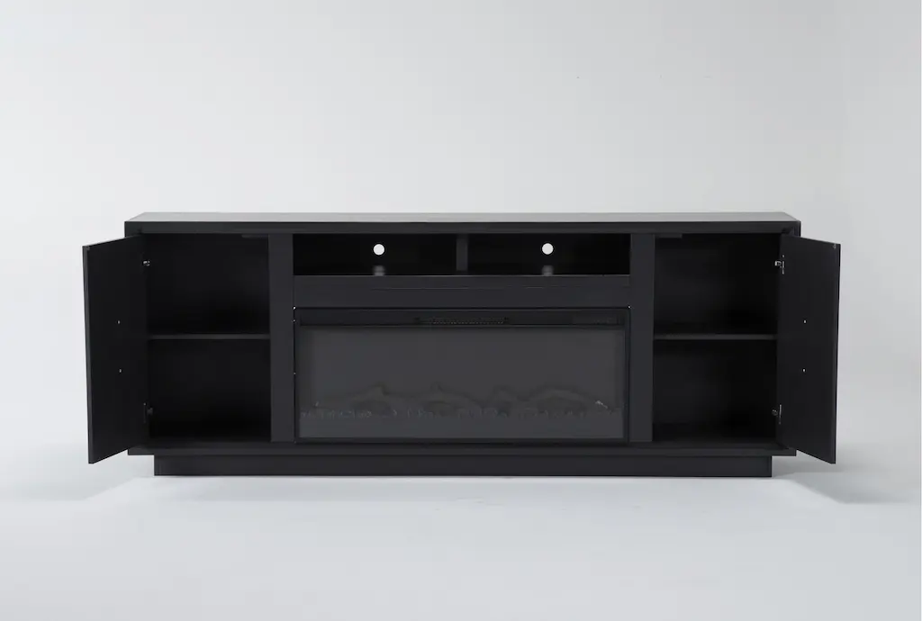 Linette Black 84" Modern Electric Fireplace Wood Tv Stand | Doors | Shelves | Storage | Entertainment Center