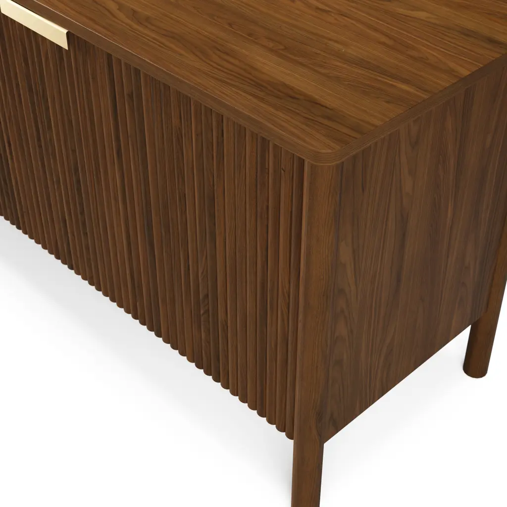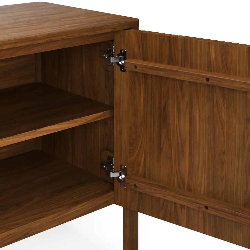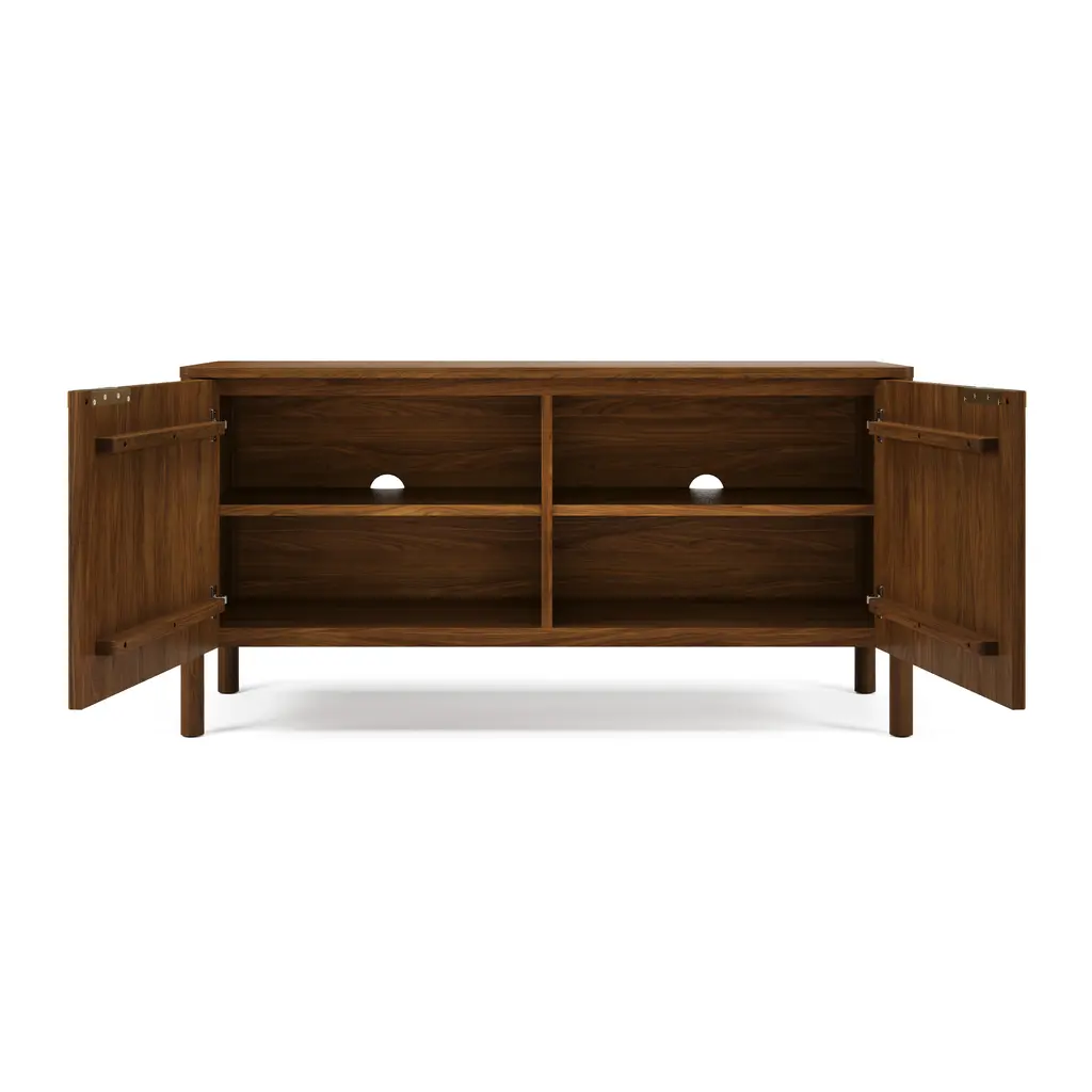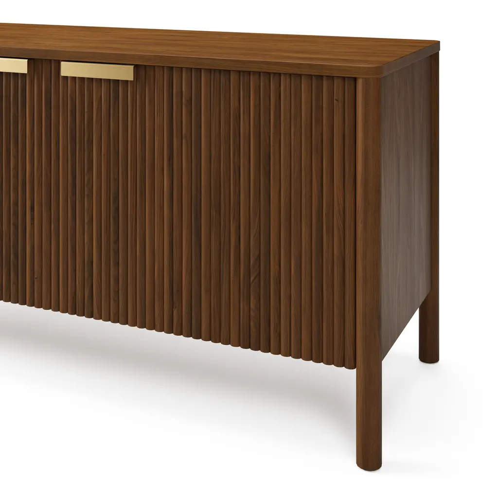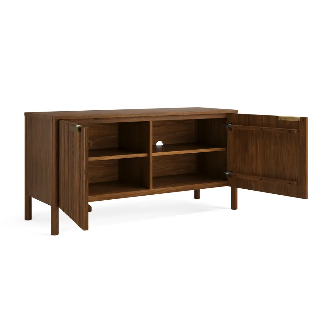 With brass handles, fluted doors, and spindle legs, the Liv Media Unit adds a touch of elegance to your entertainment center. Two cable management cutouts ensure you can hide all those unsightly wires and receivers behind its two soft-close doors when your clean freak tendencies kick in. Whether you're making a statement or just trying to organize your entertainment center, Liv will be a calming presence when the movie starts.