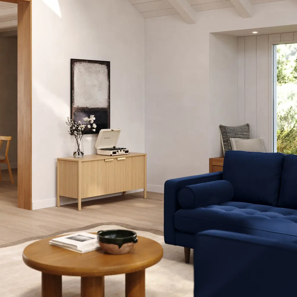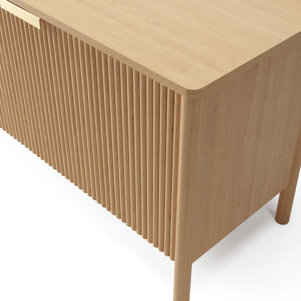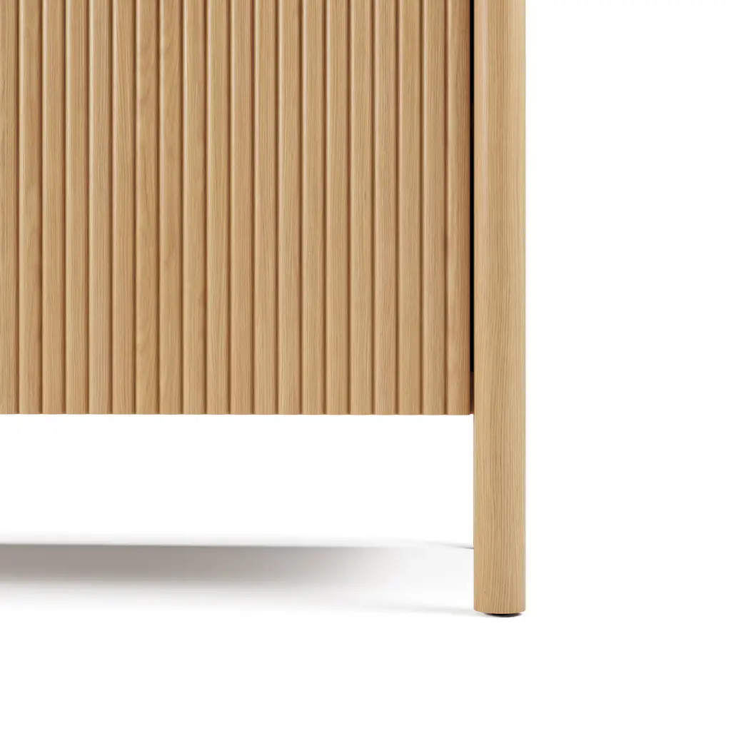 With brass handles, fluted doors, and spindle legs, the Liv Media Unit adds a touch of elegance to your entertainment center. Two cable management cutouts ensure you can hide all those unsightly wires and receivers behind its two soft-close doors when your clean freak tendencies kick in. Whether you're making a statement or just trying to organize your entertainment center, Liv will be a calming presence when the movie starts.