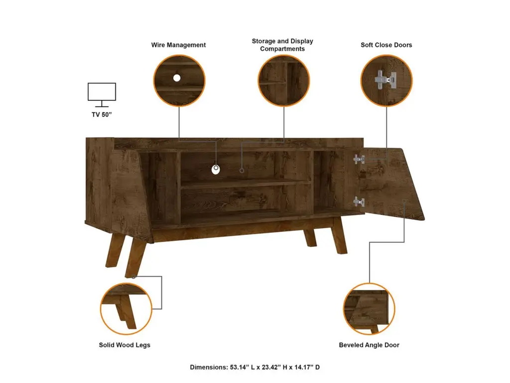 Elevate your living room or bedroom with our charming mid-century modern Marcus Freestanding TV Stand. Crafted with love, it combines style and functionality effortlessly. With soft-close doors, a cable management system, and solid pine wood legs, this stand sets the stage for cozy movie nights and sweet moments together.