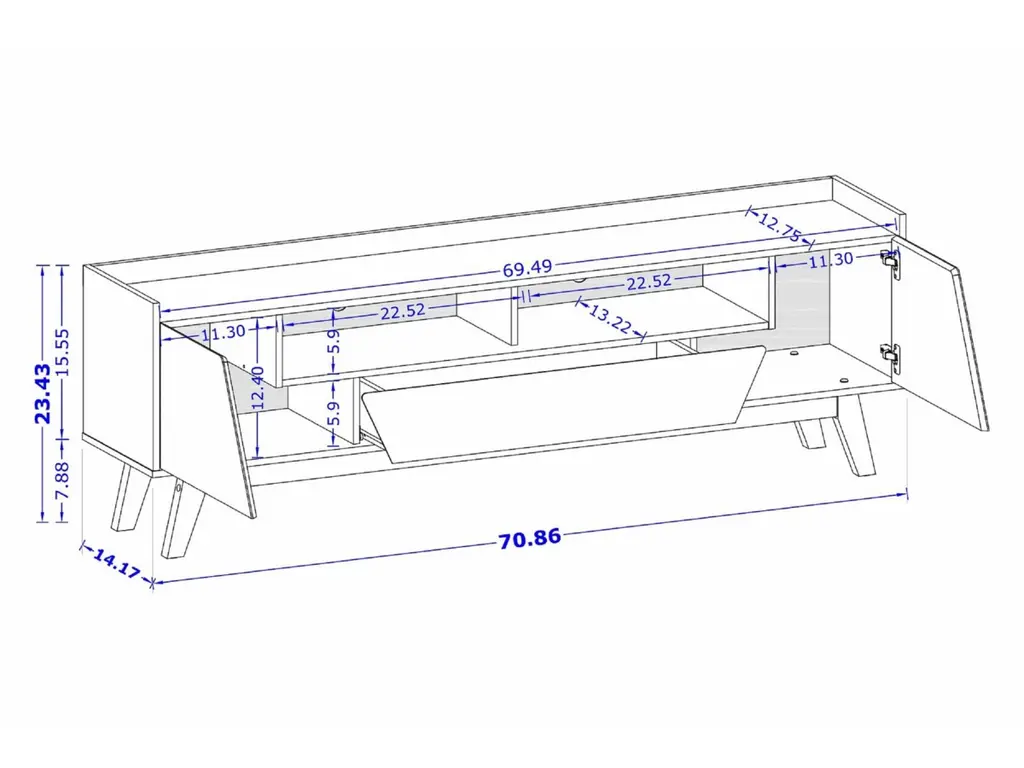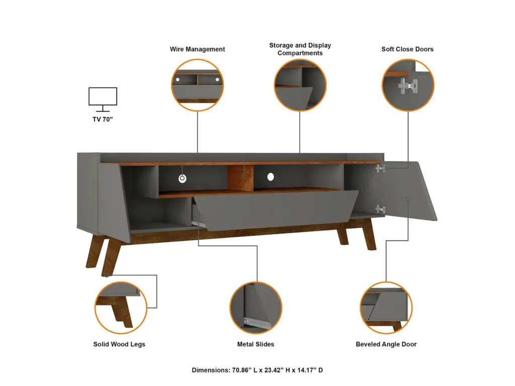 Elevate your living room or bedroom with our charming mid-century modern Marcus Freestanding TV Stand. Crafted with love, it combines style and functionality effortlessly. With soft-close doors, a cable management system, and solid pine wood legs, this stand sets the stage for cozy movie nights and sweet moments together.