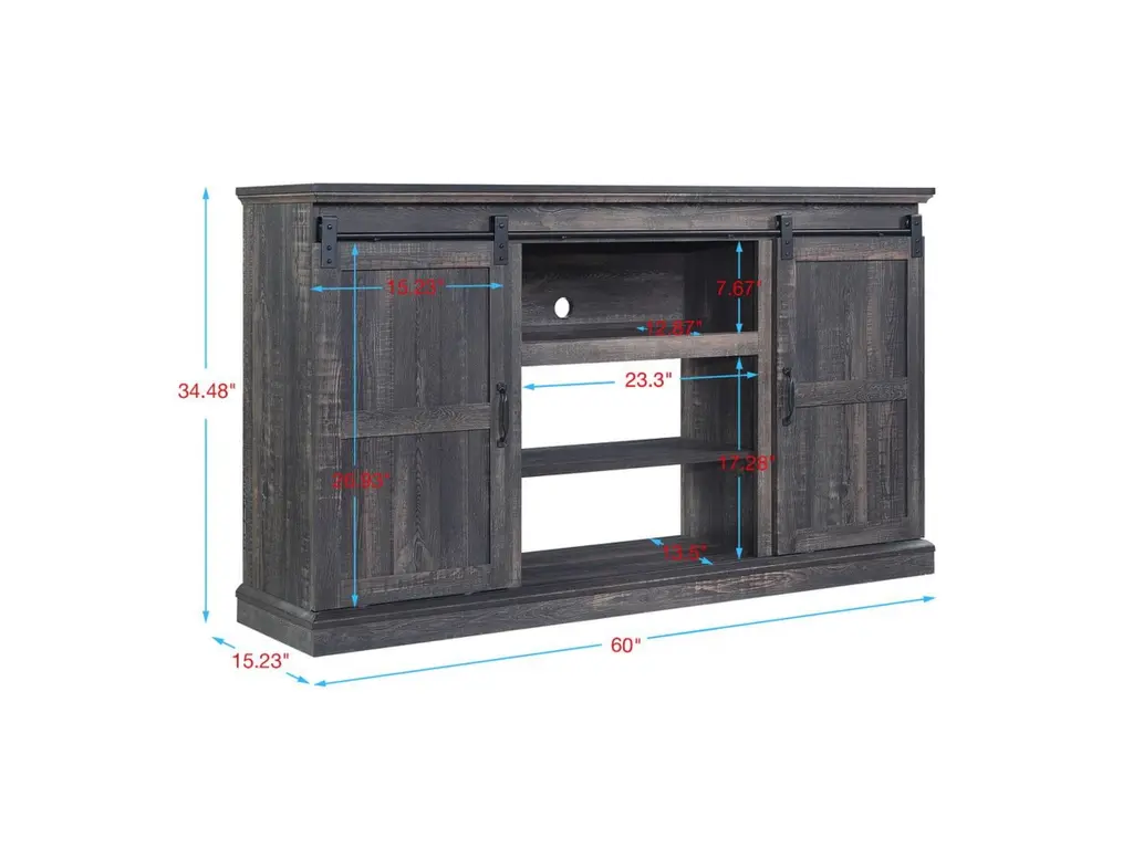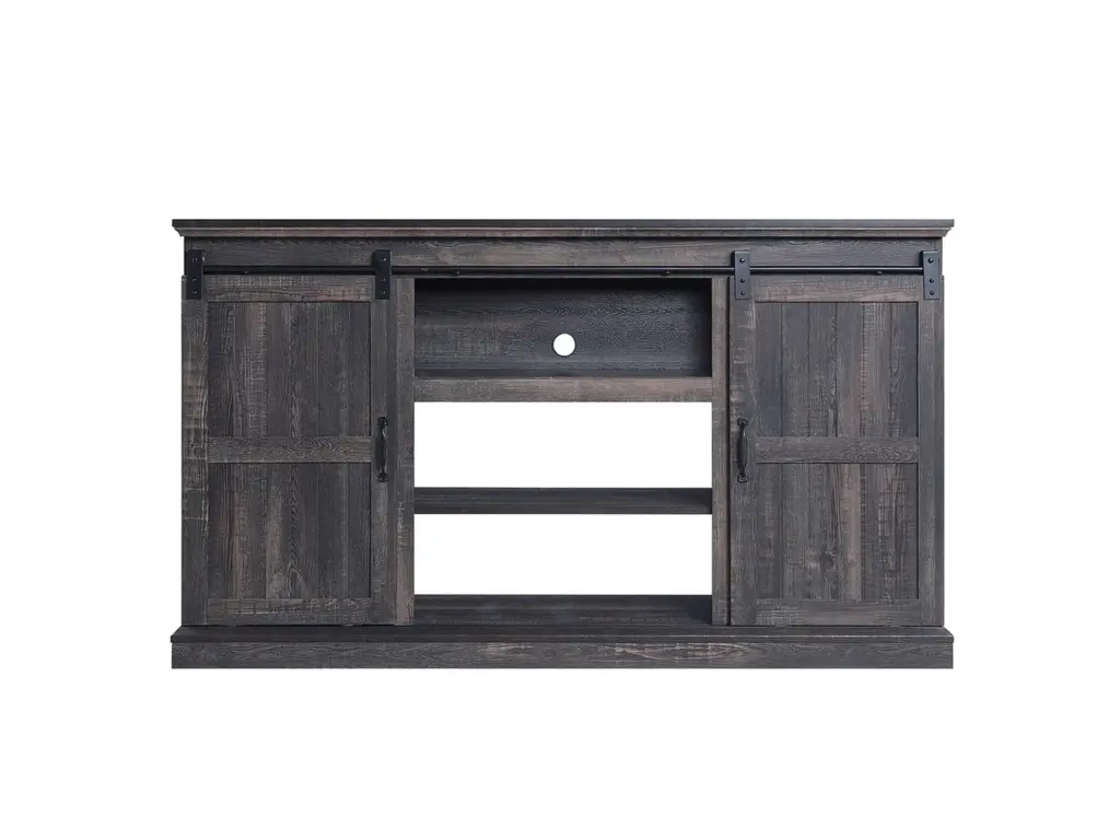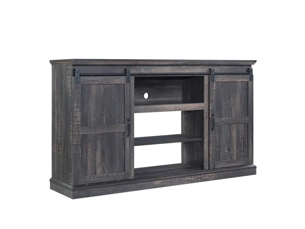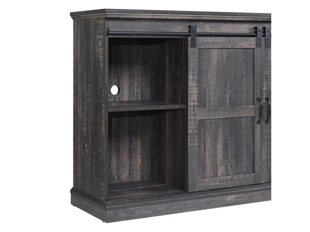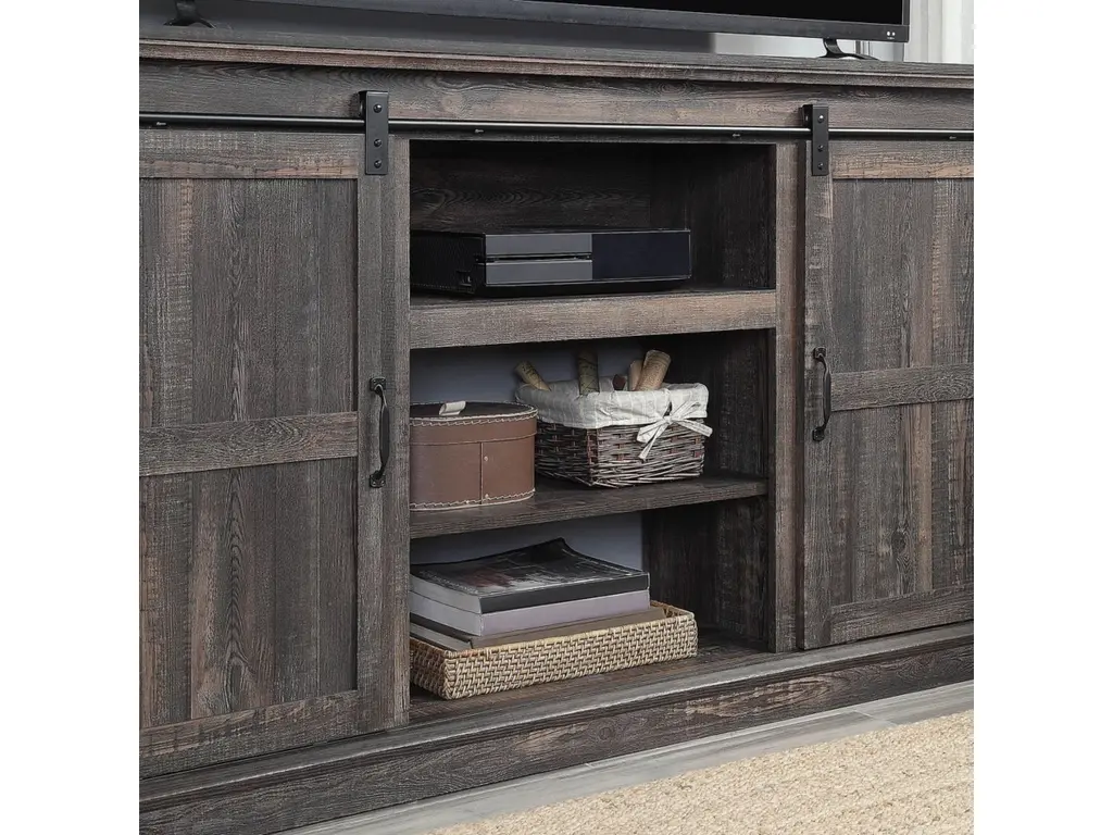 Entertain like a pro and create a stand-out living room nook to host your own Netflix marathon. Rustic flair with a nod to traditional style and functionality make this Myrtle TV console perfect for creating a warm and inviting space to draw all your favorite people together. Sliding barn doors move side to side, to hide away media accessories and display beloved books and decorative accents that showcase your style and personality. Expert build and careful design ensure this piece will remain timeless in style and craftsmanship.