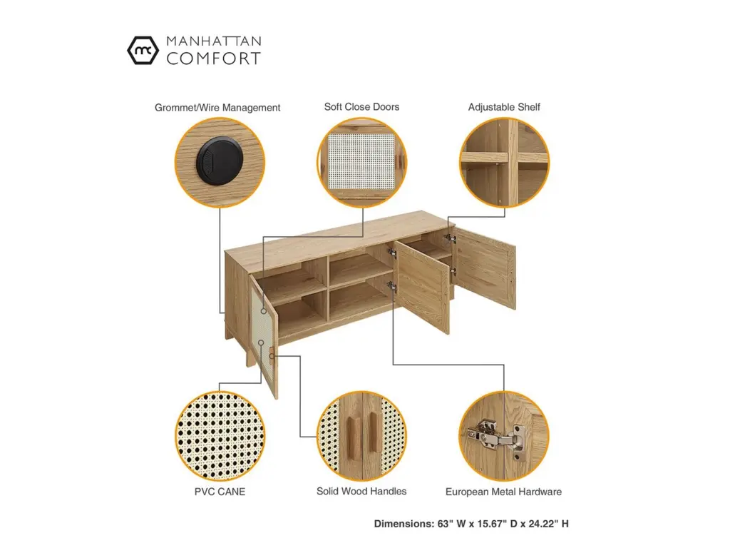 The Manhattan Comfort Sheridan Collection brings a mix of tradition and modernity. This cane furniture blends traditional materials and techniques with contemporary designs, resulting in a unique fusion. It adds a touch of timeless elegance while still feeling fresh and modern. The woven patterns of cane create a visual and texture appeal making your room warm and inviting.