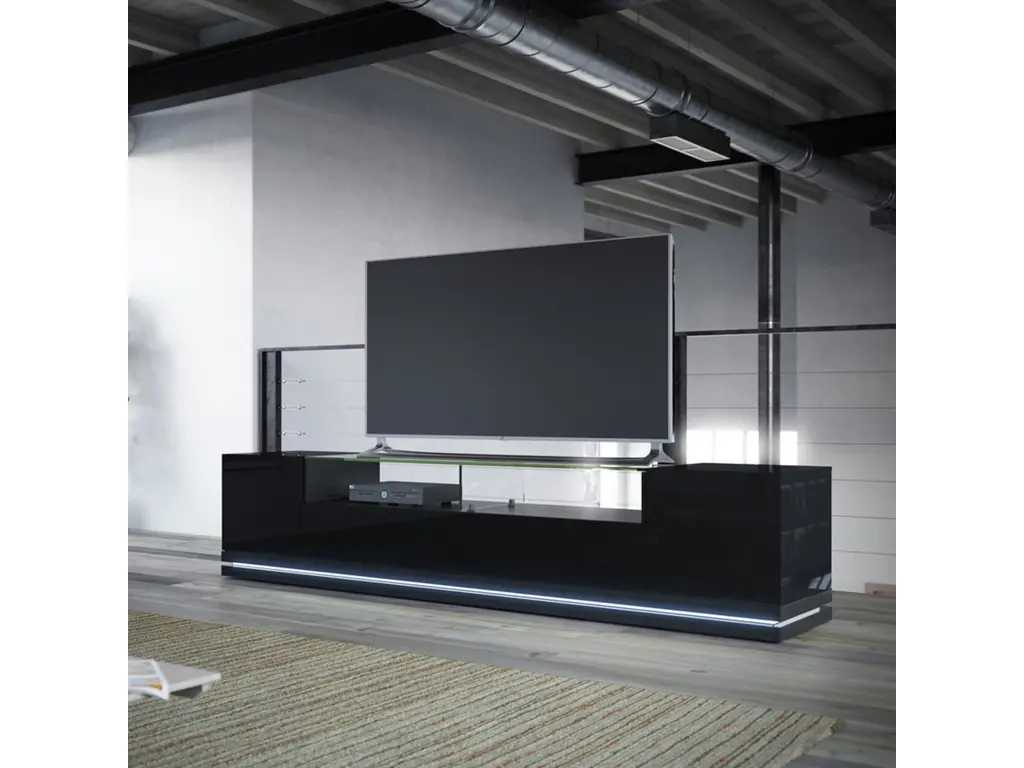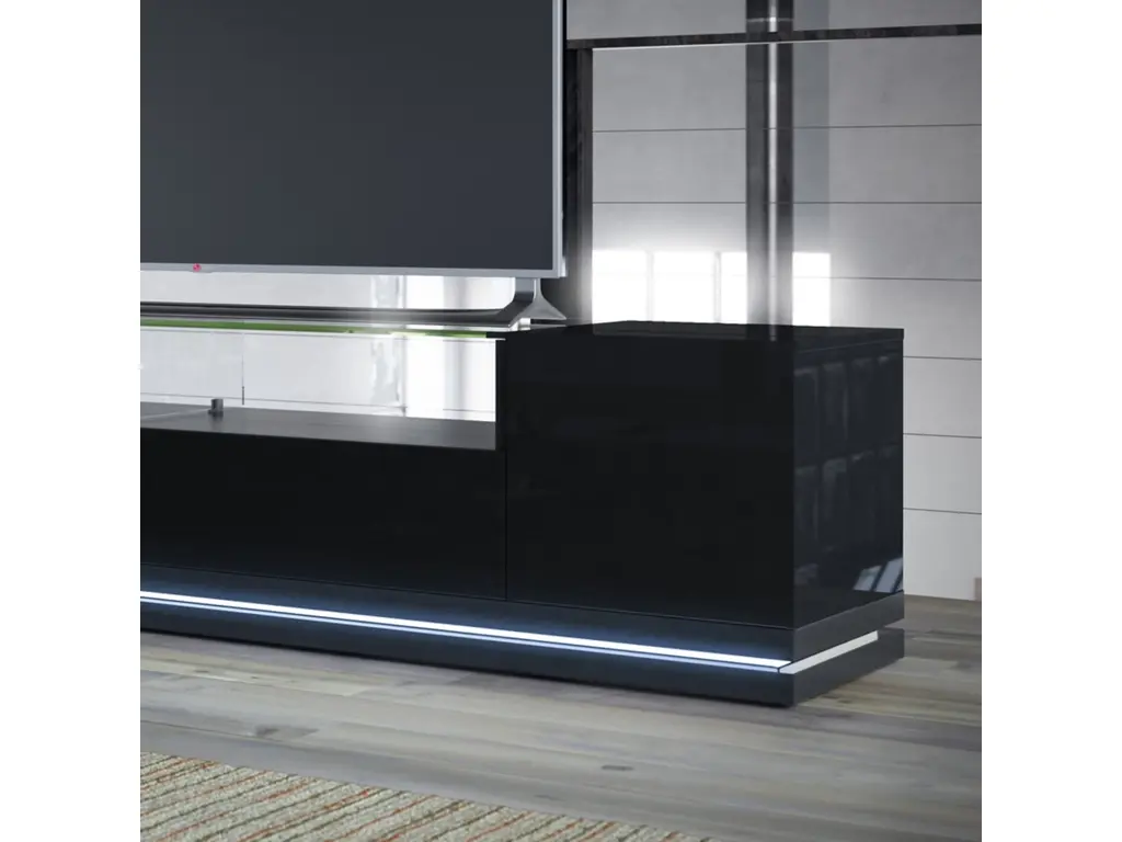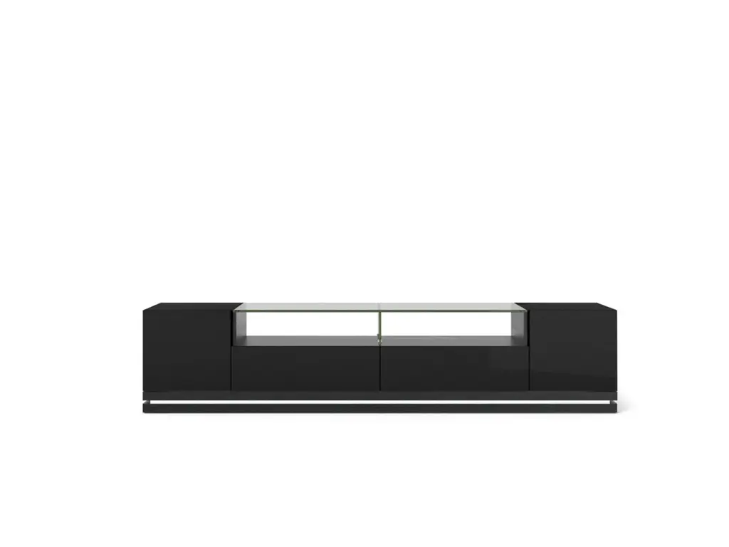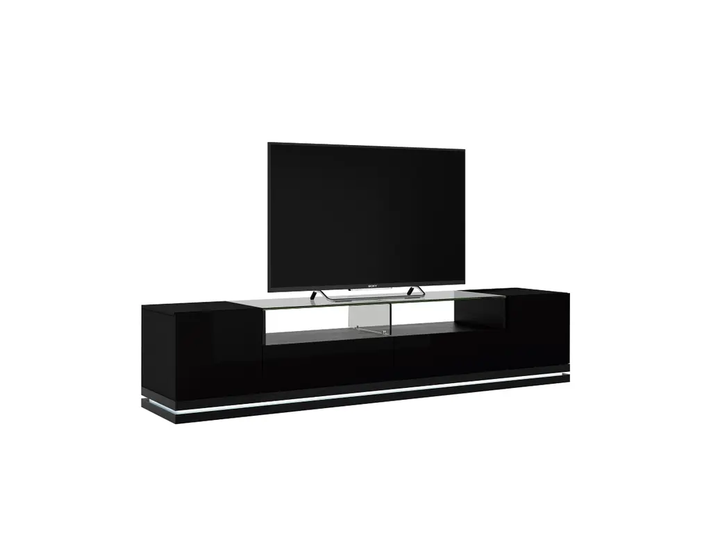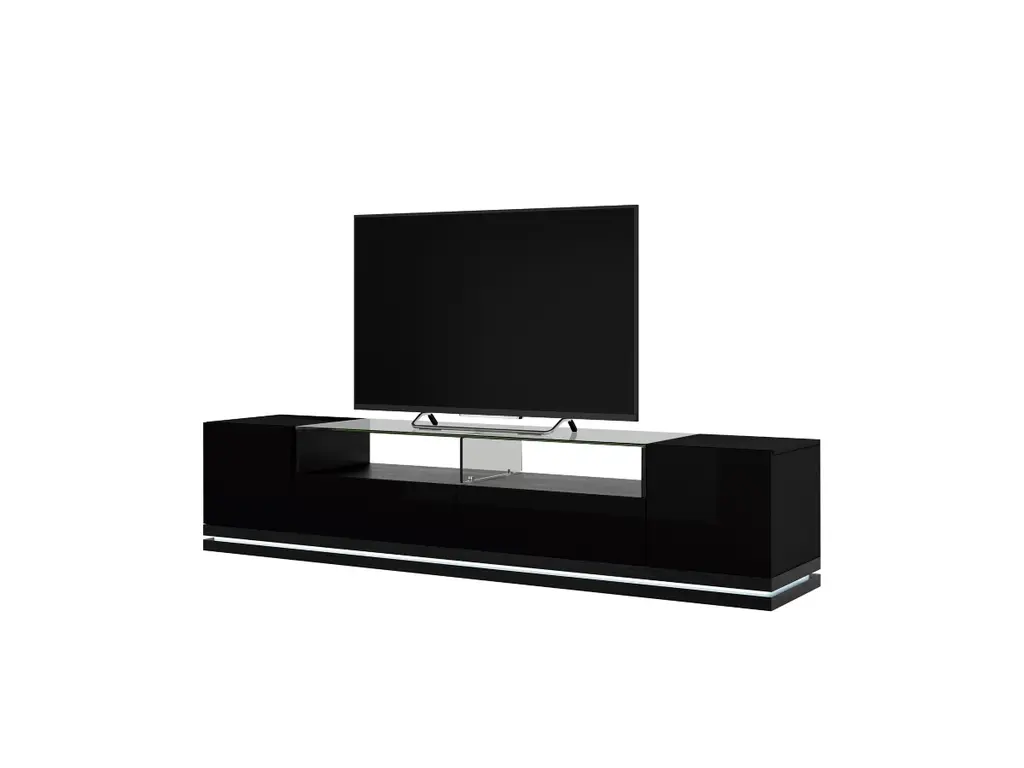 The freestanding Vanderbilt TV Stand is an elegant choice for your contemporary space, featuring a beautiful tempered glass stand to fit up to an 80†screen and components. It includes 2 doors, 2 full extension drawers, 2 open shelves, and the option for LED lighting around the stand. In your choice of White Gloss, Maple Cream-Off White, Nut Brown, and Black with Pro Touch. The unique paint is protected by the Microban Antibacterial Protection.