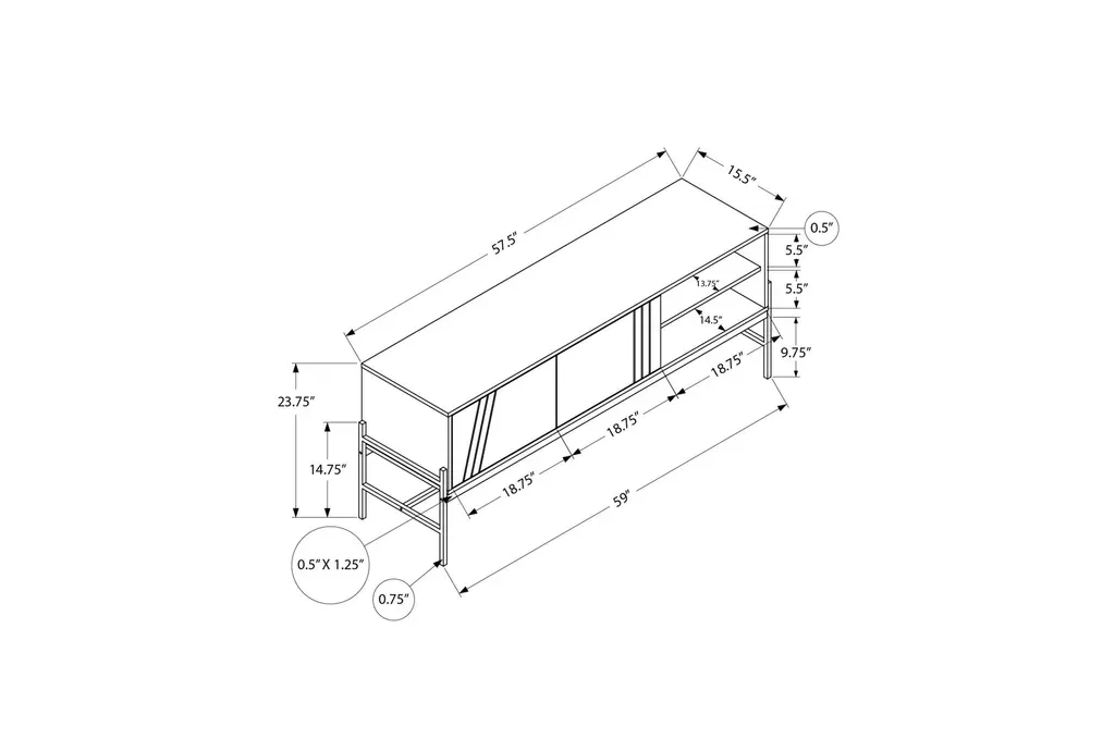 Maude Modern Black 59" Storage Media Console With 2 Shelves Cord Management