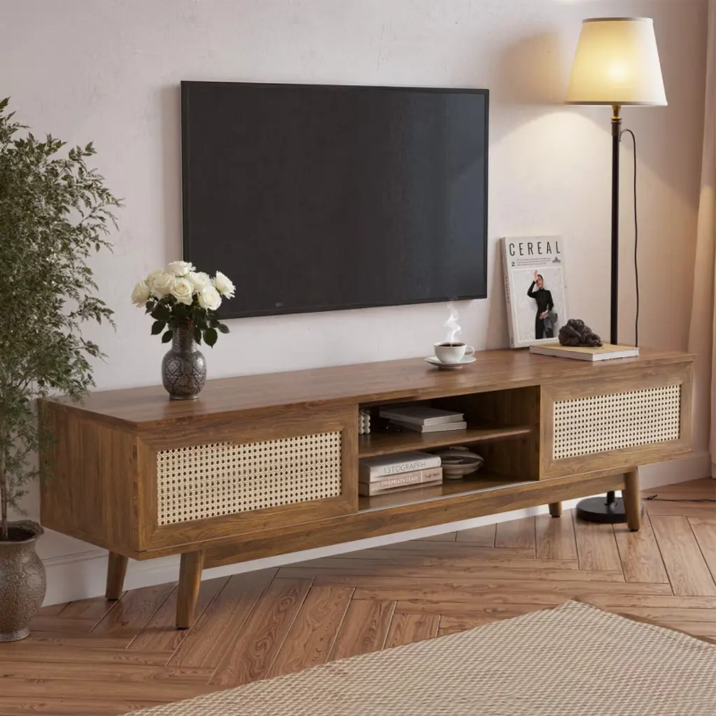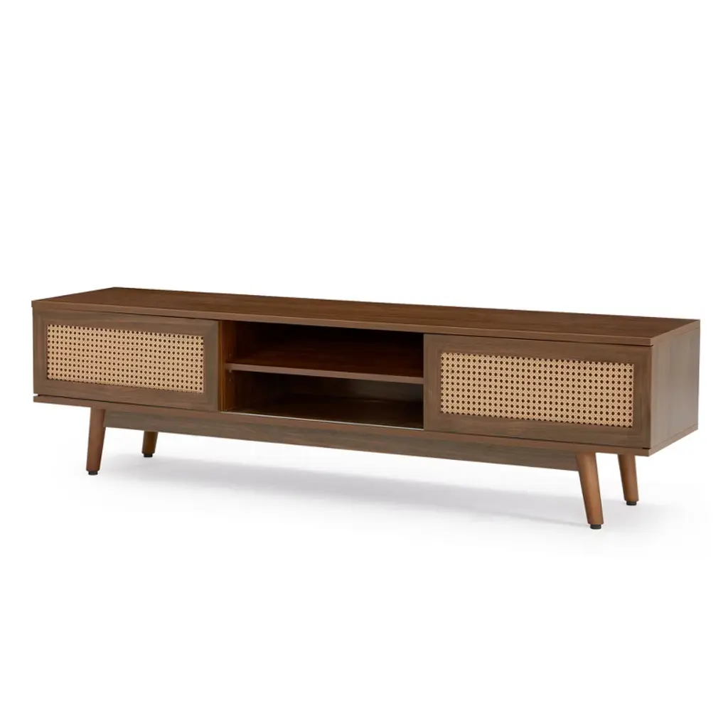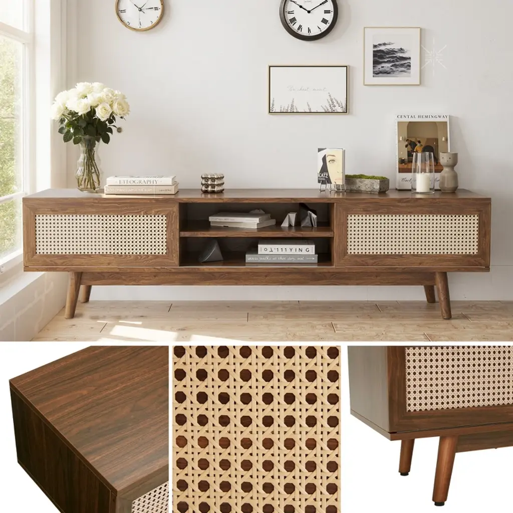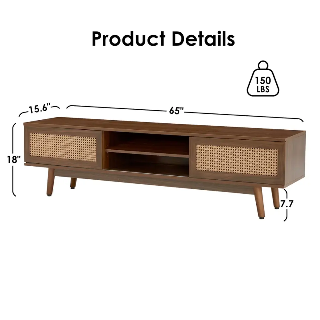 Mayeerty 65 Inch Light Walnut Mid Century Modern Tv Stand Boho Console With Cable Management For Living Room