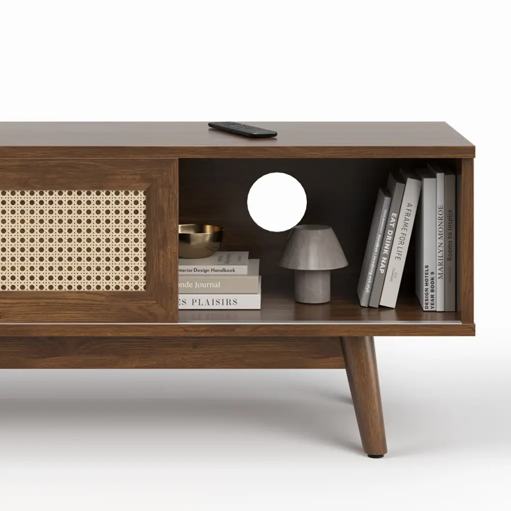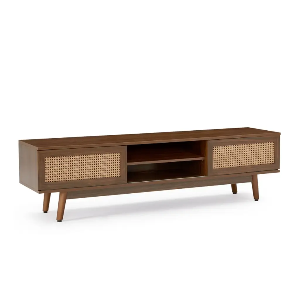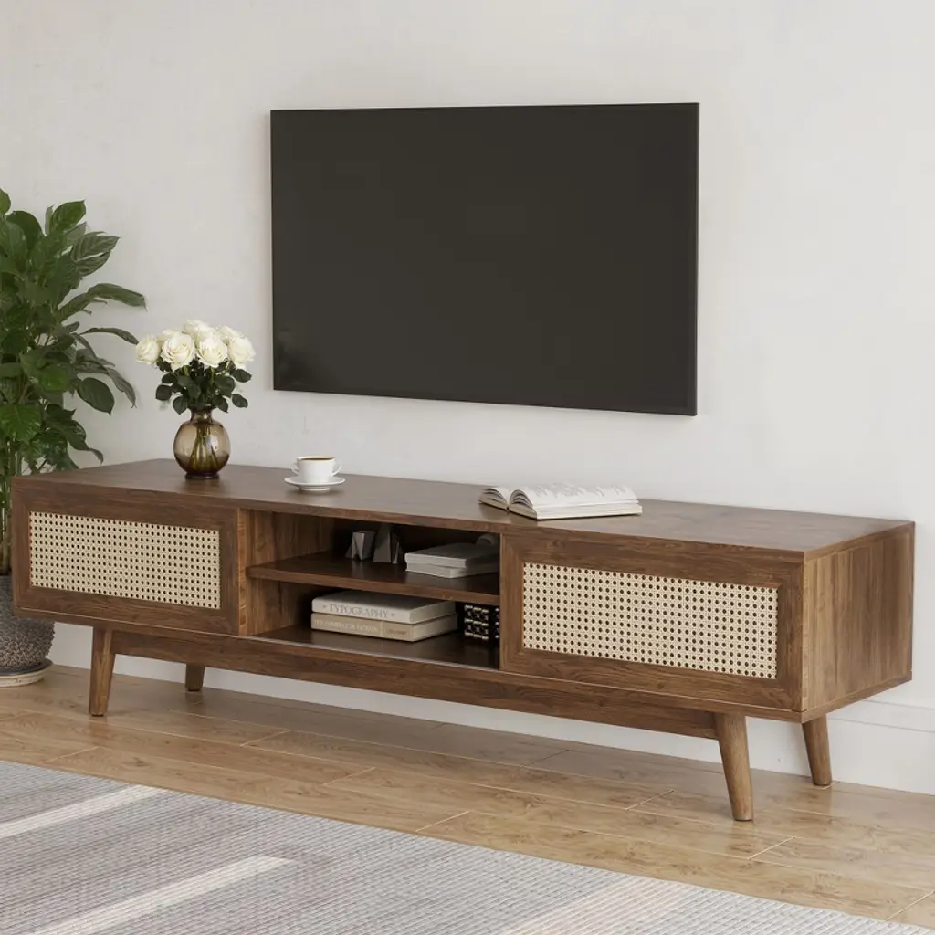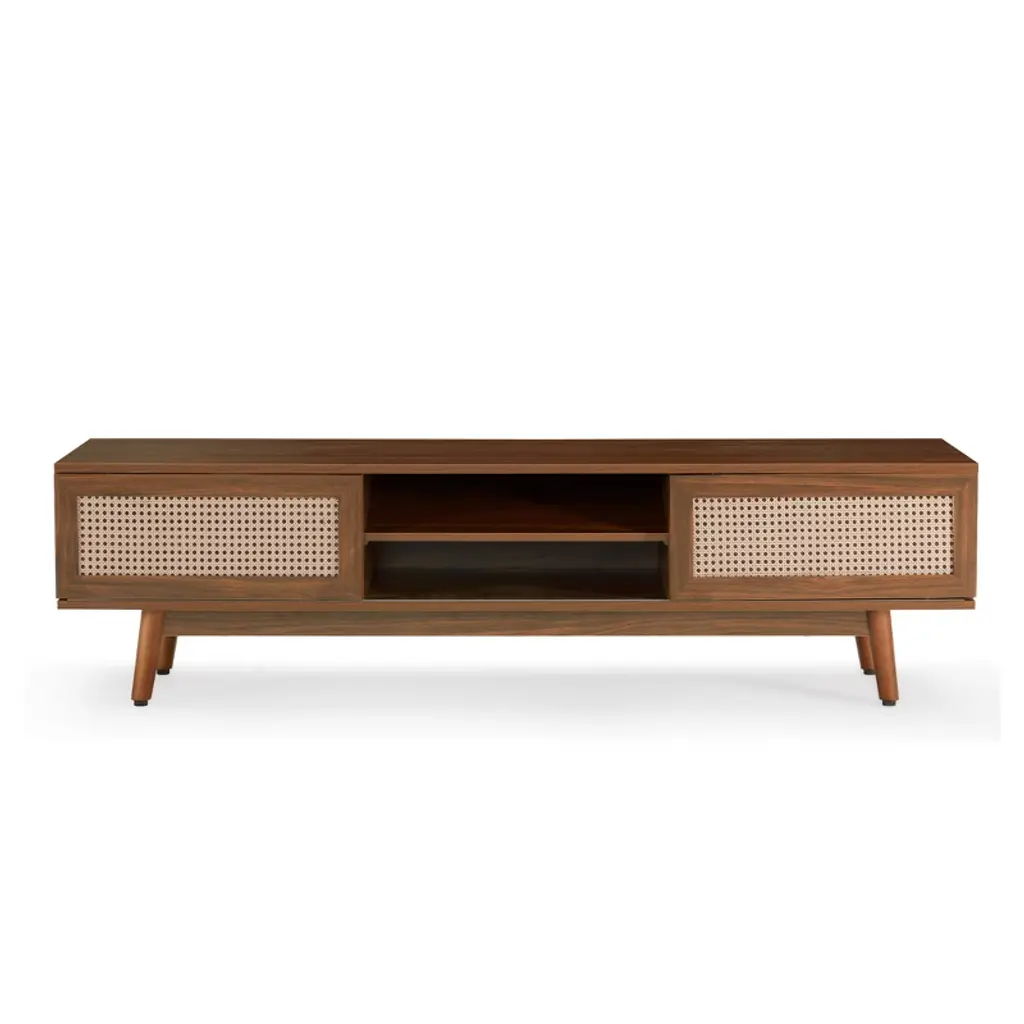 Mayeerty 65 Inch Light Walnut Mid Century Modern Tv Stand Boho Console With Cable Management For Living Room