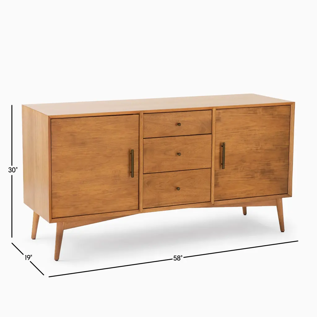 It's fitted with three drawers and two cabinets. Made of durable, sustainably sourced wood. Crafted in a Fair Trade Certified™ facility.