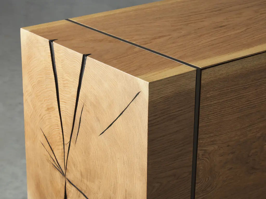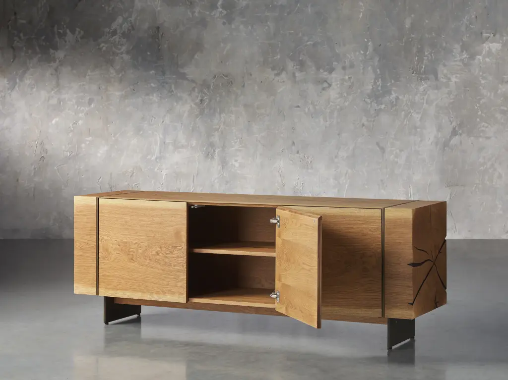 Inspired by the stained interiors of wine barrels, our Mihaela Collection is a masterfully crafted work of art. Each piece is built by a family of artisans using Romanian oak that has been hand-cut from the foothills surrounding their mountain village. Finishes are applied by hand—a closely guarded, secretive process that creates a rich color, accentuating the natural textures and organic grain patterns of the wood.