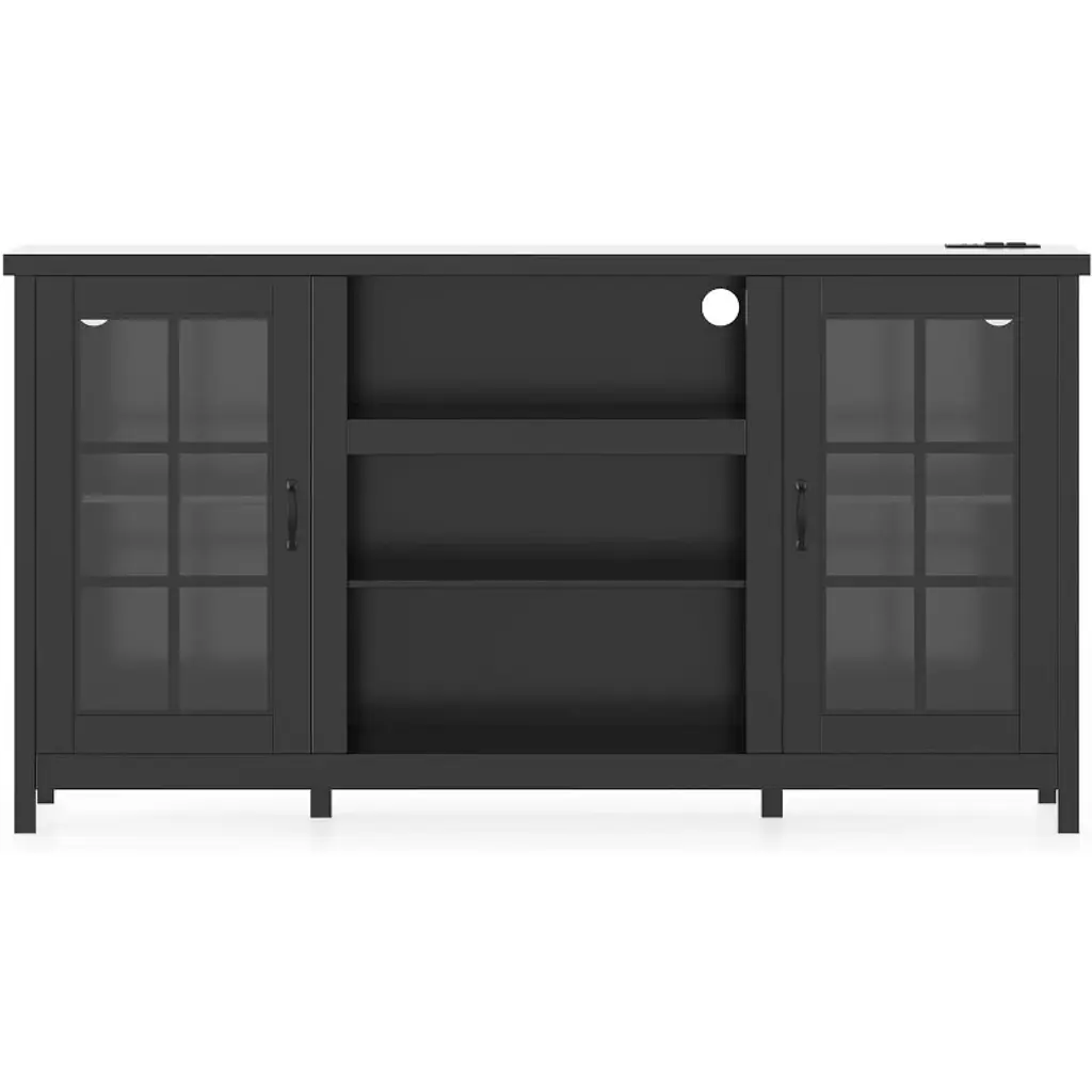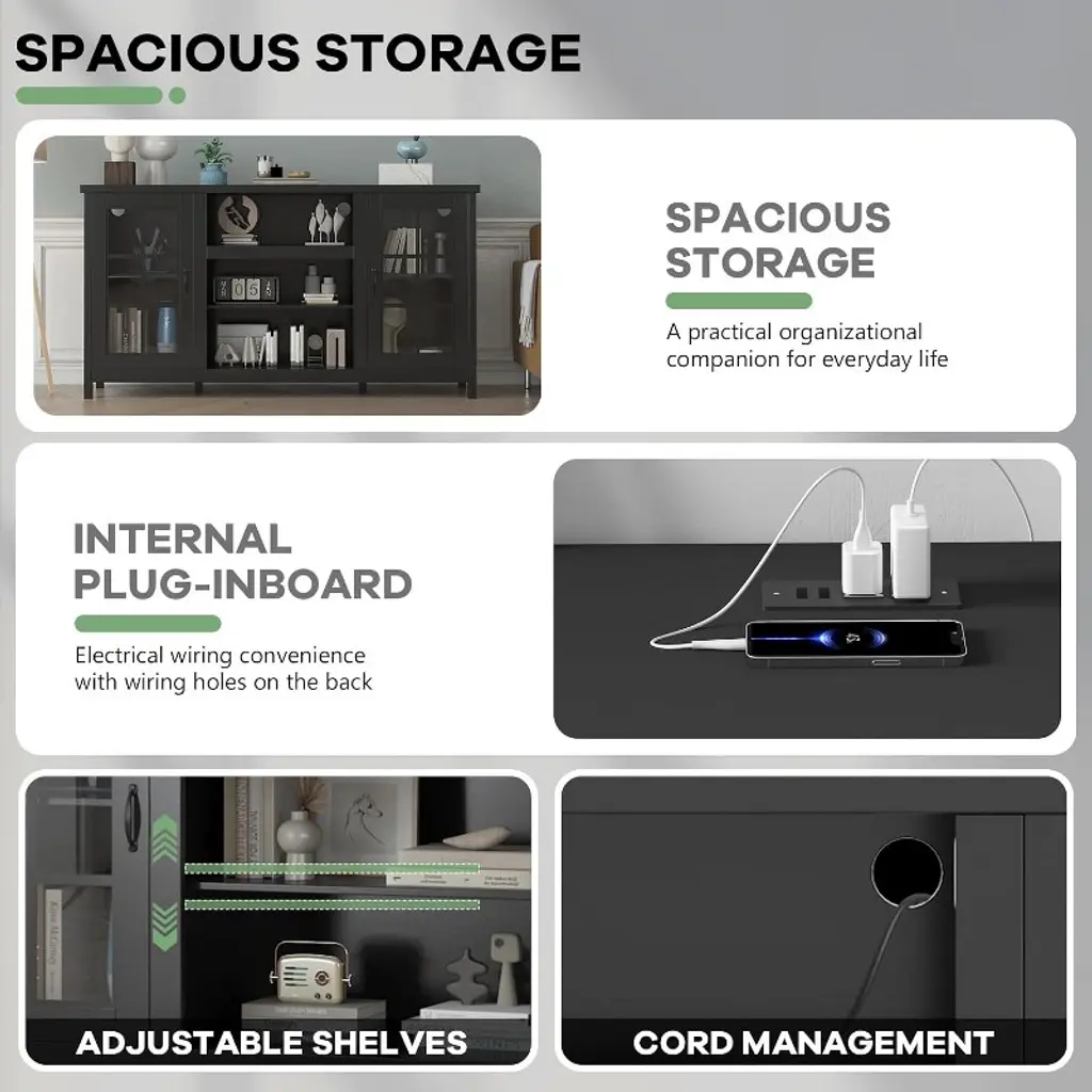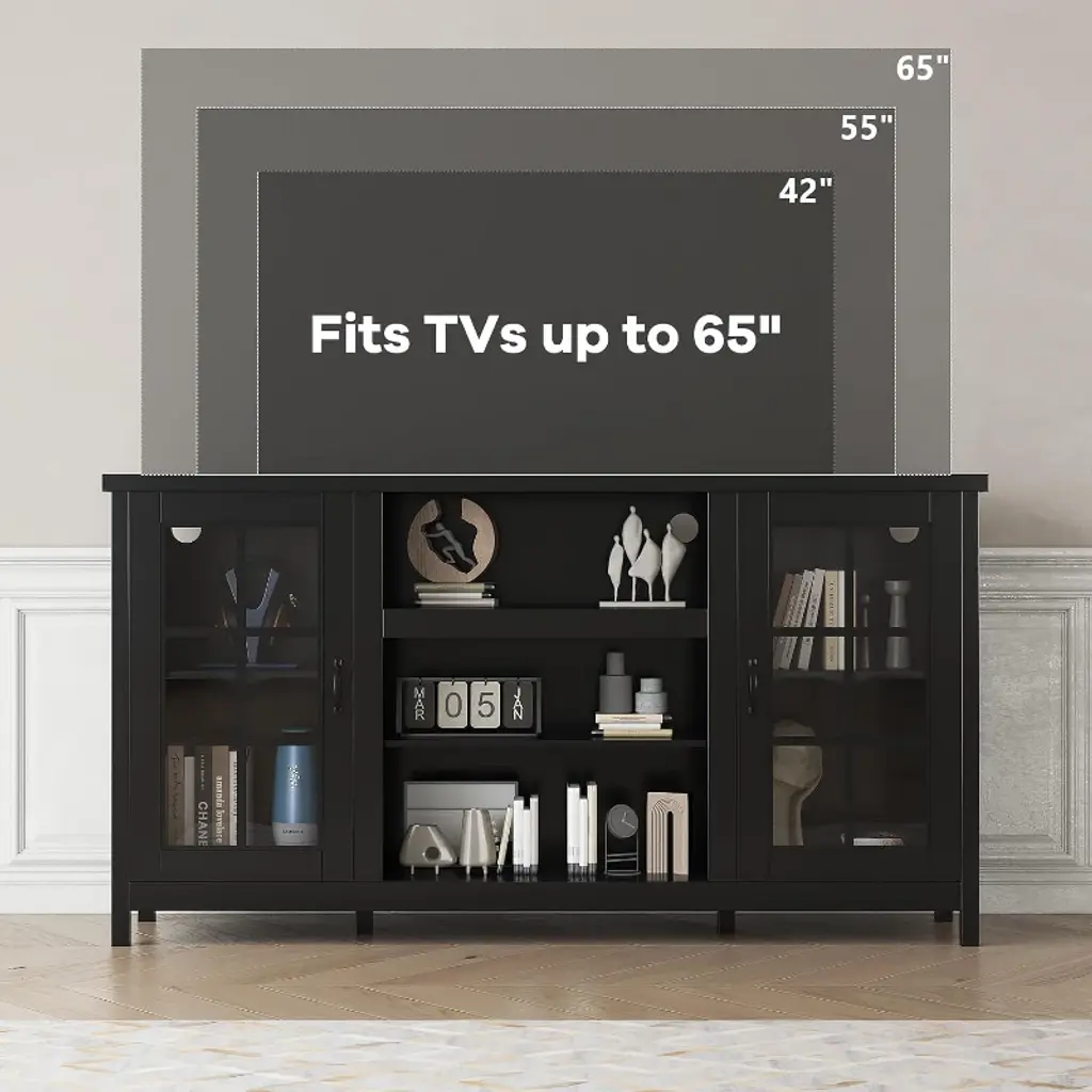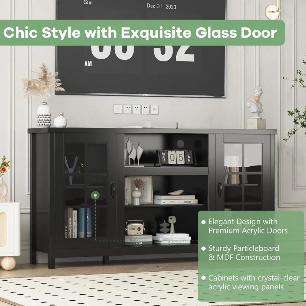 Organize your media center efficiently with adjustable shelves and two side cabinets. The acrylic doors allow for display while keeping dust out. Open shelves and enclosed storage offer flexible space for game consoles, DVDs, and accessories, helping you maintain a clutter-free entertainment area.