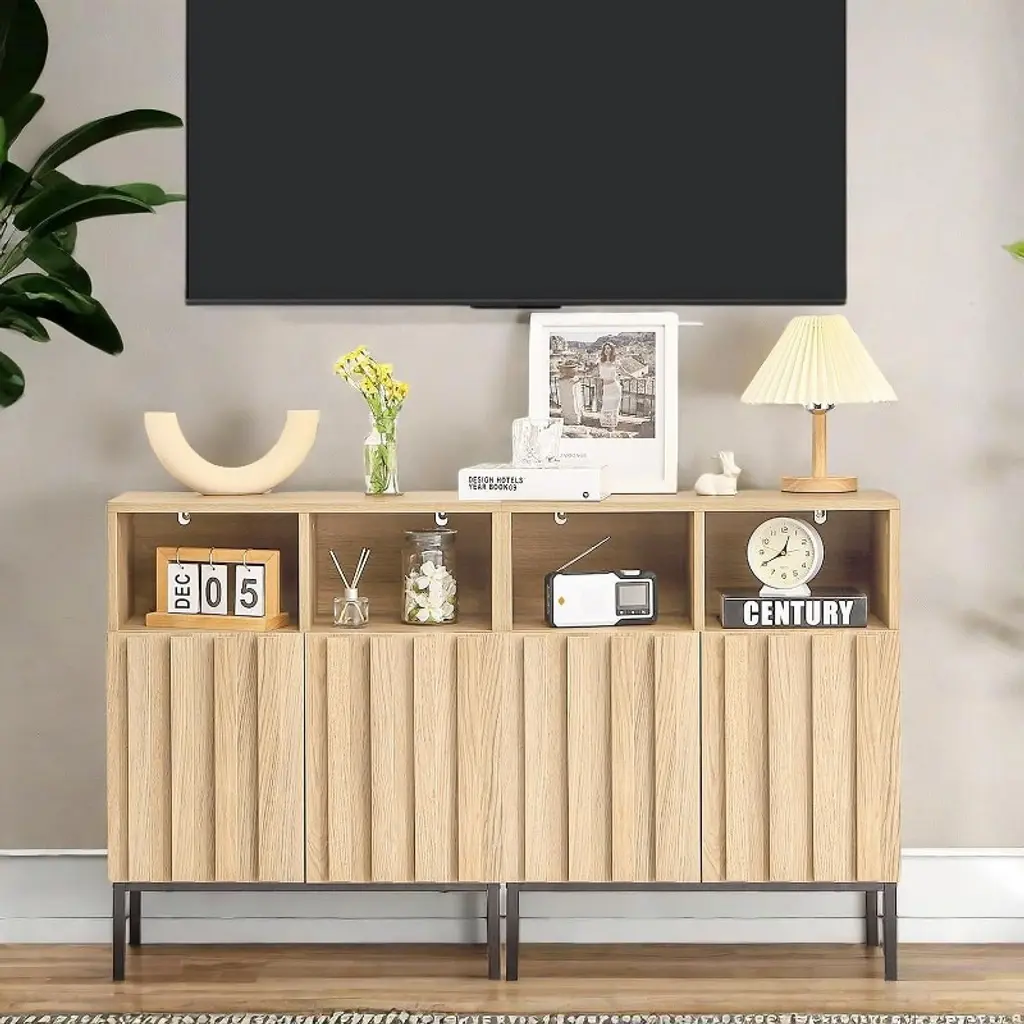 Modern Tv Stand For 65 Inch Tvs,wood Media Console With Storage Cabinets, Entertainment Center For Living Room/office