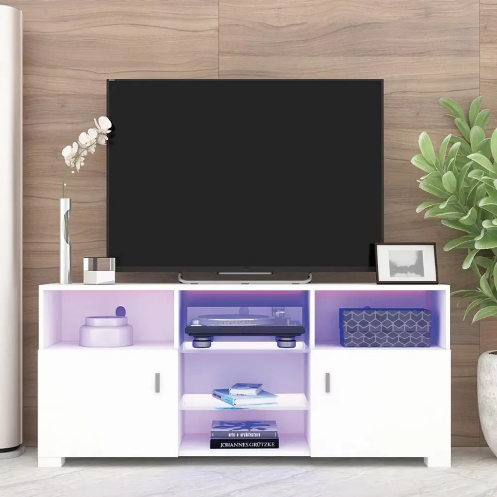 Modern Tv Stand With Led Lights, Open Shelves, And Doors - High Gloss Entertainment Center For 32-60 Inch Tvs, Perfect For Living Room Decor