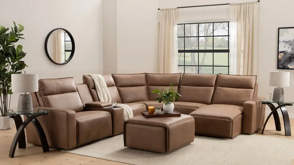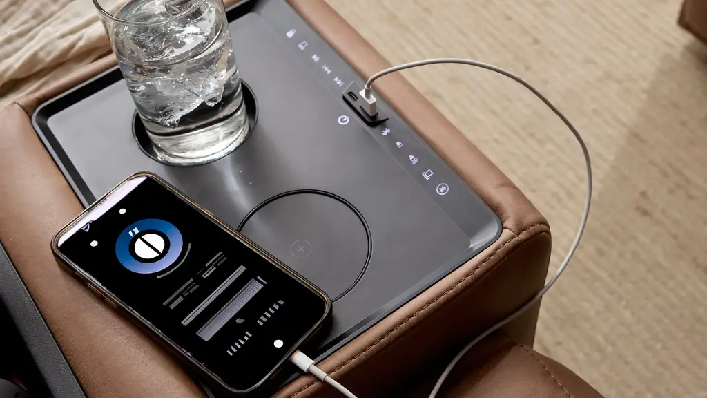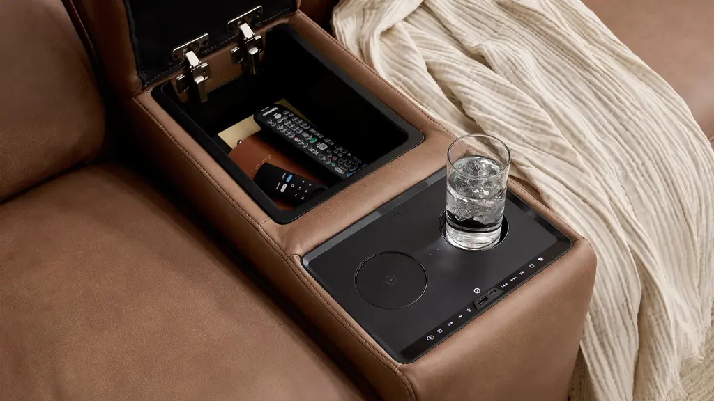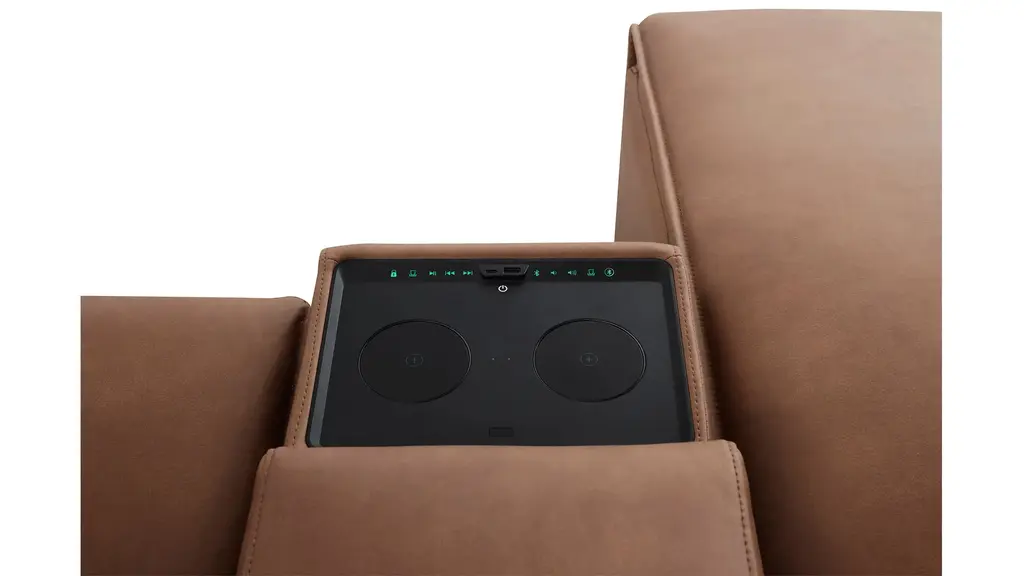 Ready to kick back, relax, and be fully immersed in comfort? The ModularTwo media console w/ Bluetooth speaker is the console you've been looking for to create your own perfect sectional. A celebration of contemporary style, the ModularTwo is upholstered in soft and stain-resistant microfiber faux leather on all sides so you can rearrange and add to your personalized configuration as you please. You'll also love the console's features for a modern lifestyle: In addition to cupholders, the USB ports, wireless charging, and built-in Bluetooth speaker give you a truly immersive experience.
