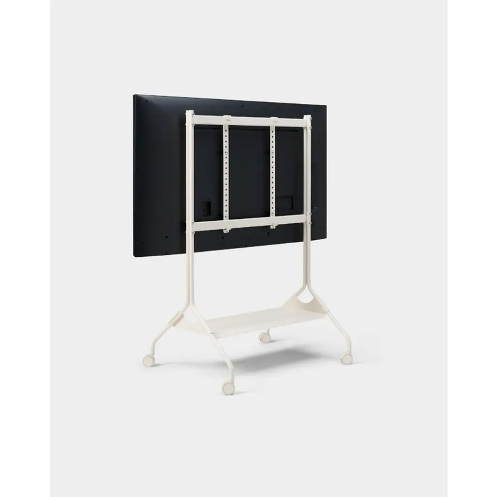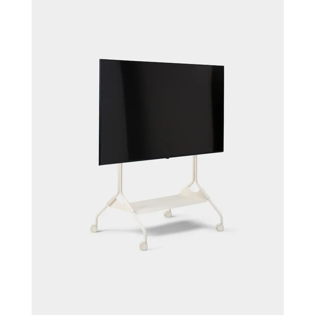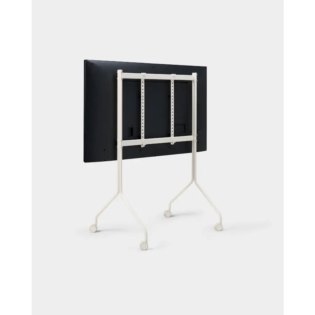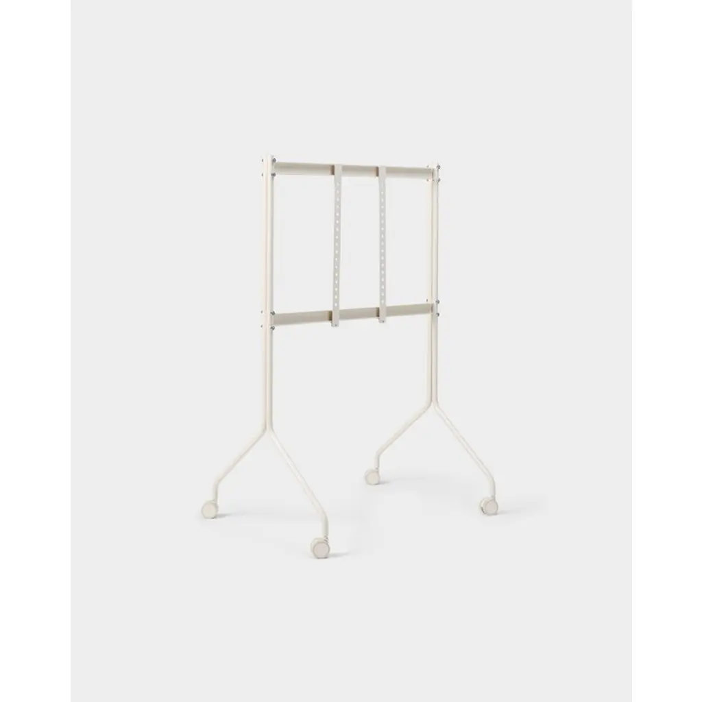 Pedestal's Moon Rollin' Tall TV stand provides a sleek and minimalist storage solution for the living room's centerpiece. Made from powder-coated steel, the TV rack's look and practicality are completed by convenient wheels – whether you seek a closer viewing experience or prefer to hide your television temporarily, the Moon Rollin' Tall TV stand offers unmatched flexibility. Slightly taller than the original Moon Rollin' stand, Moon Rollin' Tall is ideal for spaces where a higher viewing position is needed, such as open-plan kitchens, meeting rooms or areas where the screen is typically viewed while standing or from higher seating. The stand is compatible with most 44" to 77" flat-screen TVs.