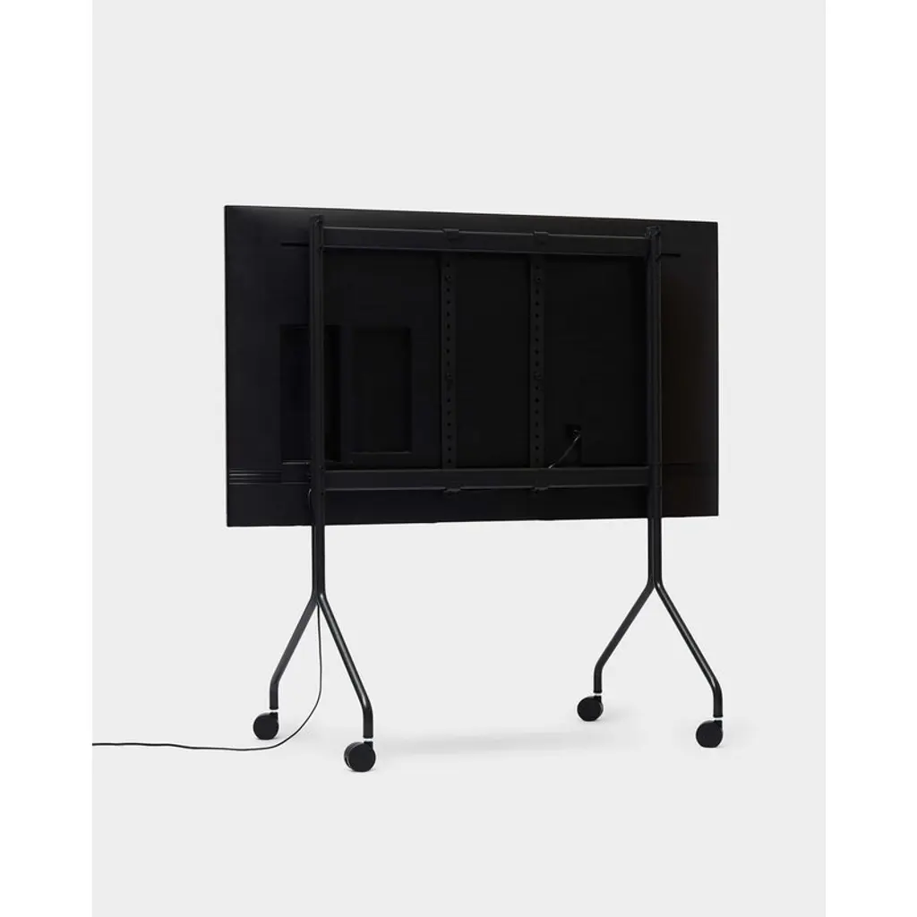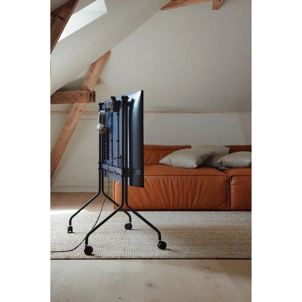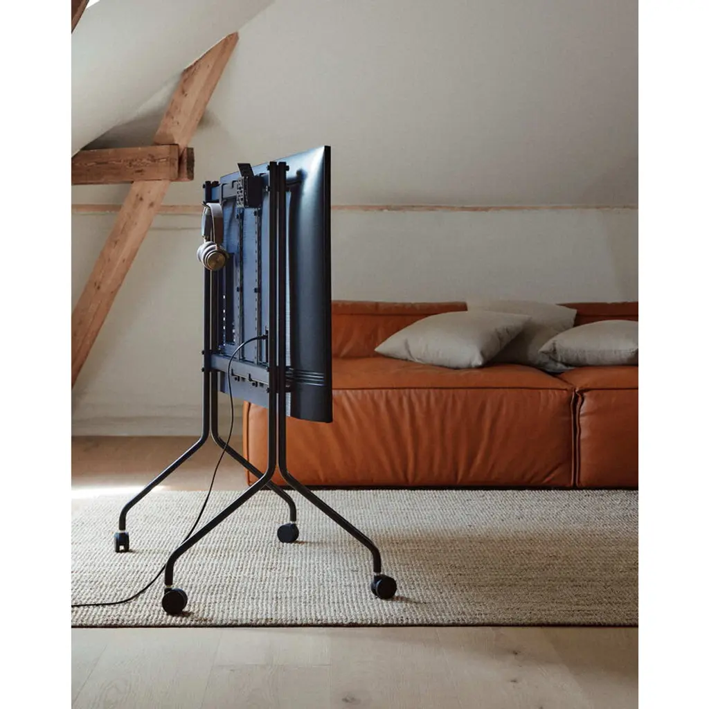 Pedestal's Moon Rollin' TV stand provides a sleek and minimalist storage solution for the living room's centerpiece. Made from powder-coated steel, the TV rack's look and practicality are completed by convenient wheels – whether you seek a closer viewing experience or prefer to temporarily hide your television, the Moon Rollin' TV stand offers unmatched flexibility. Suitable for both home and public settings, this rolling TV stand fits effortlessly into modern Scandinavian interiors while adding a laid-back edge to more traditional decor styles. Like other Pedestal TV stands, the Moon Rollin' stand is compatible with most 40" to 70" flat-screen TVs.