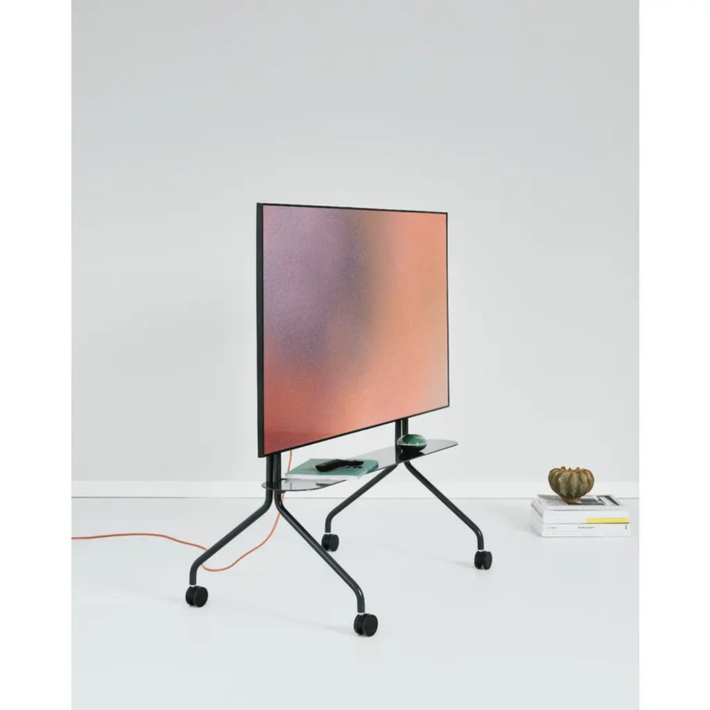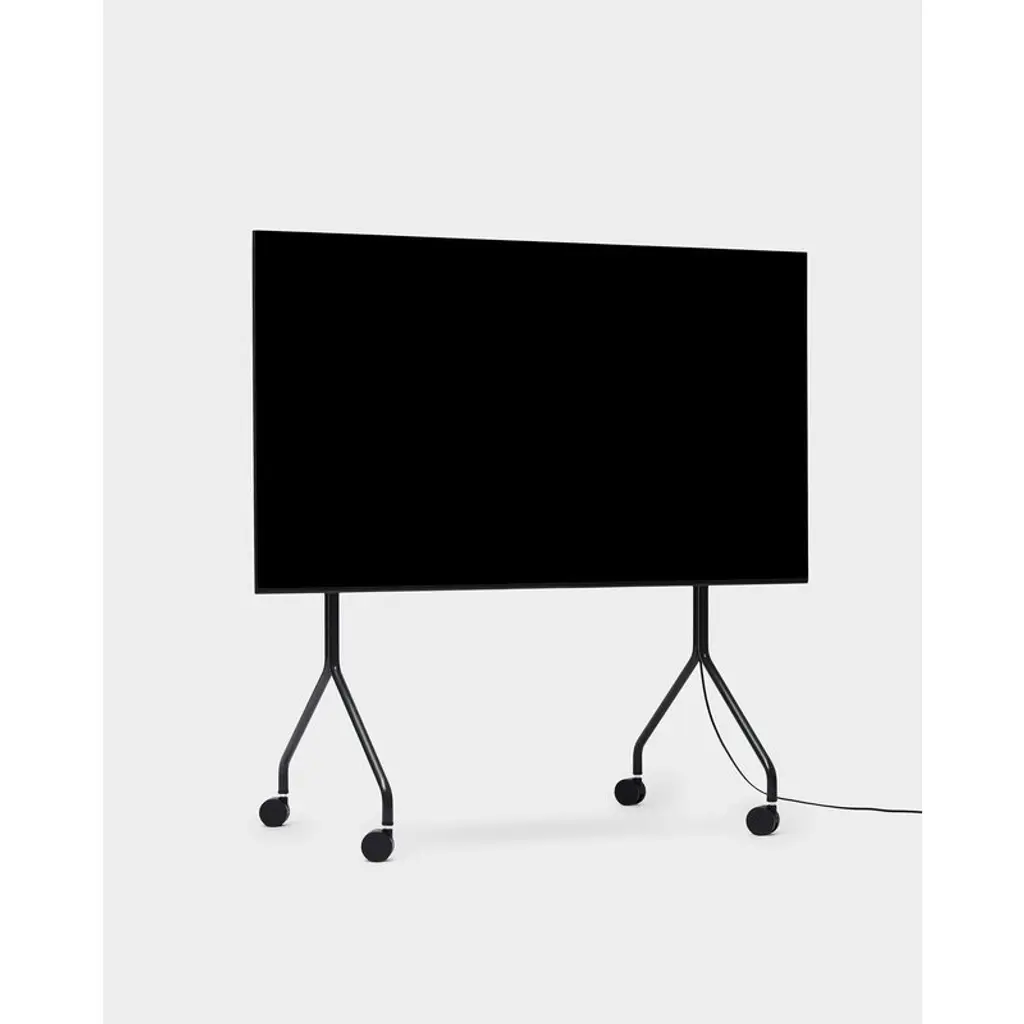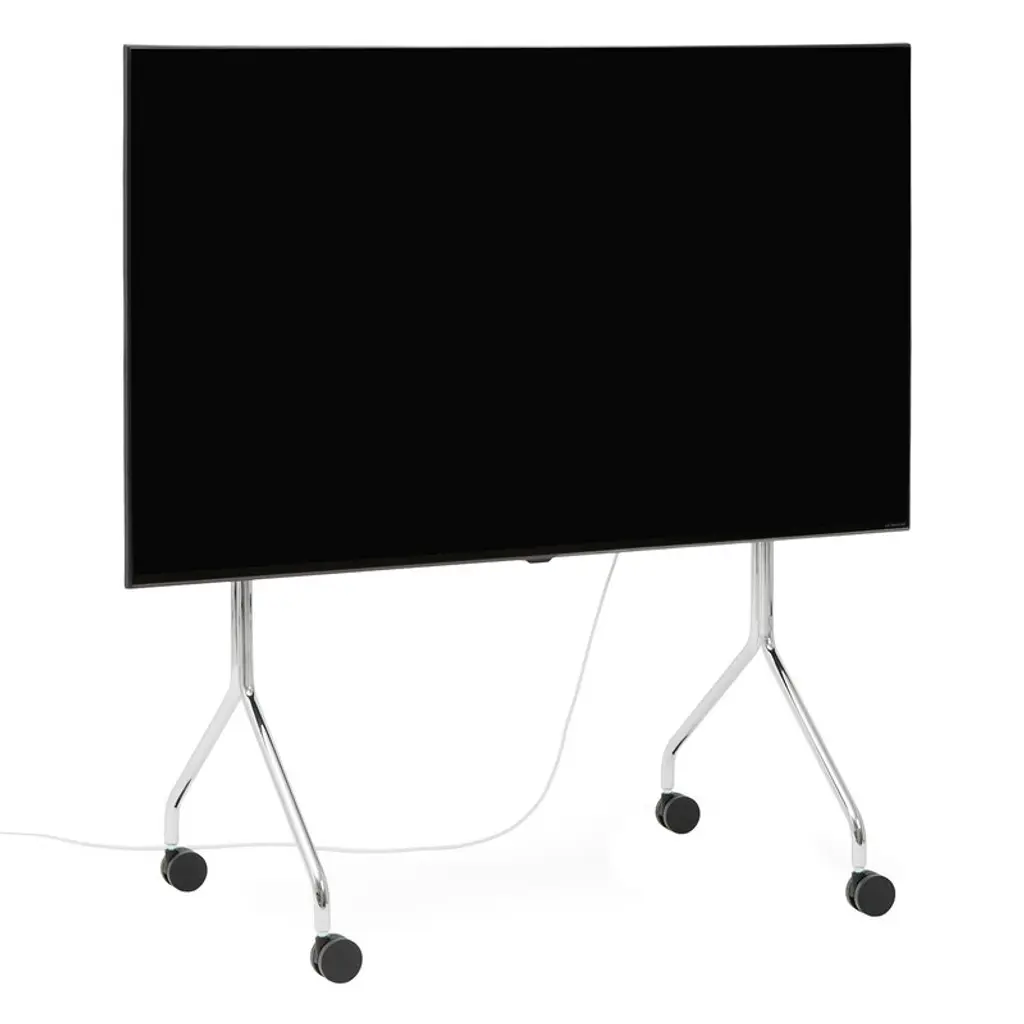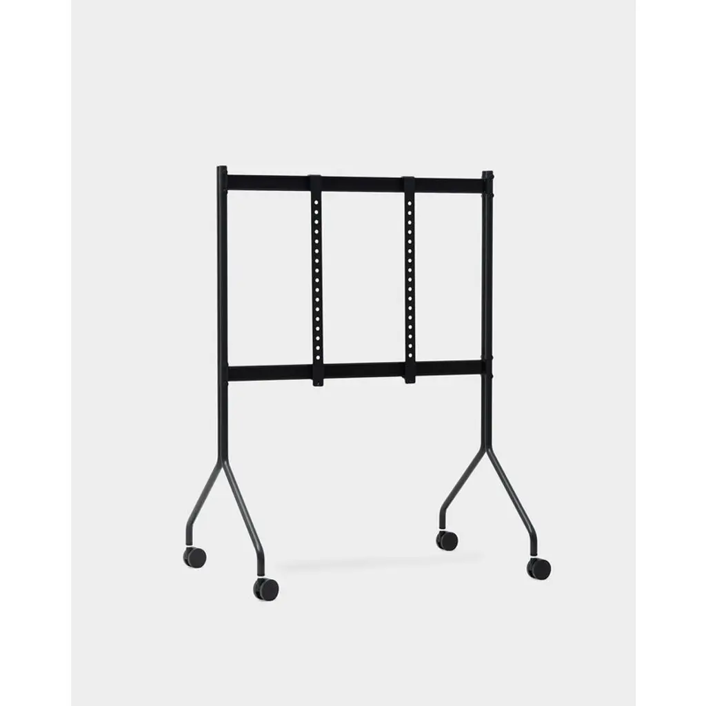 Pedestal's Moon Rollin' TV stand provides a sleek and minimalist storage solution for the living room's centerpiece. Made from powder-coated steel, the TV rack's look and practicality are completed by convenient wheels – whether you seek a closer viewing experience or prefer to temporarily hide your television, the Moon Rollin' TV stand offers unmatched flexibility. Suitable for both home and public settings, this rolling TV stand fits effortlessly into modern Scandinavian interiors while adding a laid-back edge to more traditional decor styles. Like other Pedestal TV stands, the Moon Rollin' stand is compatible with most 40" to 70" flat-screen TVs.