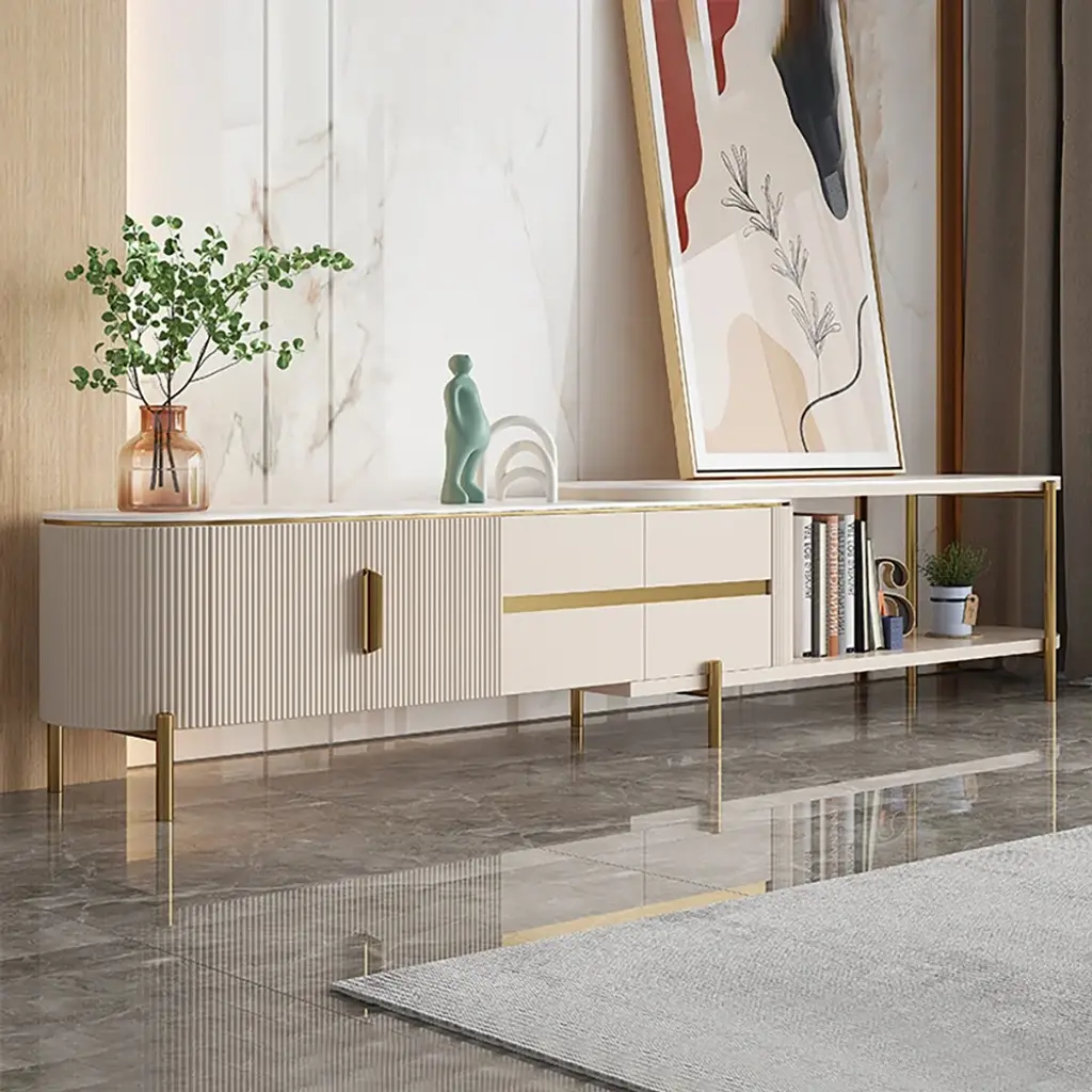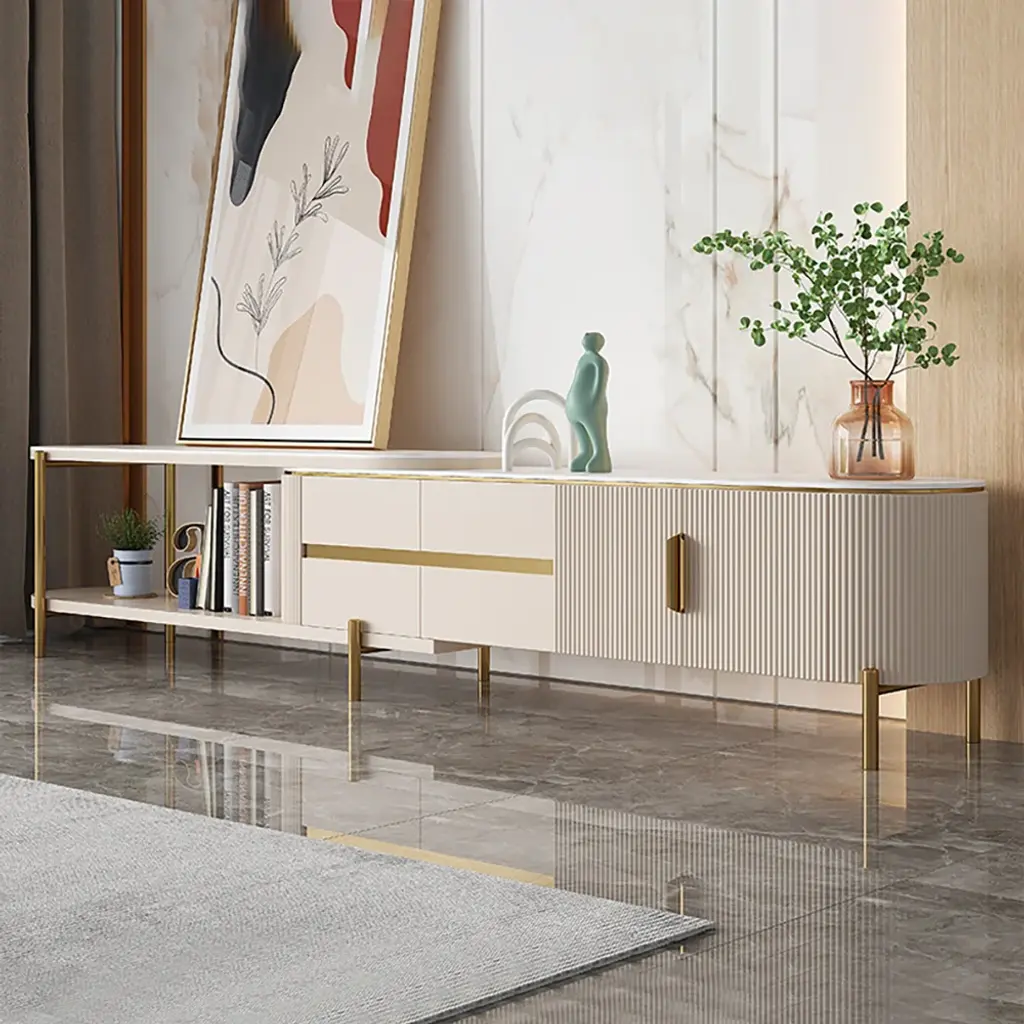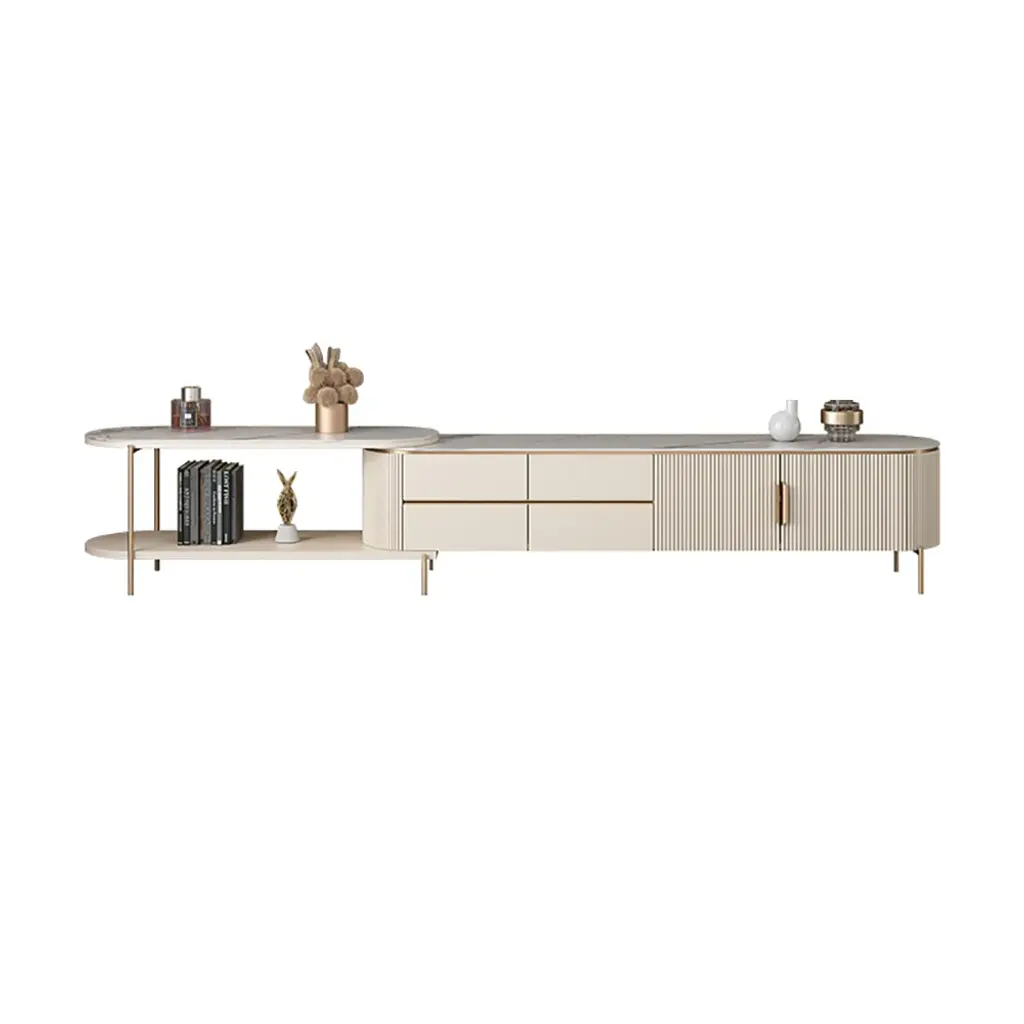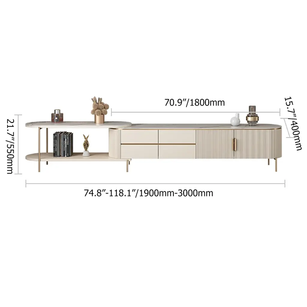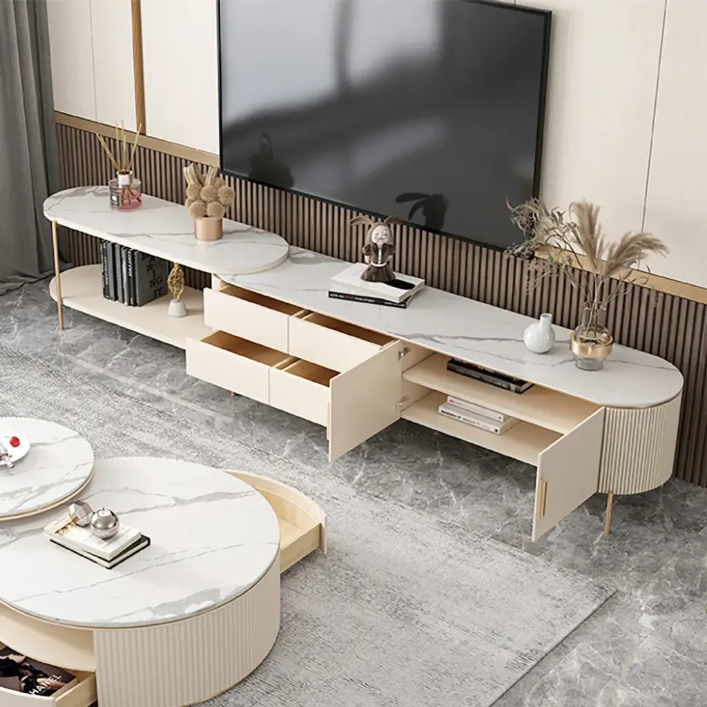 Mytures Off White Oval Retractable Sintered Stone Tv Stand Media Console With 4 Drawers