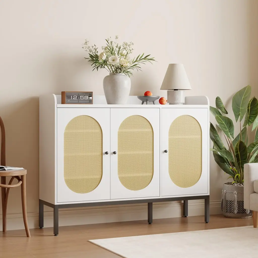 Boasting a modern style, this oval-shaped retractable TV stand will add a sense of unmatchable exquisite to your lovely abode. No matter what unit type you lived in, the retractable design of the TV stand would make it a perfect fit while simultaneously creates open storage for your small art collections, potted plants, or family portraits. Features 4 drawers and 2 interior shelves, it would provide ample storage to fulfill your storage needs for electronics and make your room tidier. Smooth and striped front in the same hue making an impressive and interesting contrast that adds a touch of art to this TV stand. An incredibly versatile media console you can not miss. Simple assembly required.