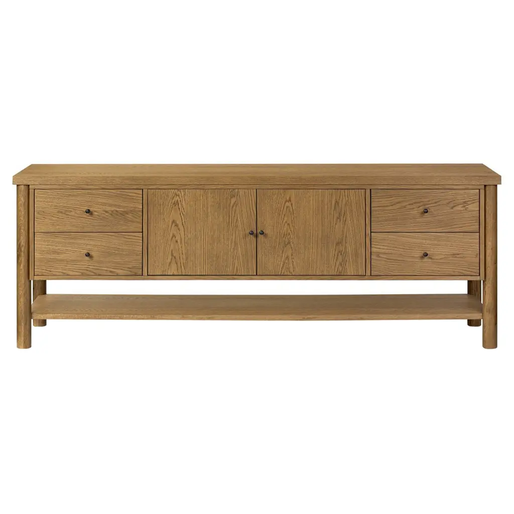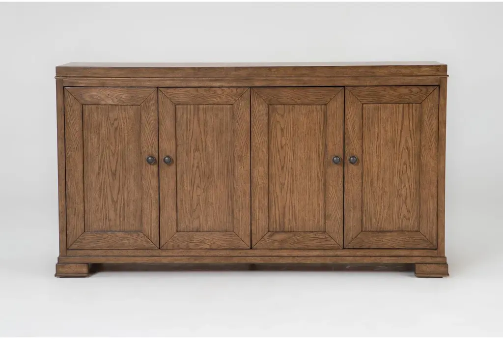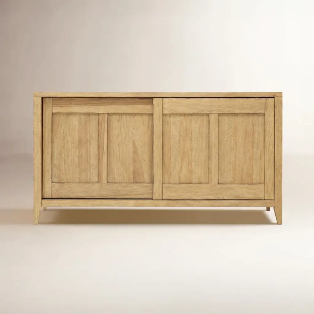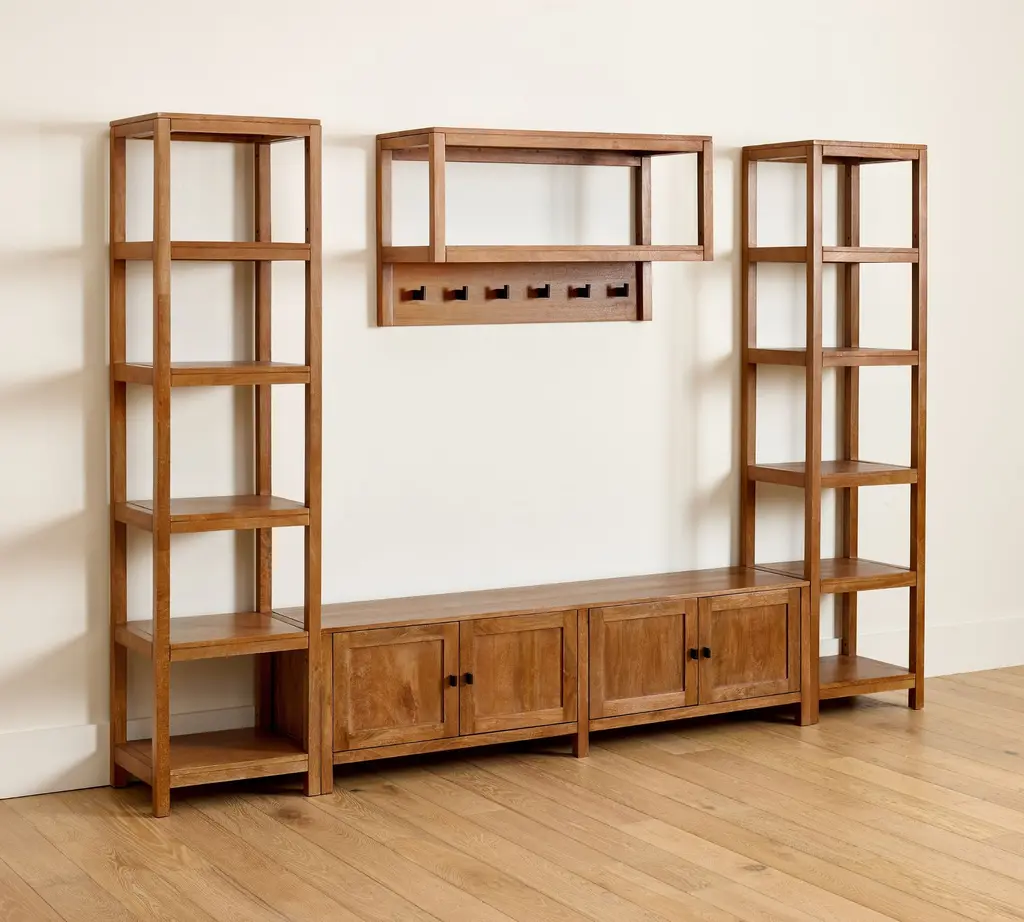 The beauty of the Nicasio Collection lies in the warm, natural tones of solid mango wood. Hand finished on all sides using a multistep process, it has a rich, mid-tone brown that pairs easily with other furniture in the room. Our media console features closed storage to neatly corral components and wrangle wires.