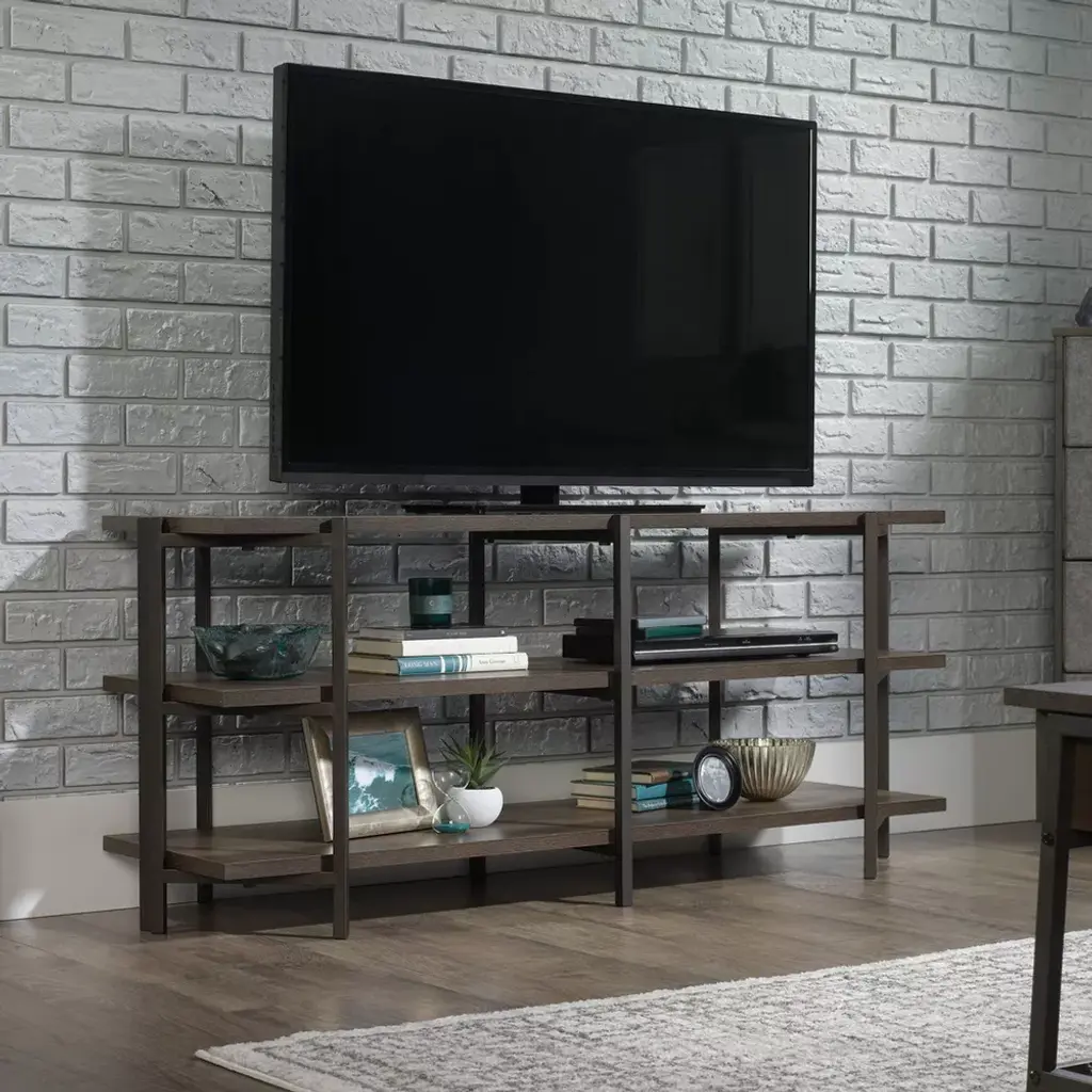 North Avenue Tv Stand For Tvs Up To 54" Smoked Brown - Sauder: Durable Metal Frame, Open Shelving