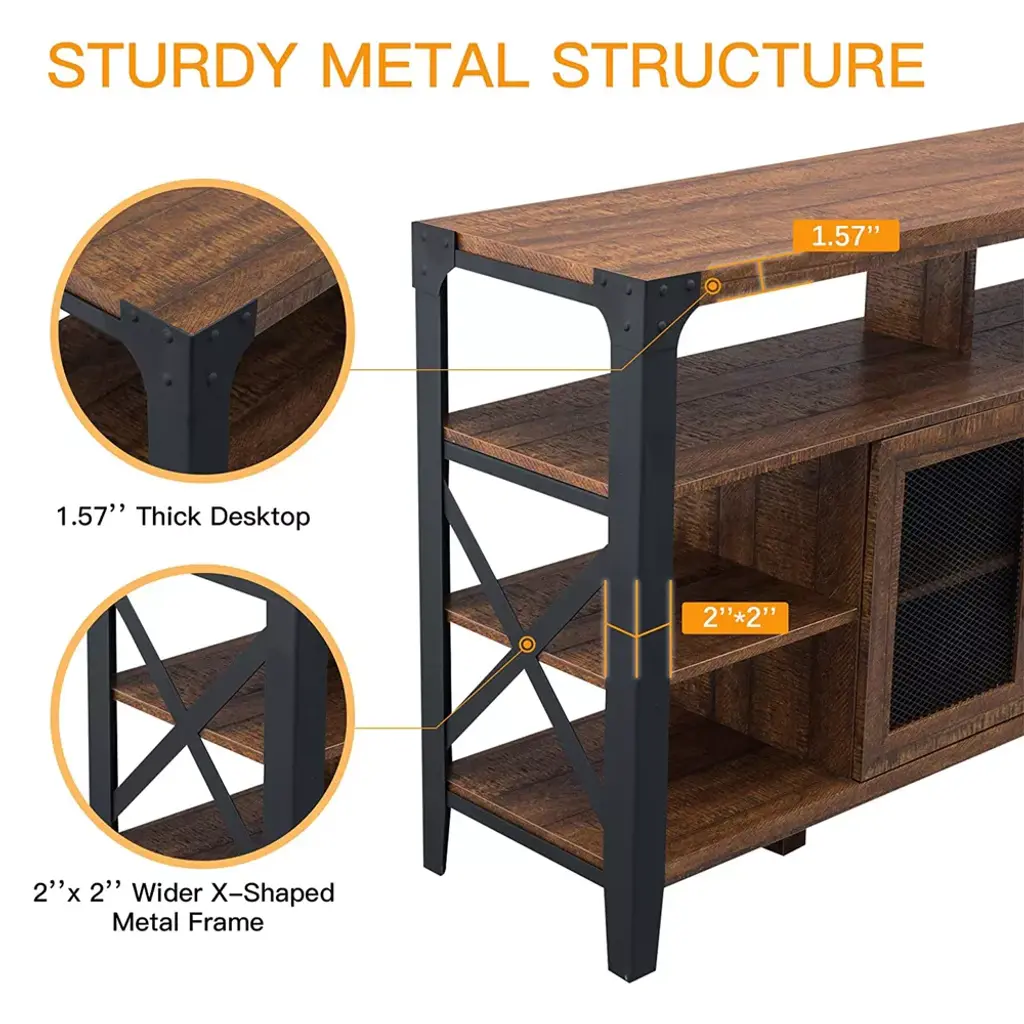 OKD Industrial Rustic 65 Inch Entertainment TV Stand with Open Sound Bar Shelf, Storage Cabinet, & Adjustable Shelves and Feet